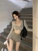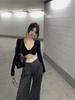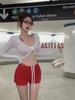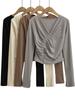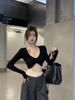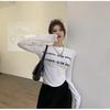 Camiseta de Hombro de Manga Larga con Cuello en V Estilo Americano Spice Girls para Mujer, Nueva de Principios de Otoño, Ajustada, Adelgazante, Base Blanca, Top Corto