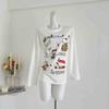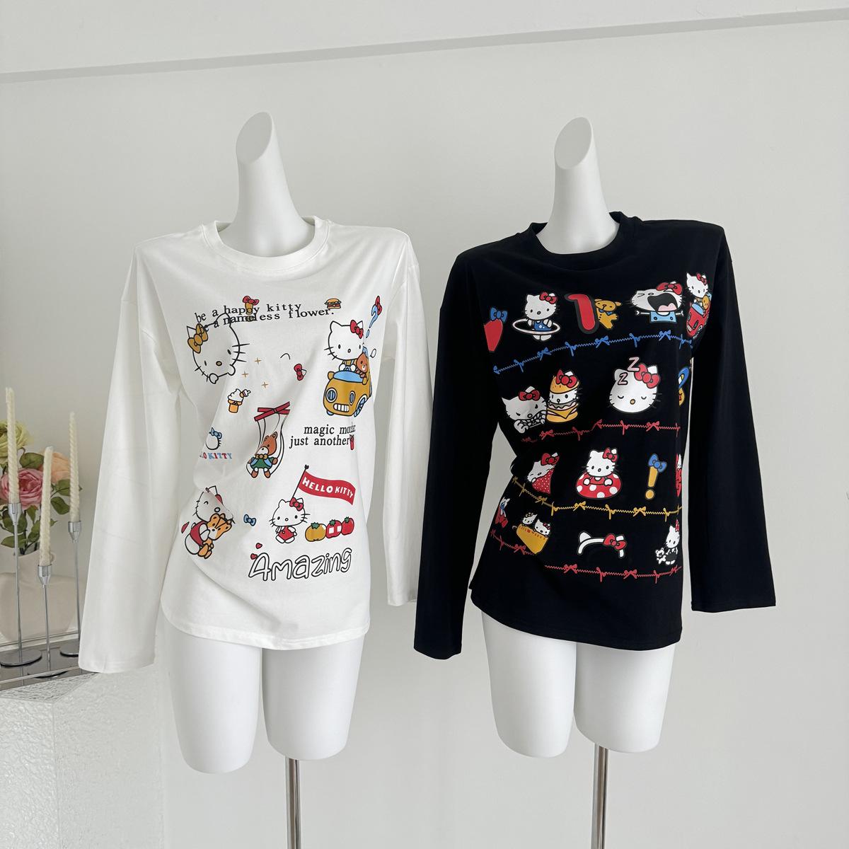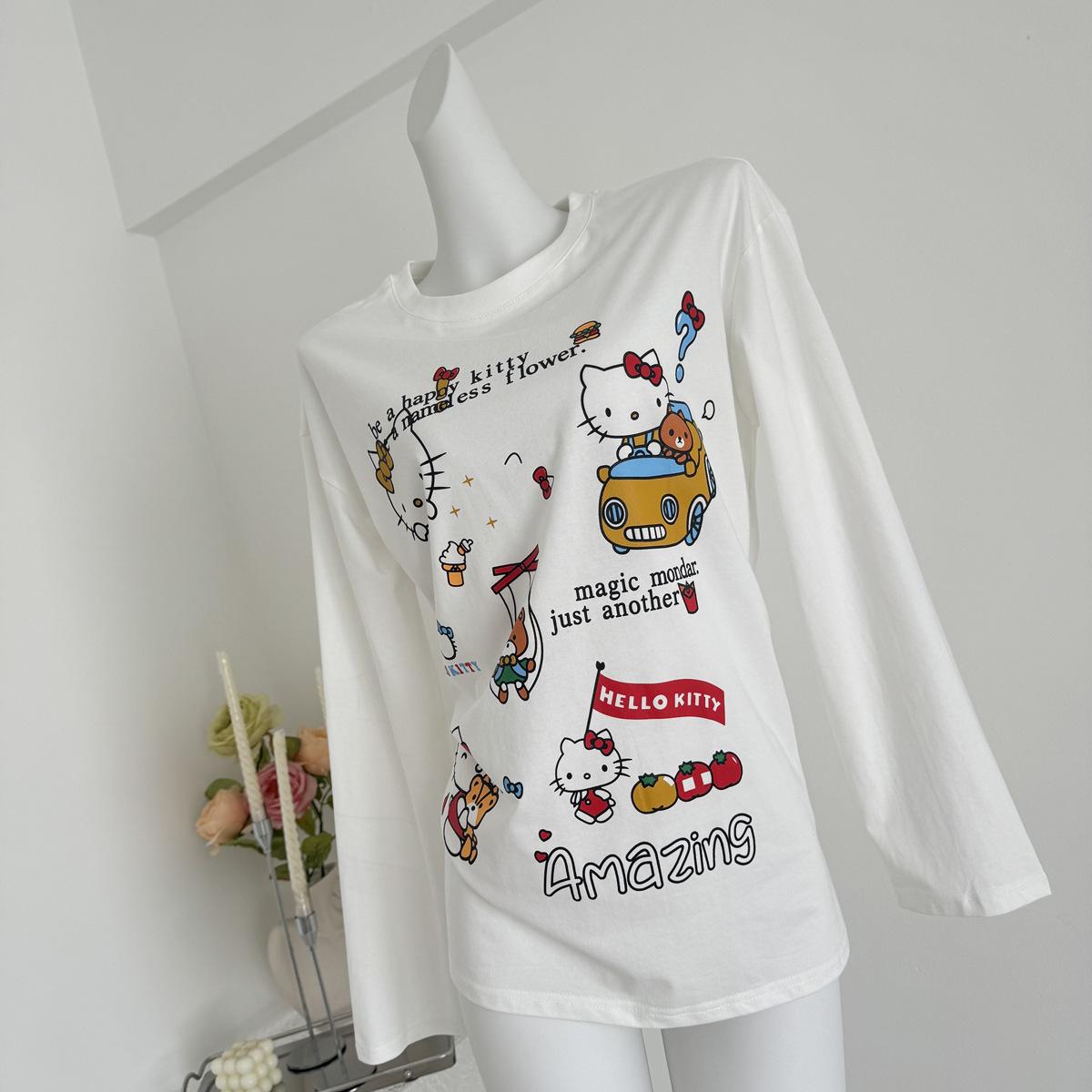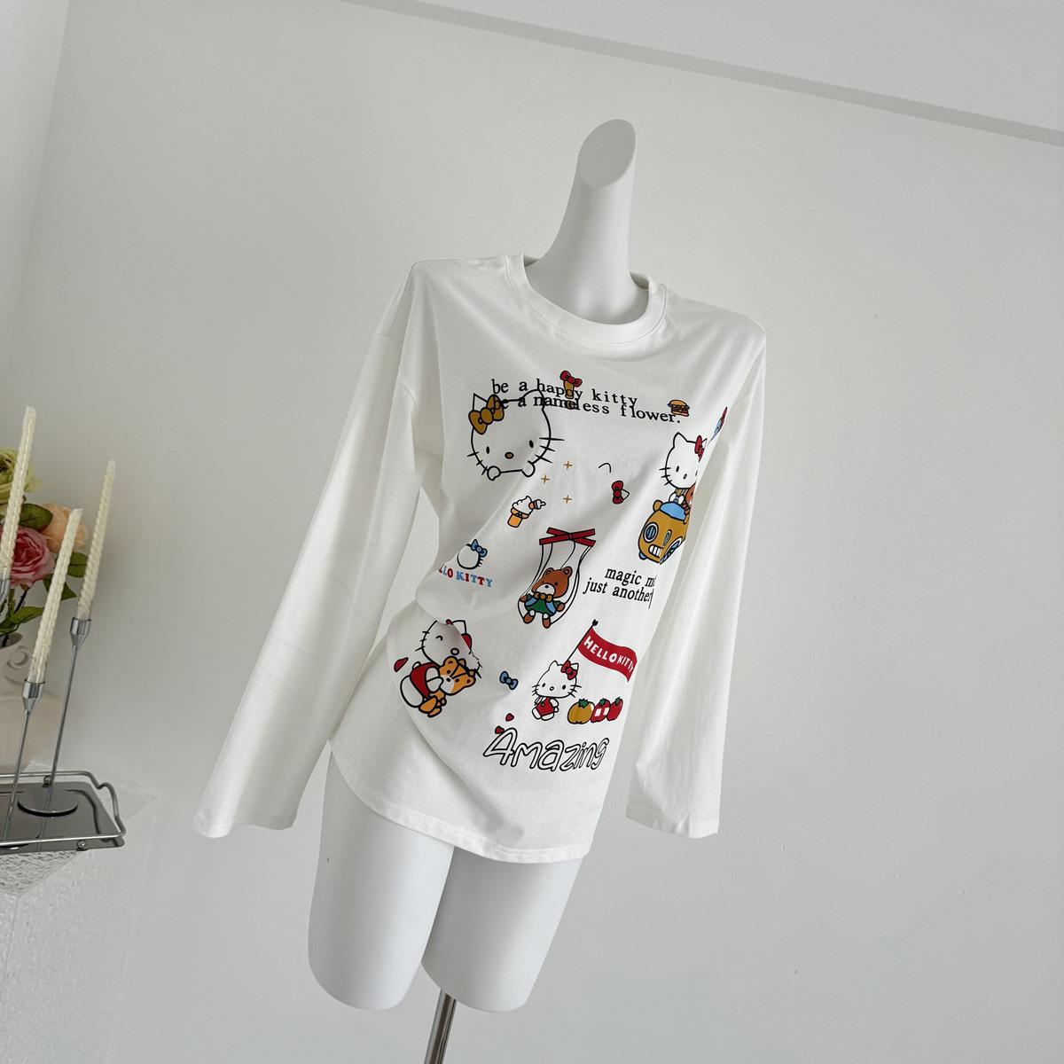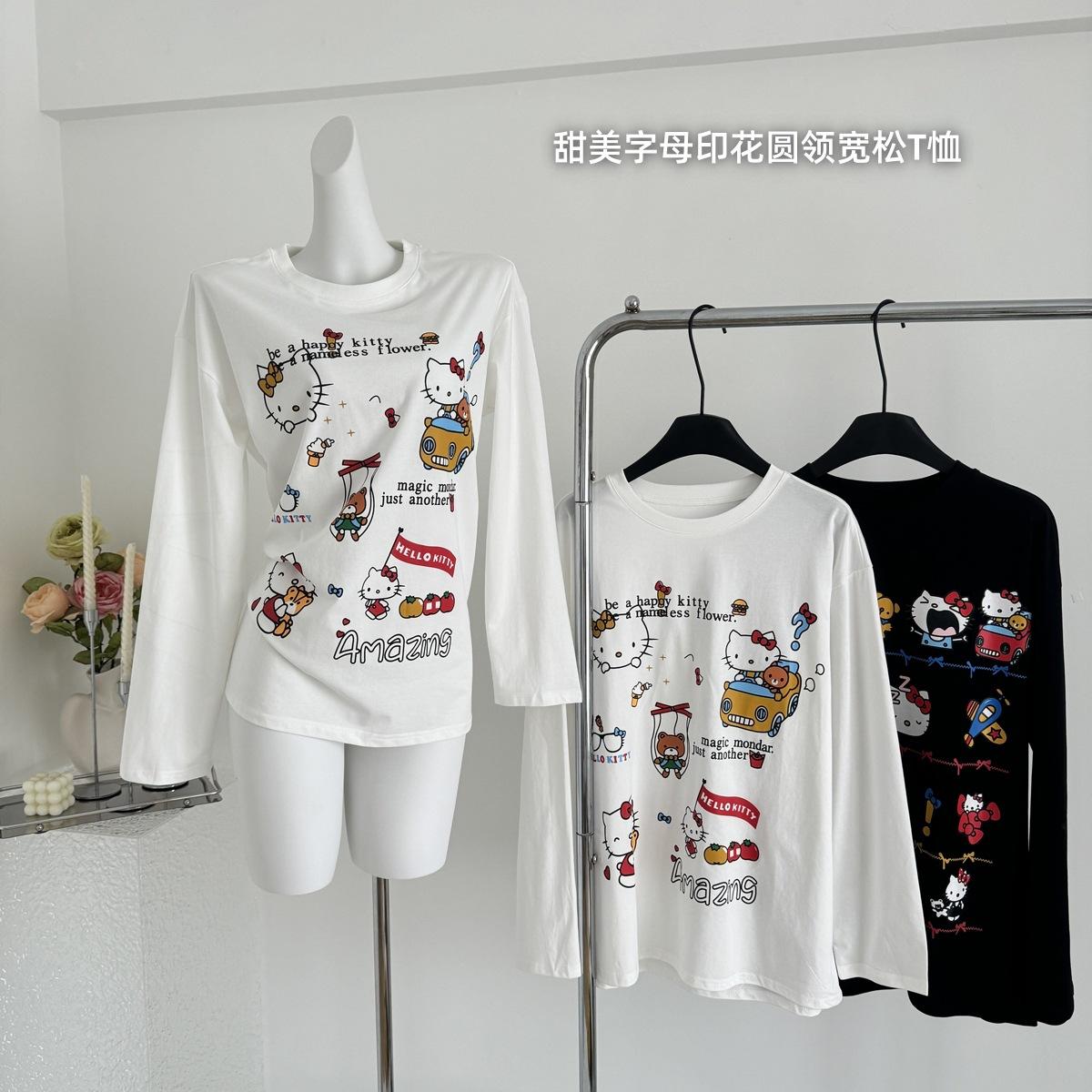 Camiseta de manga larga con cuello redondo y estampado de estilo japonés para mujer, fina, holgada y adelgazante, con alfabeto, para otoño