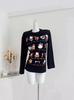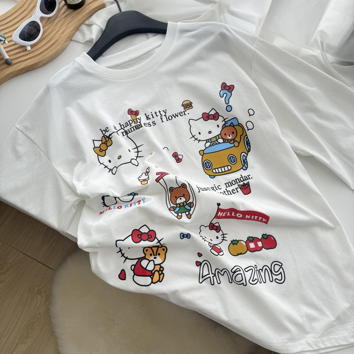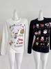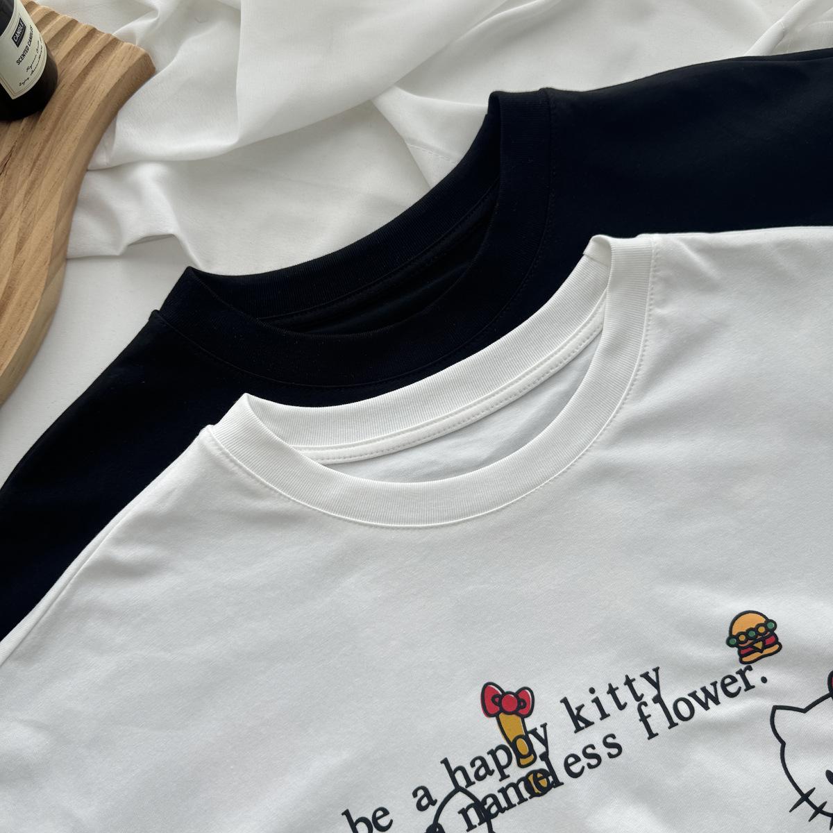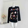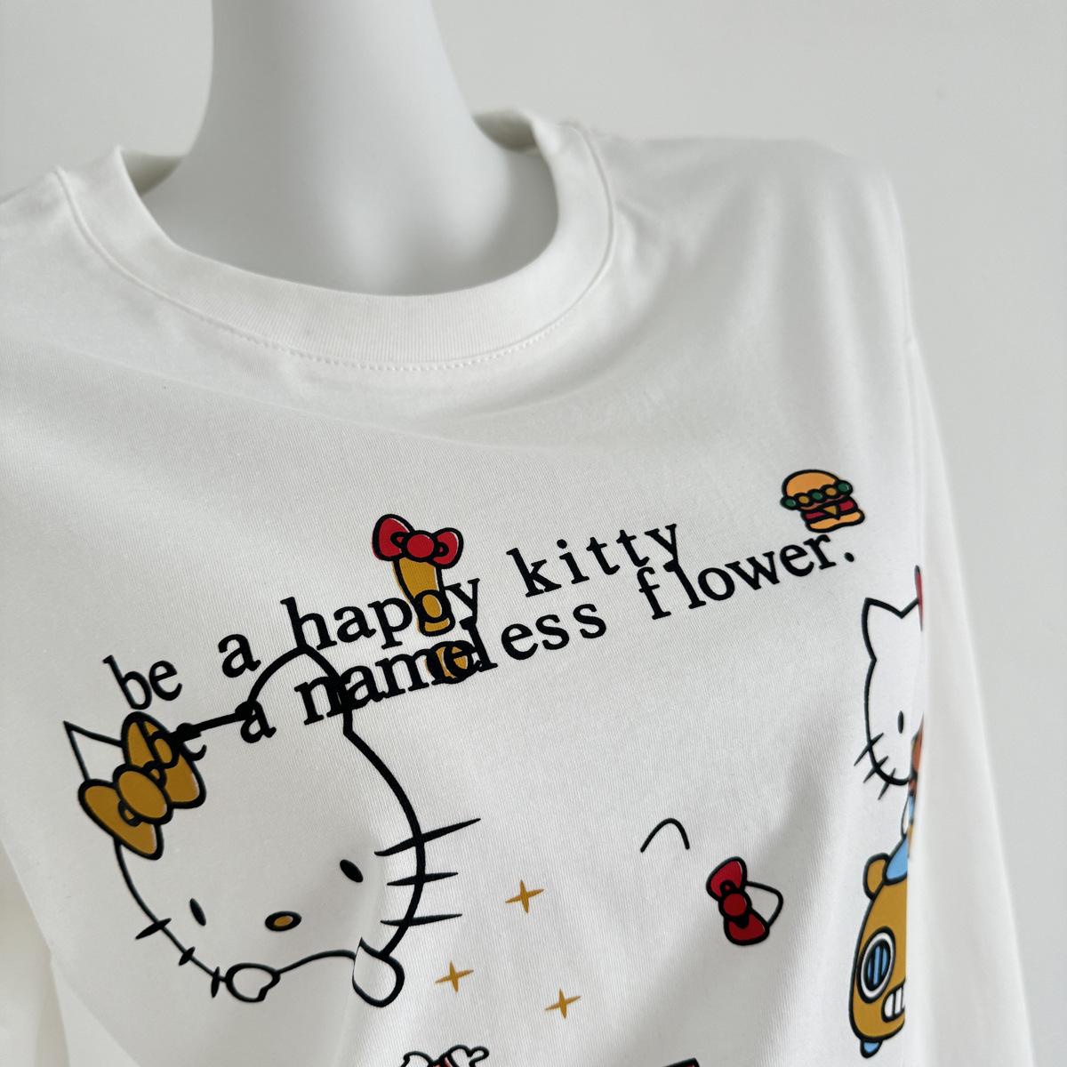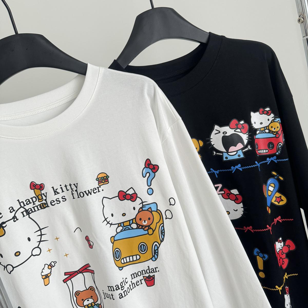 Camiseta de manga larga con cuello redondo y estampado de estilo japonés para mujer, fina, holgada y adelgazante, con alfabeto, para otoño