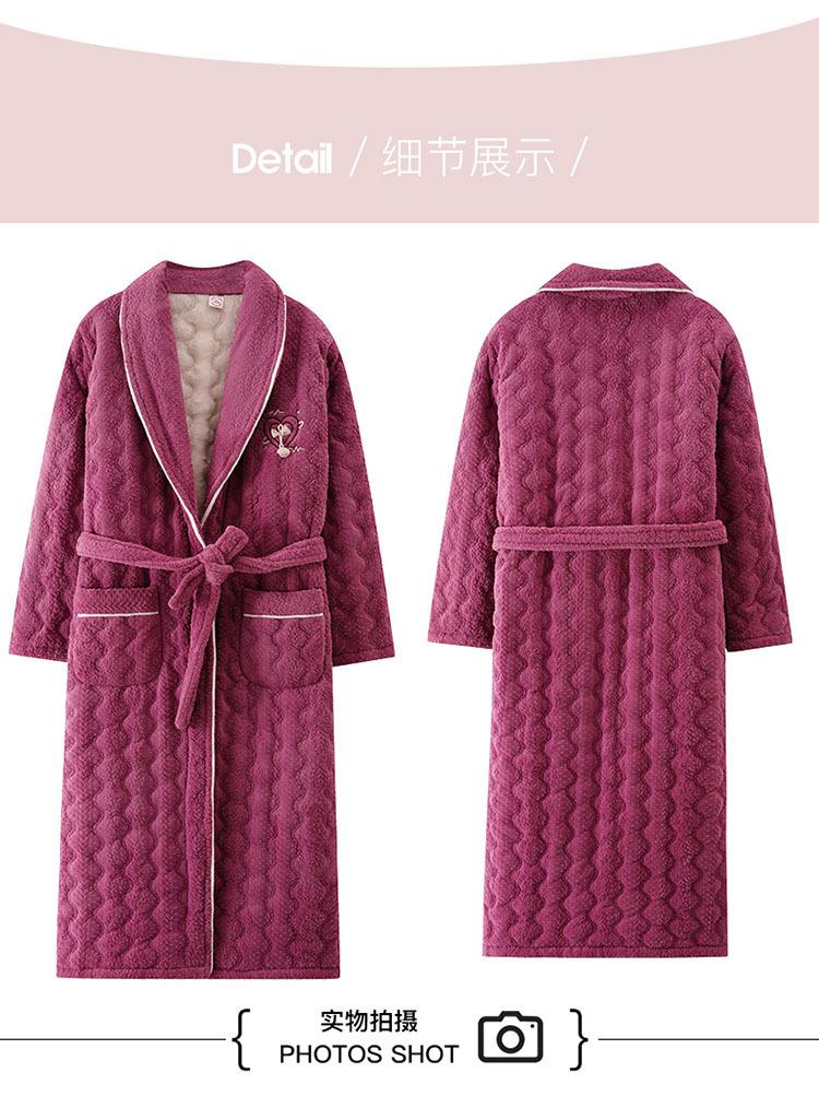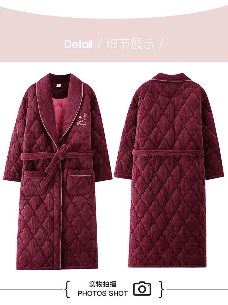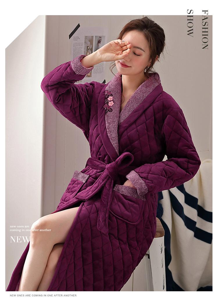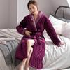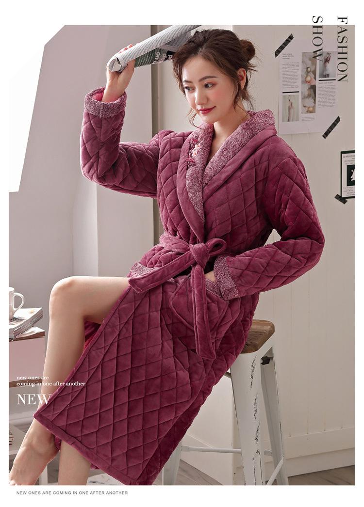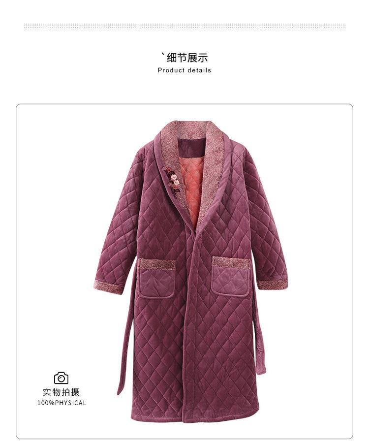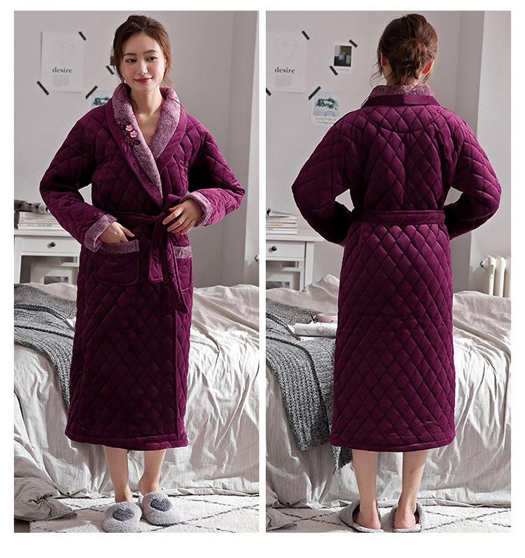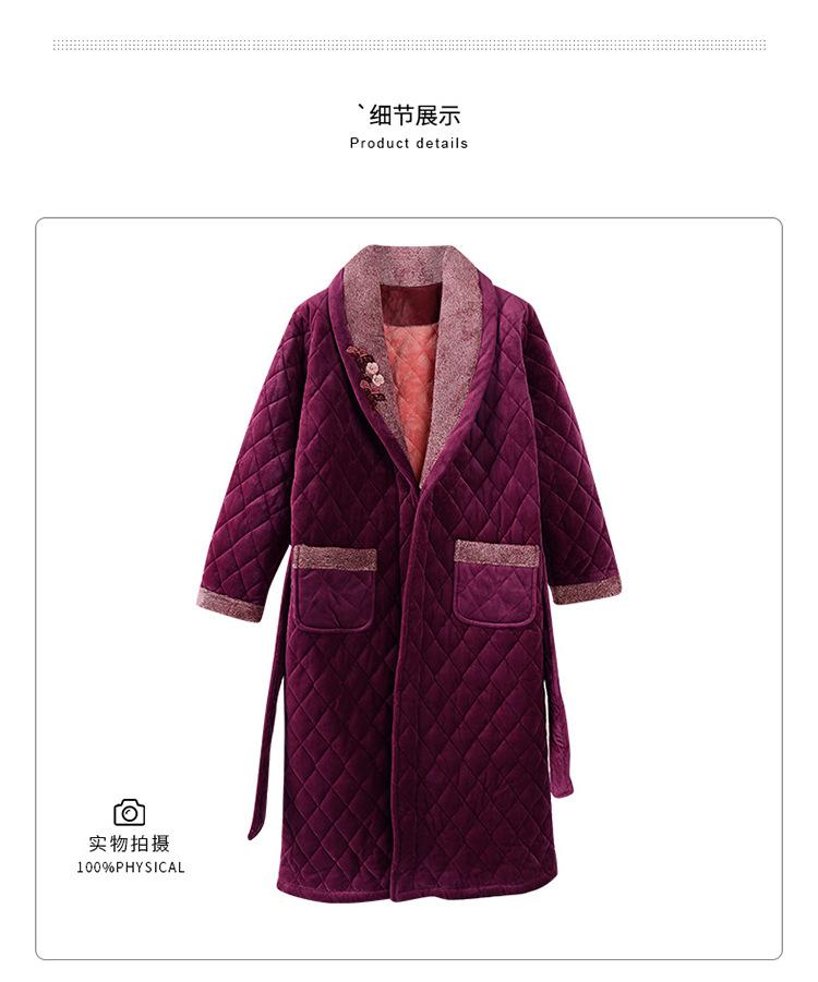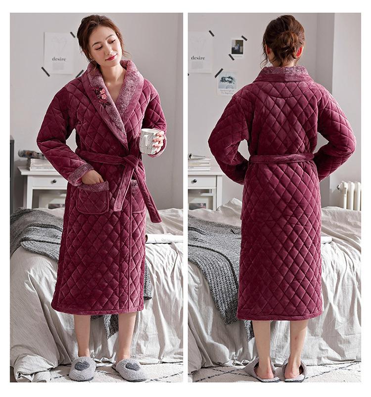 Camisón de lana coral para mujer de mediana edad, camisón de otoño e invierno, largo pijama de franela gruesa de tres capas con forro polar de invierno