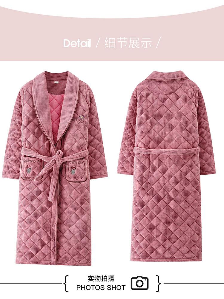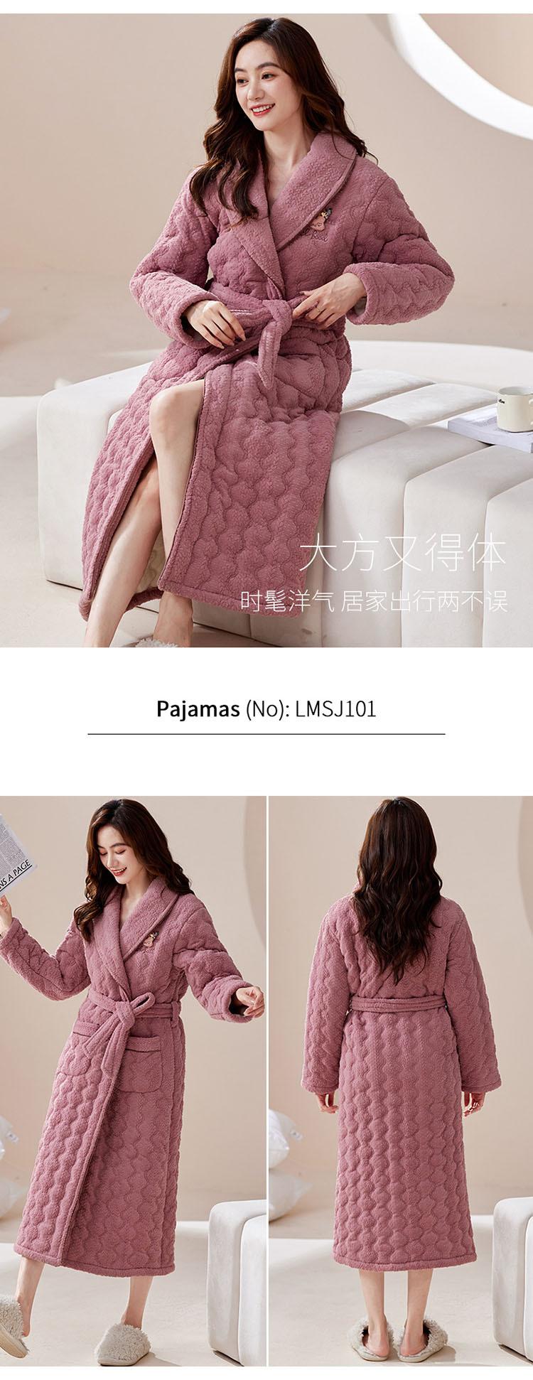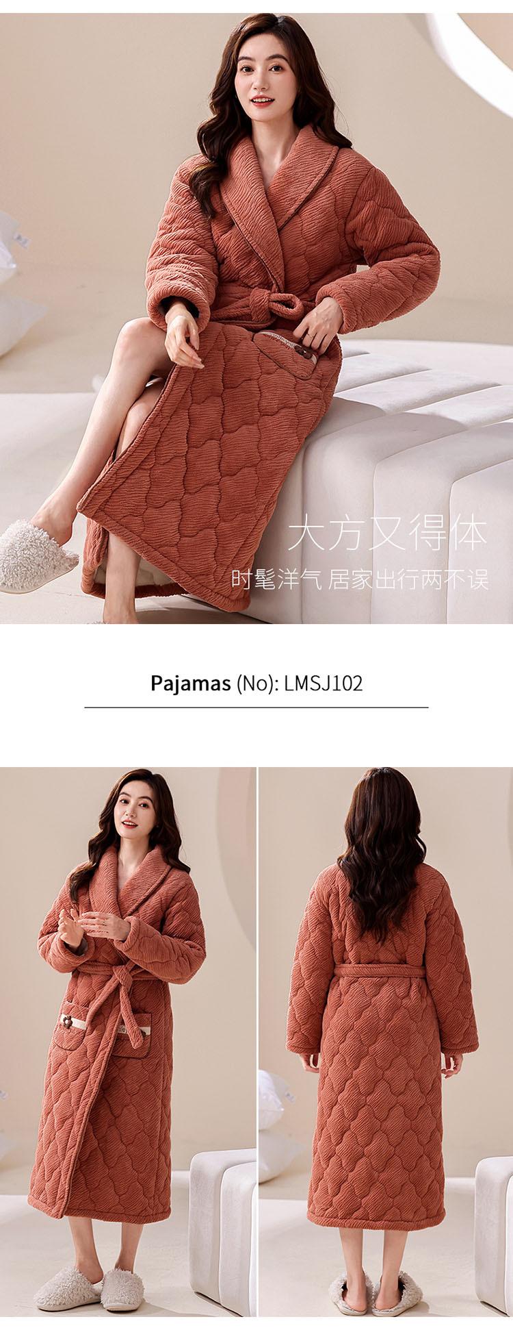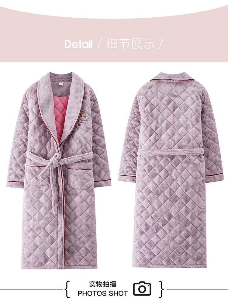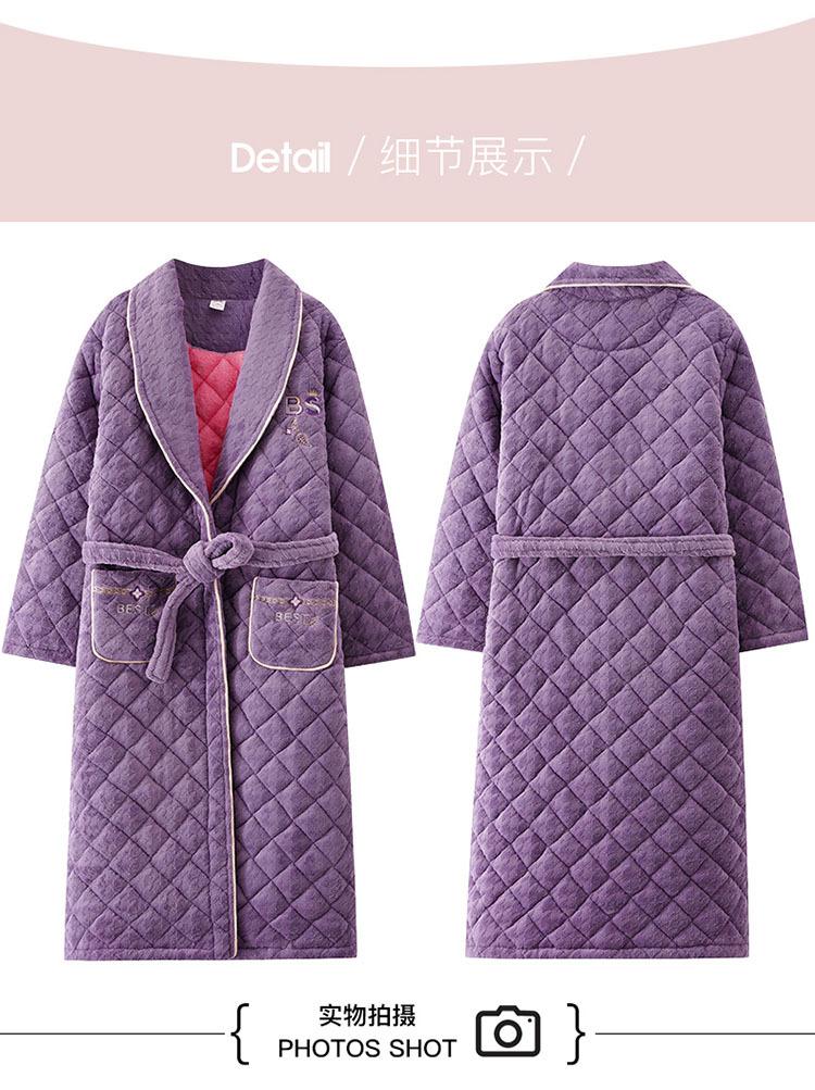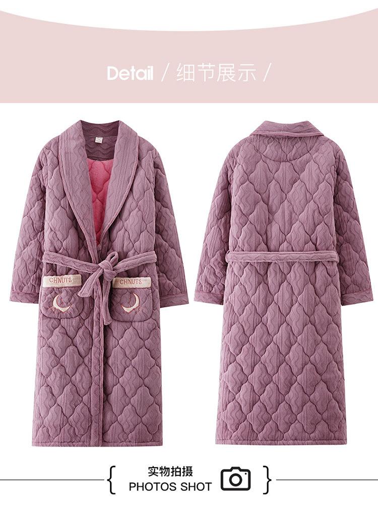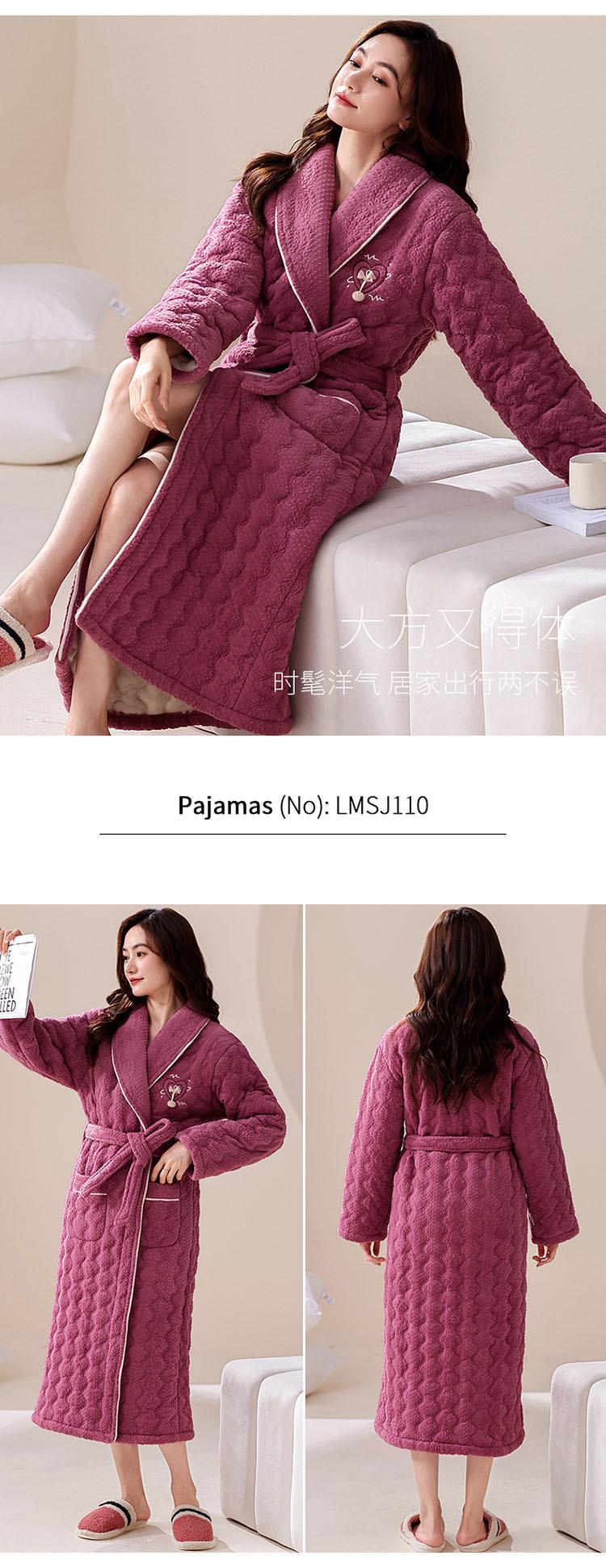 Camisón de lana coral para mujer de mediana edad, camisón de otoño e invierno, largo pijama de franela gruesa de tres capas con forro polar de invierno