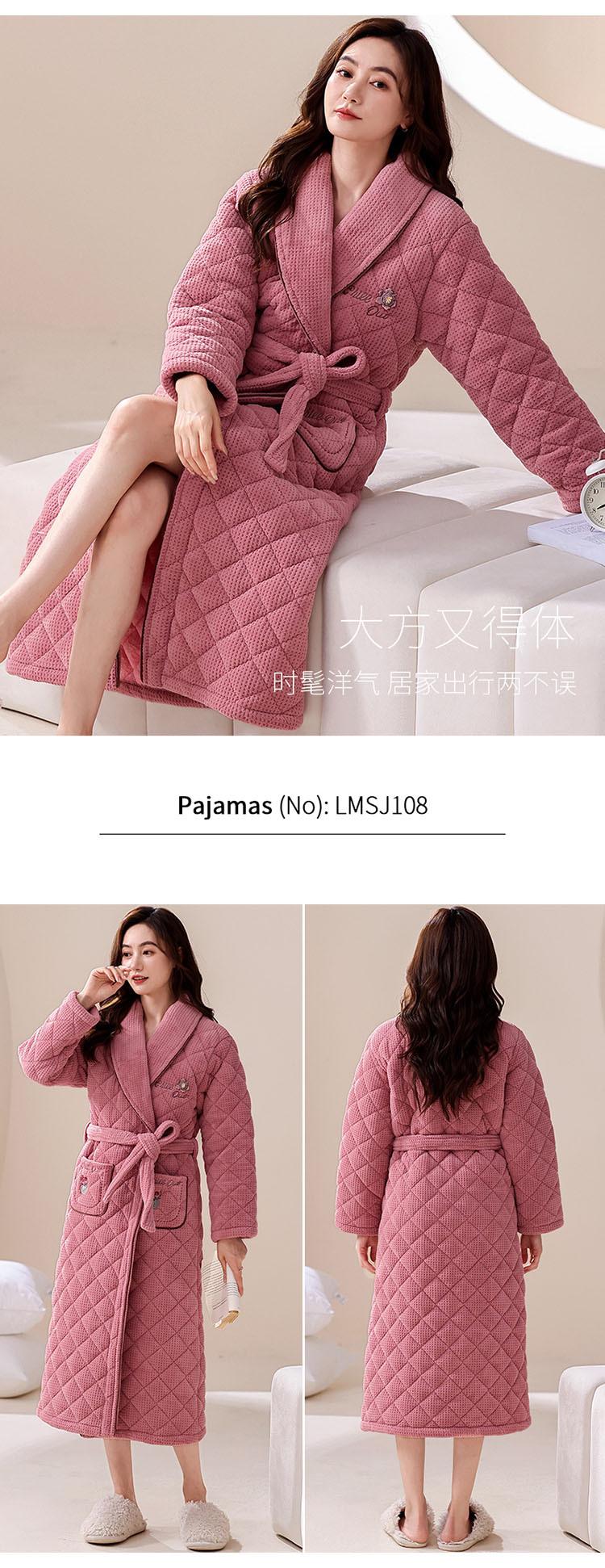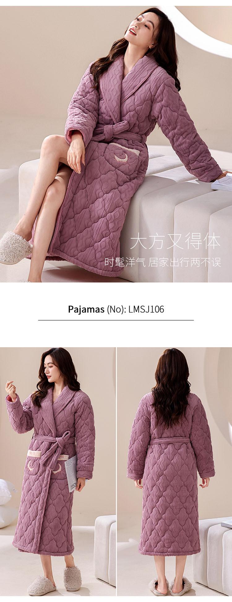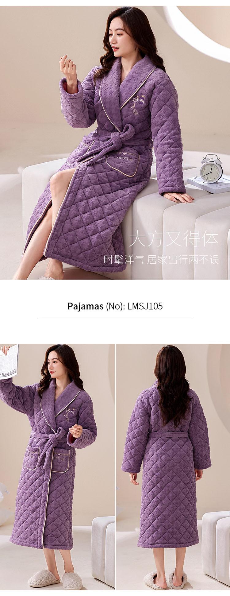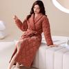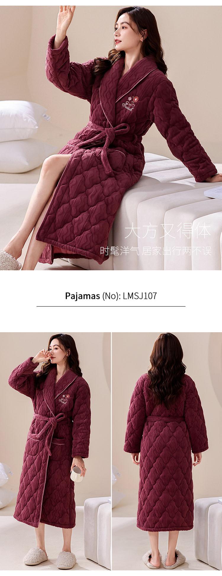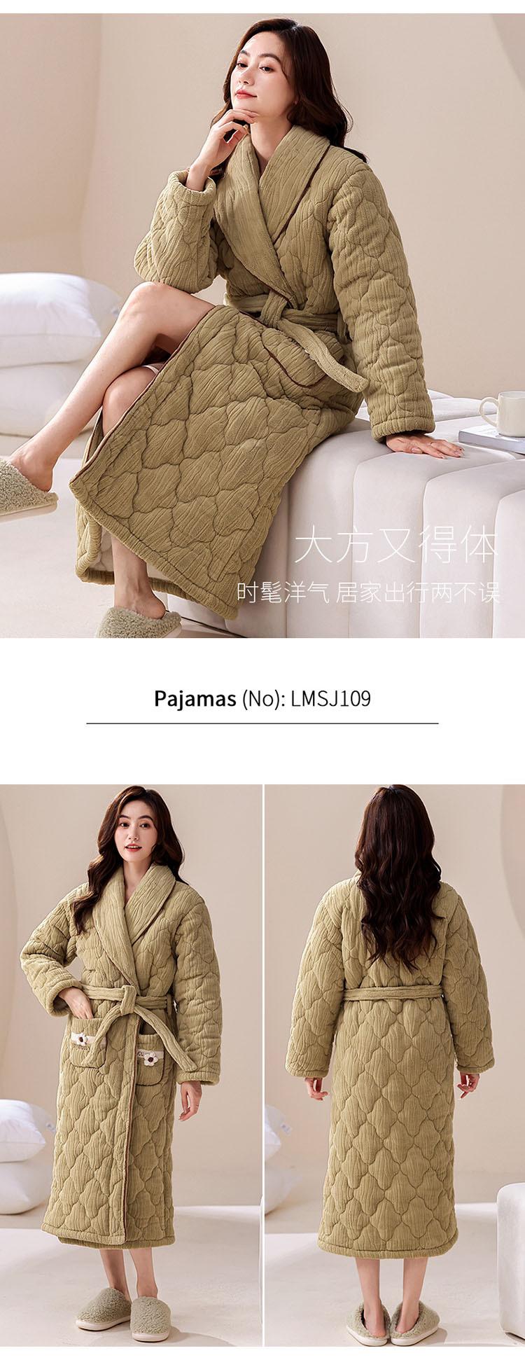 Camisón de lana coral para mujer de mediana edad, camisón de otoño e invierno, largo pijama de franela gruesa de tres capas con forro polar de invierno