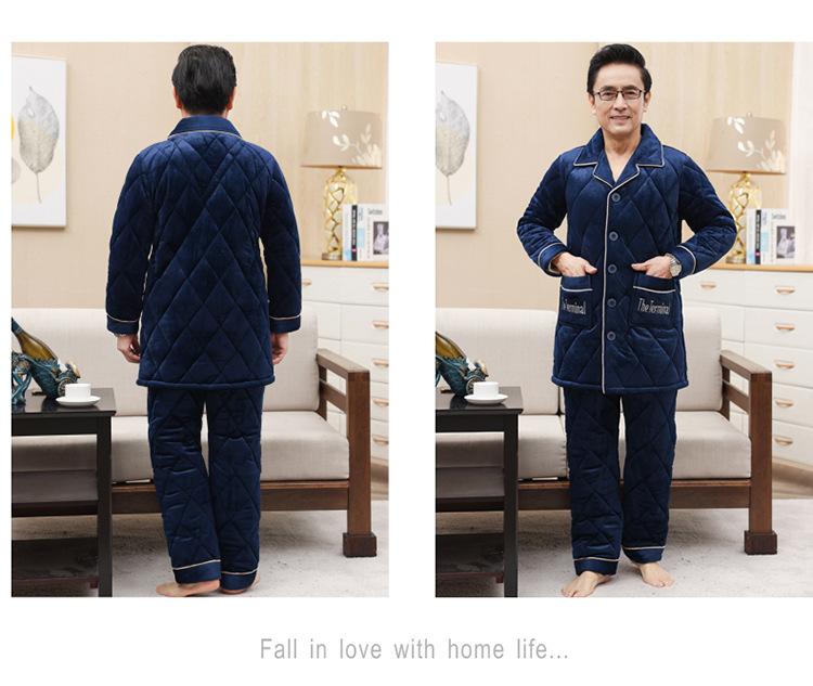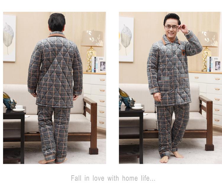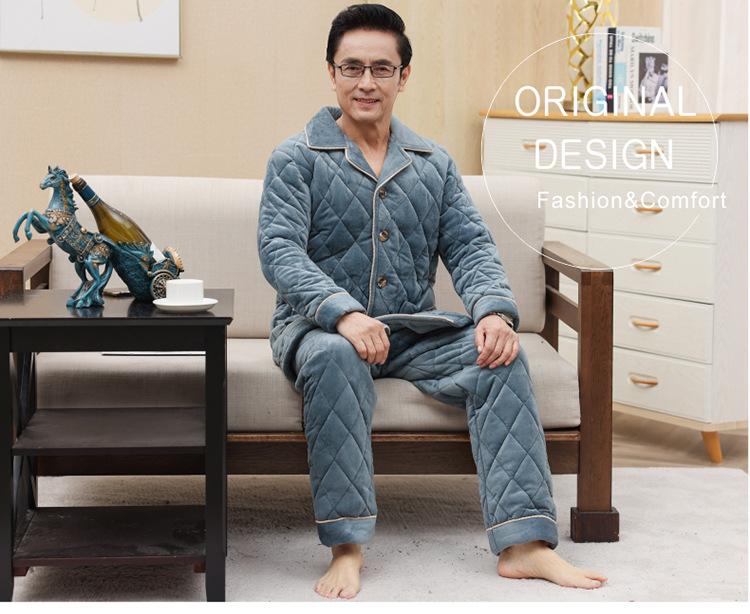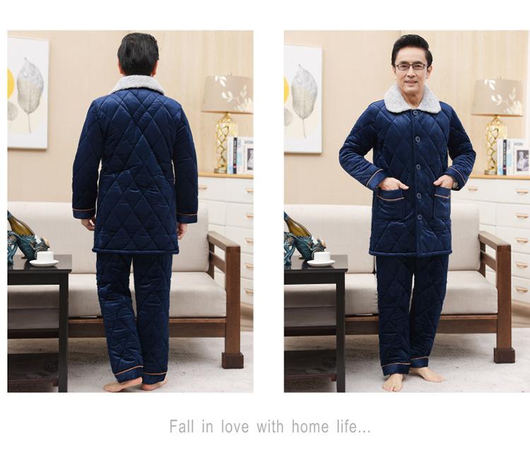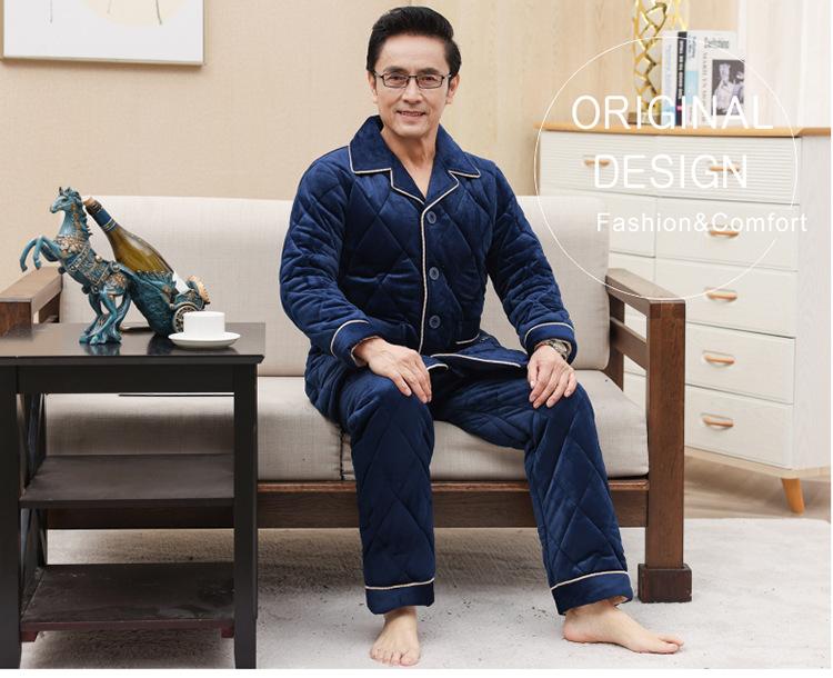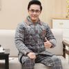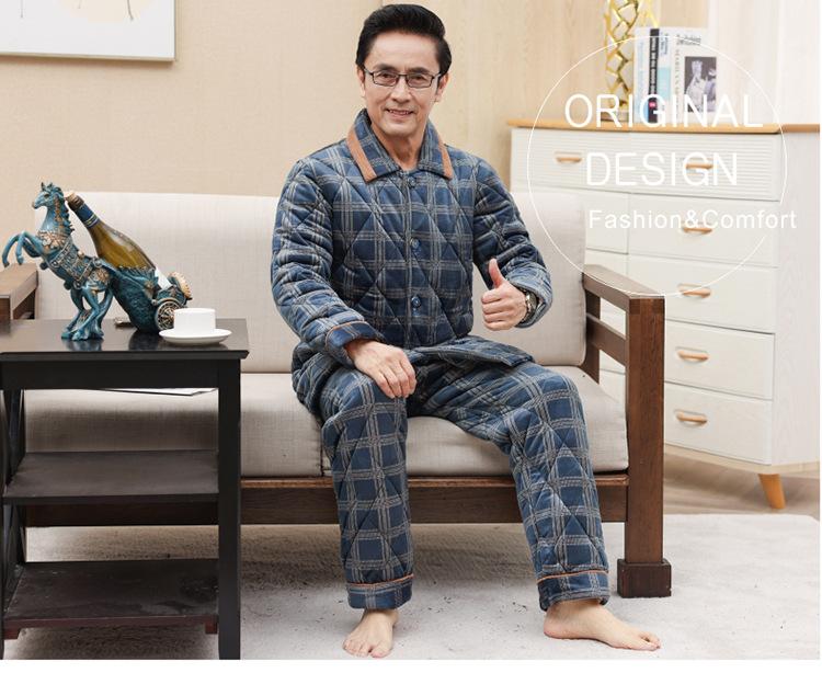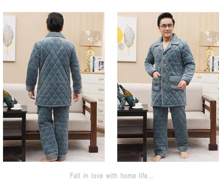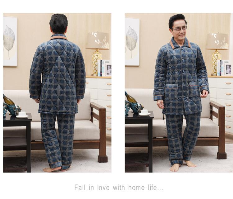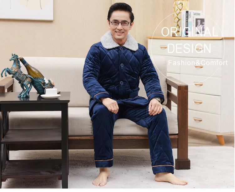 Pijama de invierno para hombre de tres capas con forro polar, grueso, largo medio, franela holgada de talla grande, para mediana edad y ancianos, cálido para estar en casa
