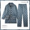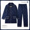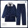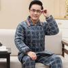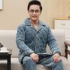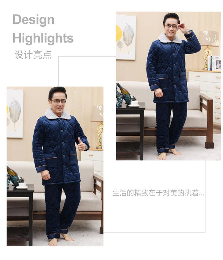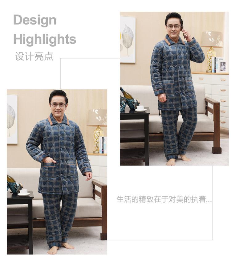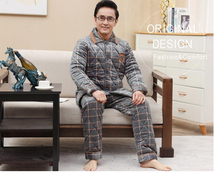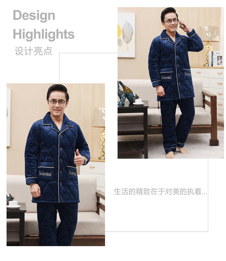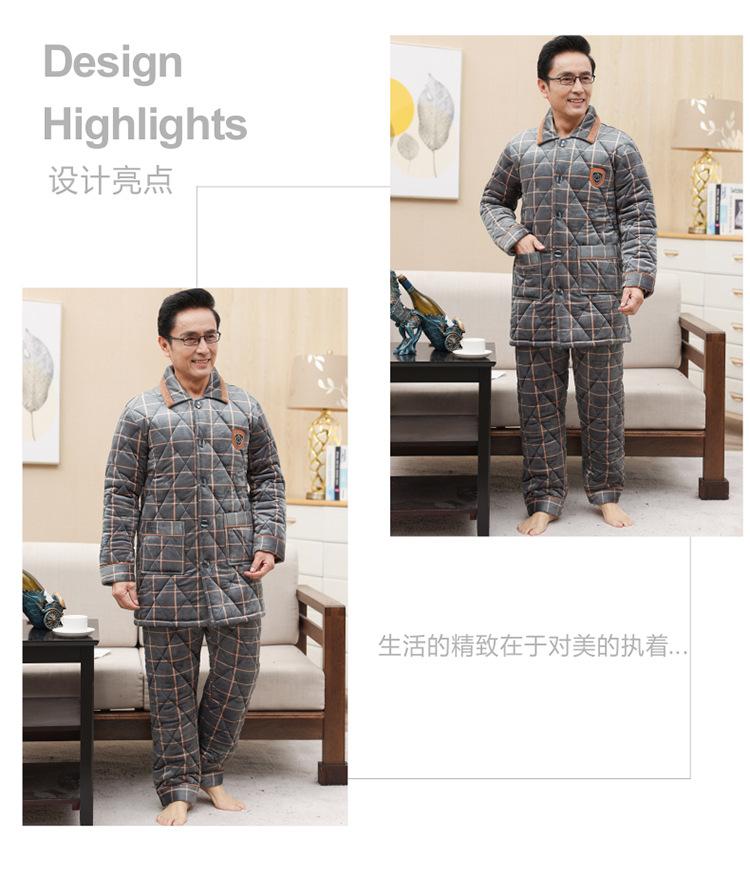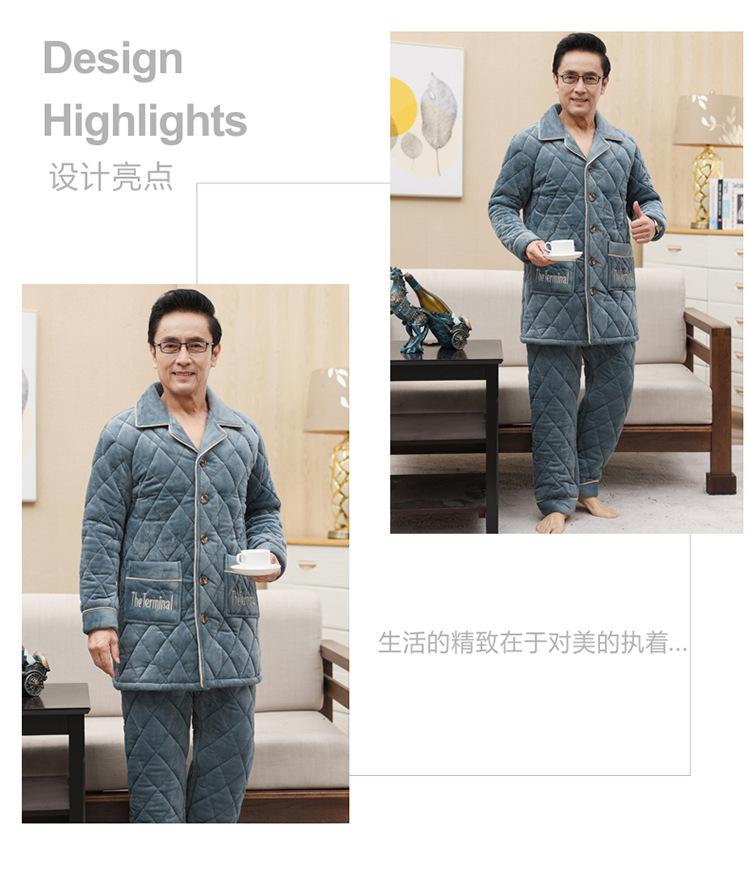 Pijama de invierno para hombre de tres capas con forro polar, grueso, largo medio, franela holgada de talla grande, para mediana edad y ancianos, cálido para estar en casa