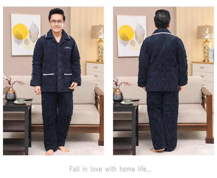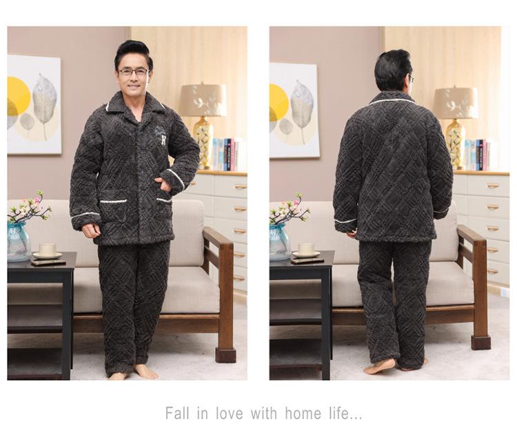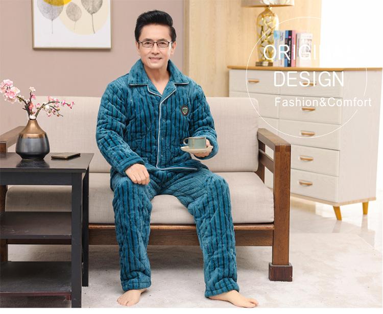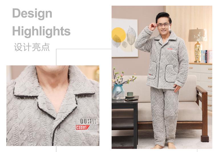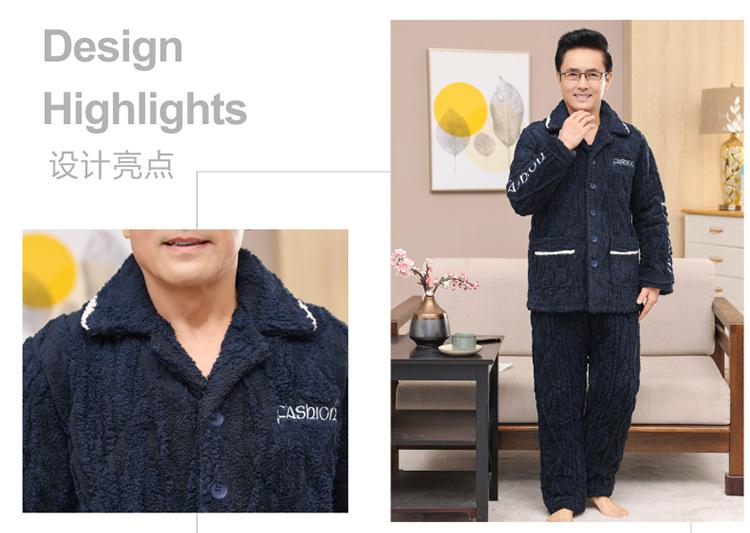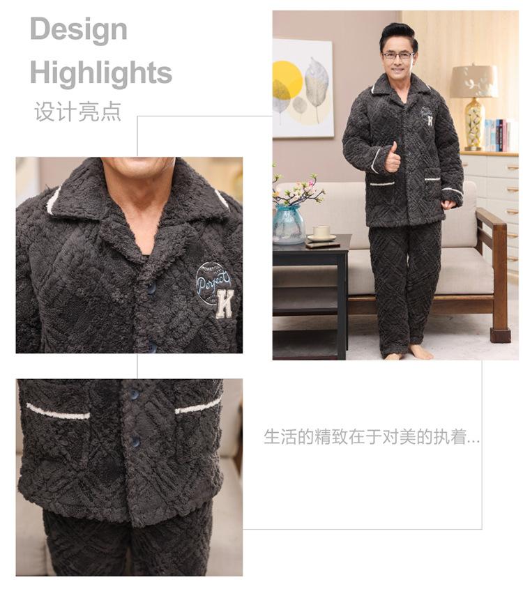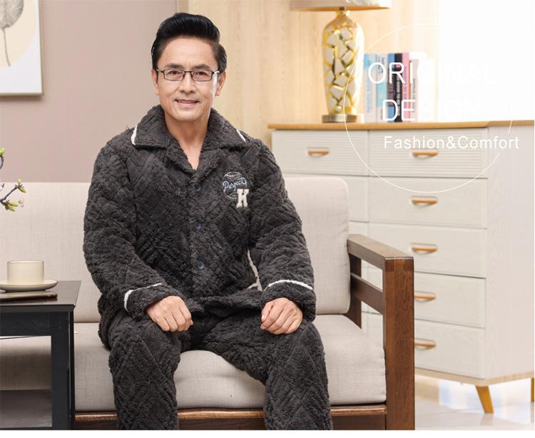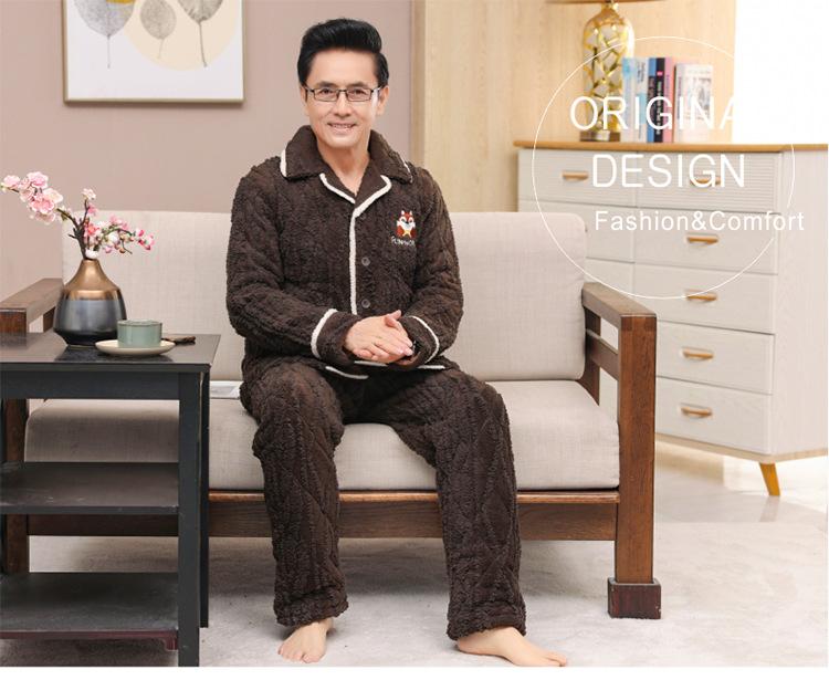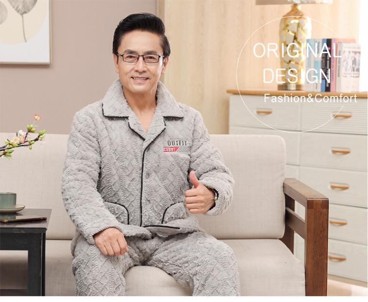 Pijama de manga larga de otoño e invierno para hombre, con solapa, forro polar grueso, para papá de mediana edad y anciano, franela, ropa de casa, traje exterior