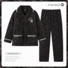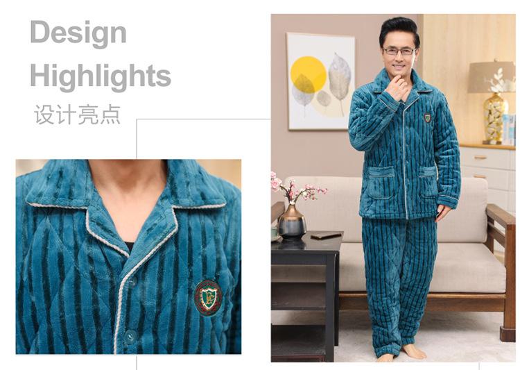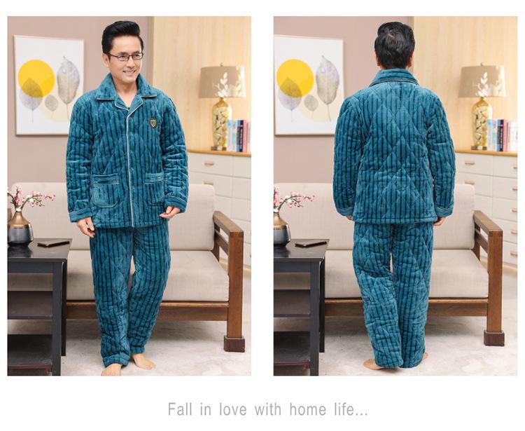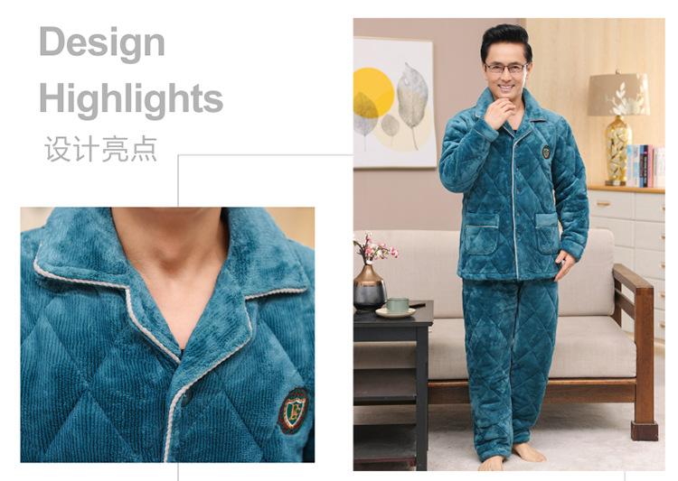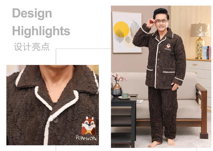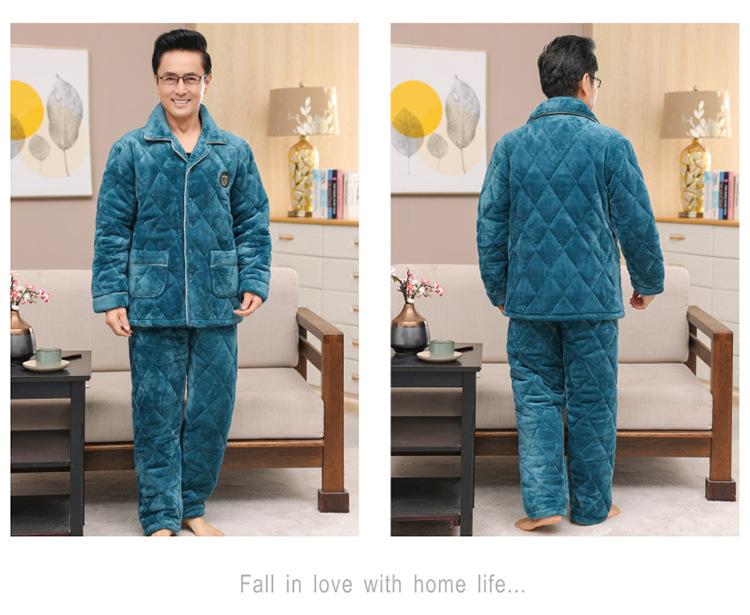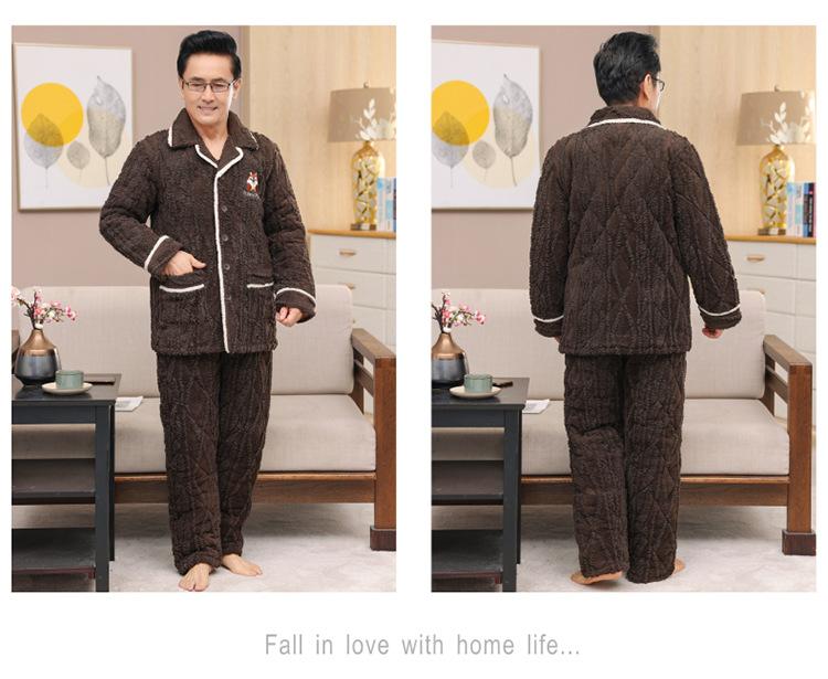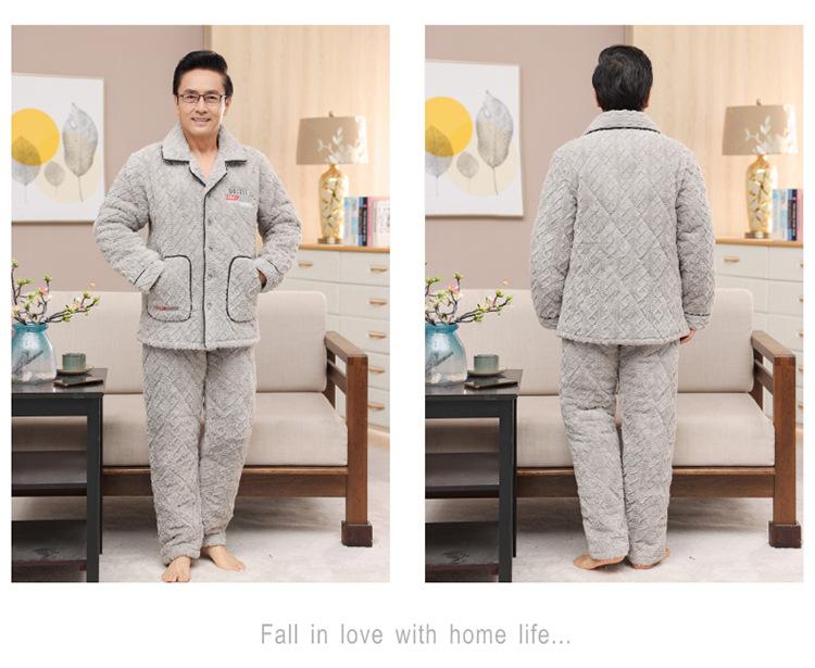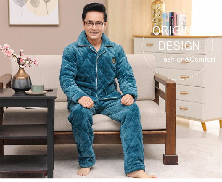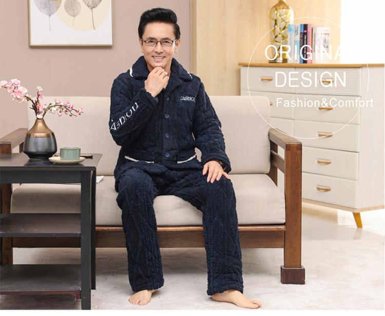 Pijama de manga larga de otoño e invierno para hombre, con solapa, forro polar grueso, para papá de mediana edad y anciano, franela, ropa de casa, traje exterior