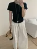 Playera de Manga Corta de Terciopelo Nube con Cuello Redondo Bajo en el Hombro Derecho, Aspecto Adelgazante, para Mujer, Verano 2025, Nuevo, Elegante Top Corto