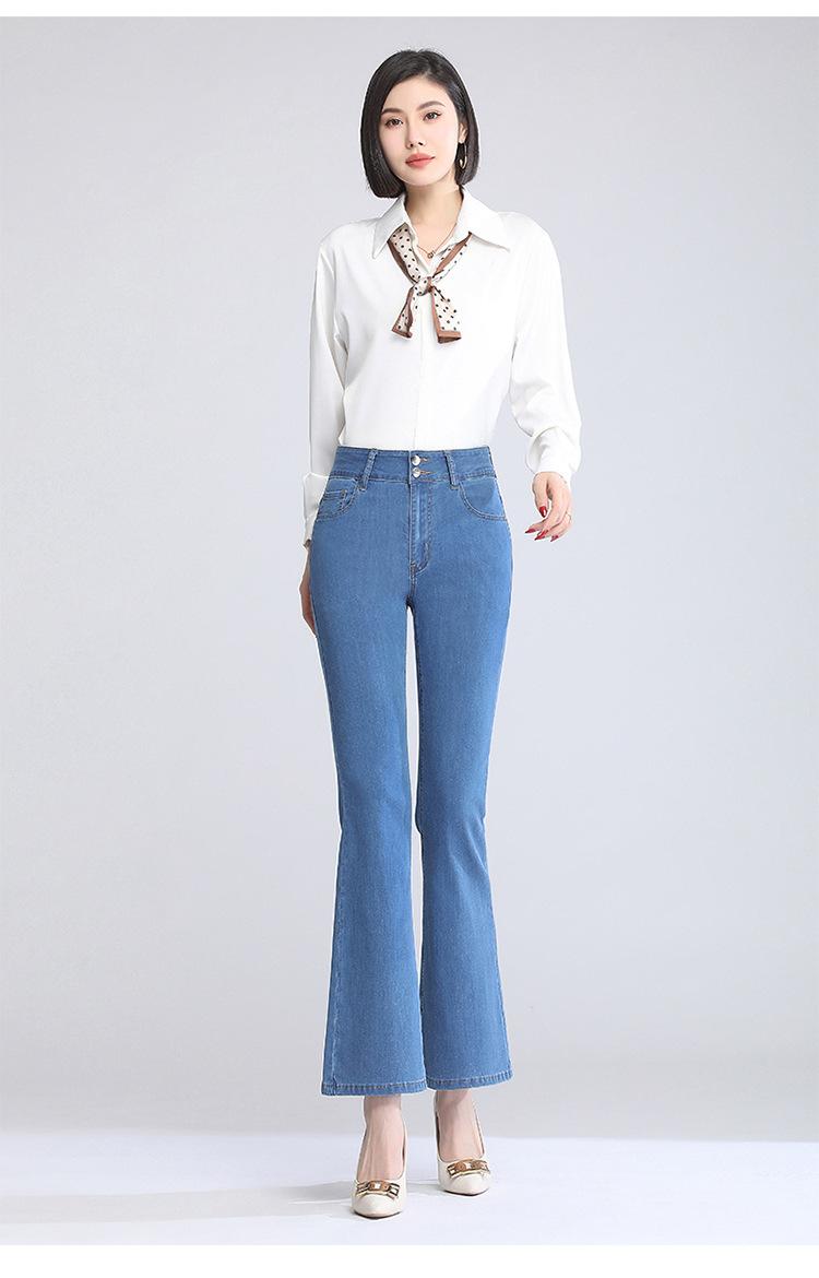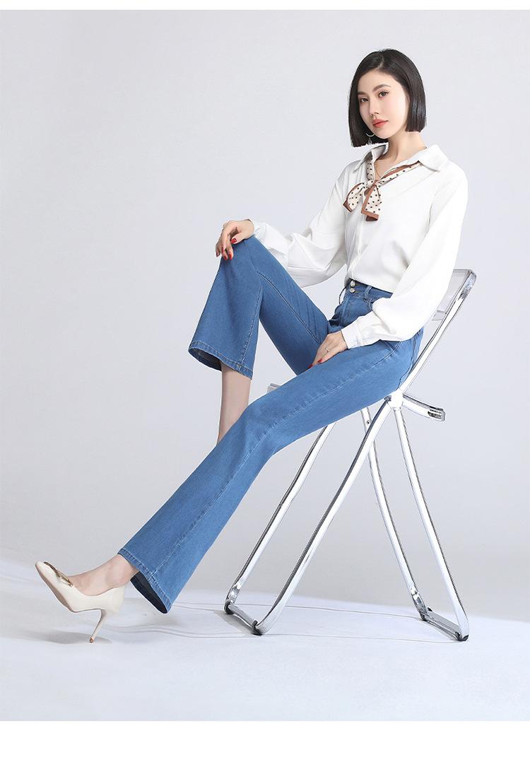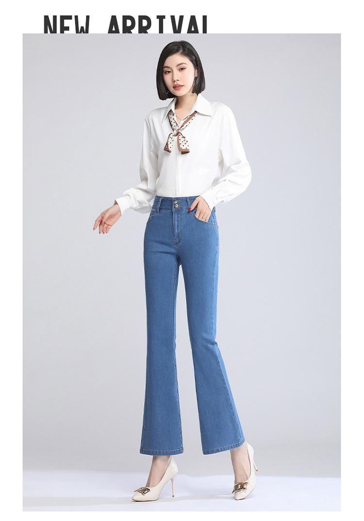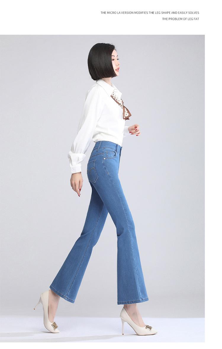Pantalones vaqueros acampanados de cintura alta para mujer, finos y de verano, con doble botonadura, elásticos, ajustados y adelgazantes, microcortos.