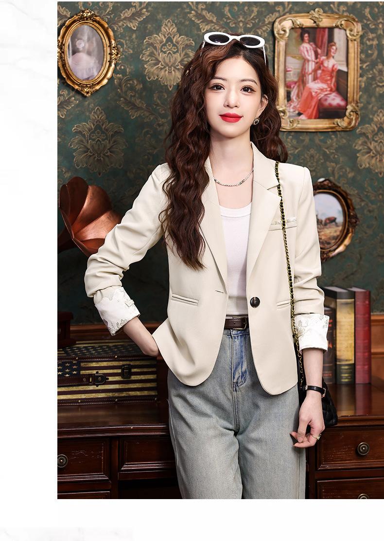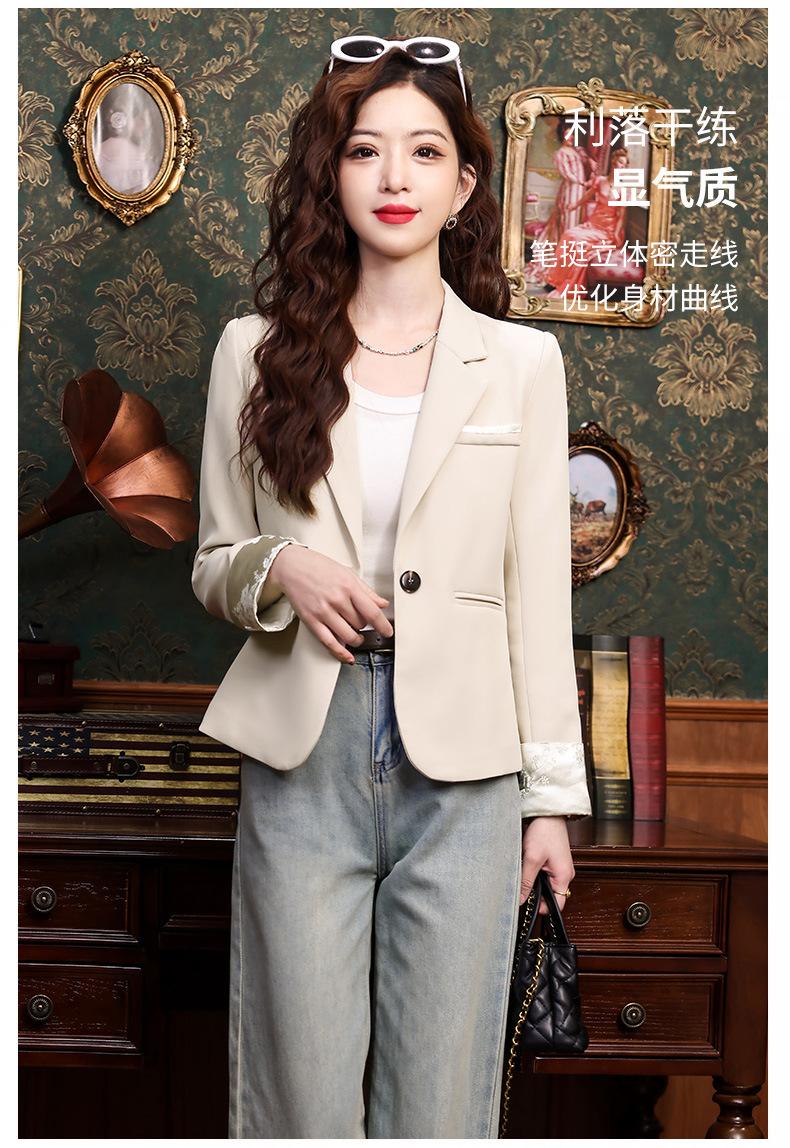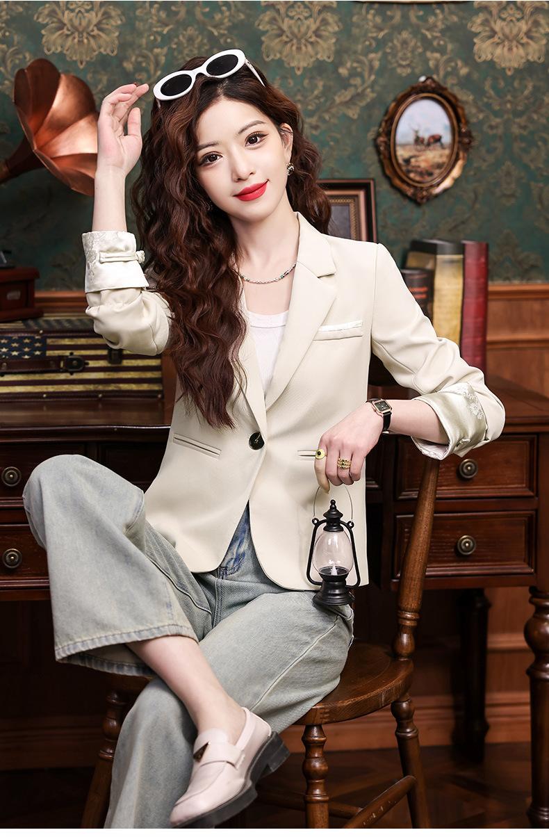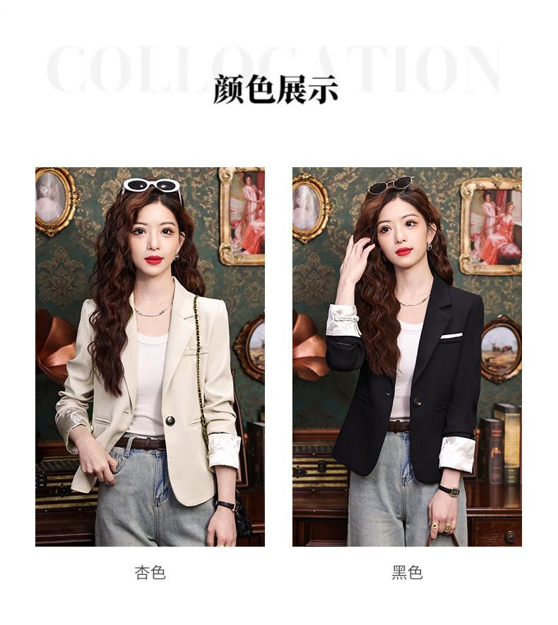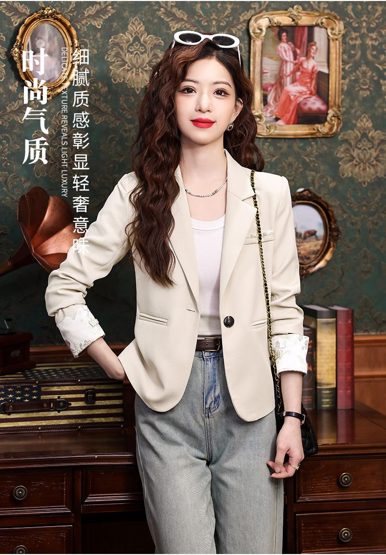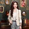 Primavera y otoño 2024 Nueva chaqueta de traje informal de manga larga con cuello pequeño y color albaricoque para mujer, elegante y a la moda para todo tipo de combinaciones.