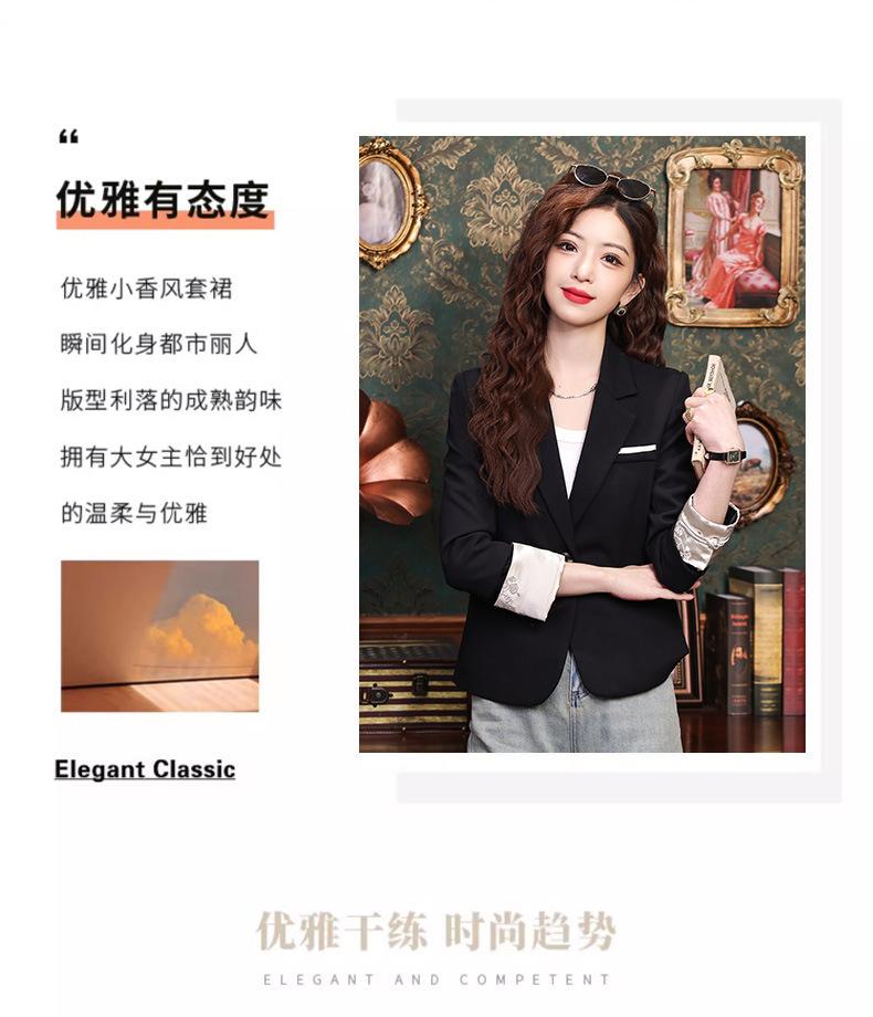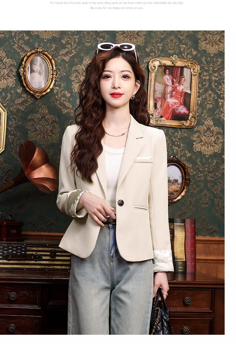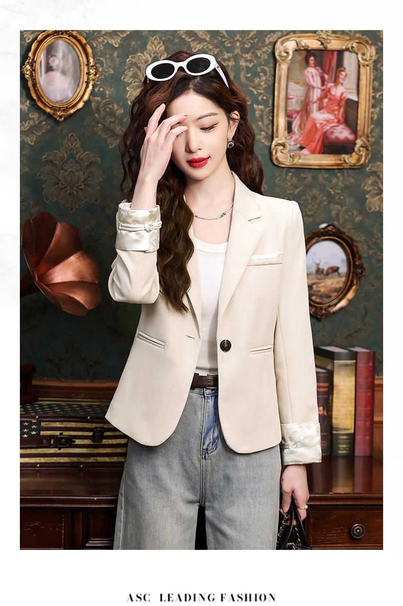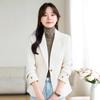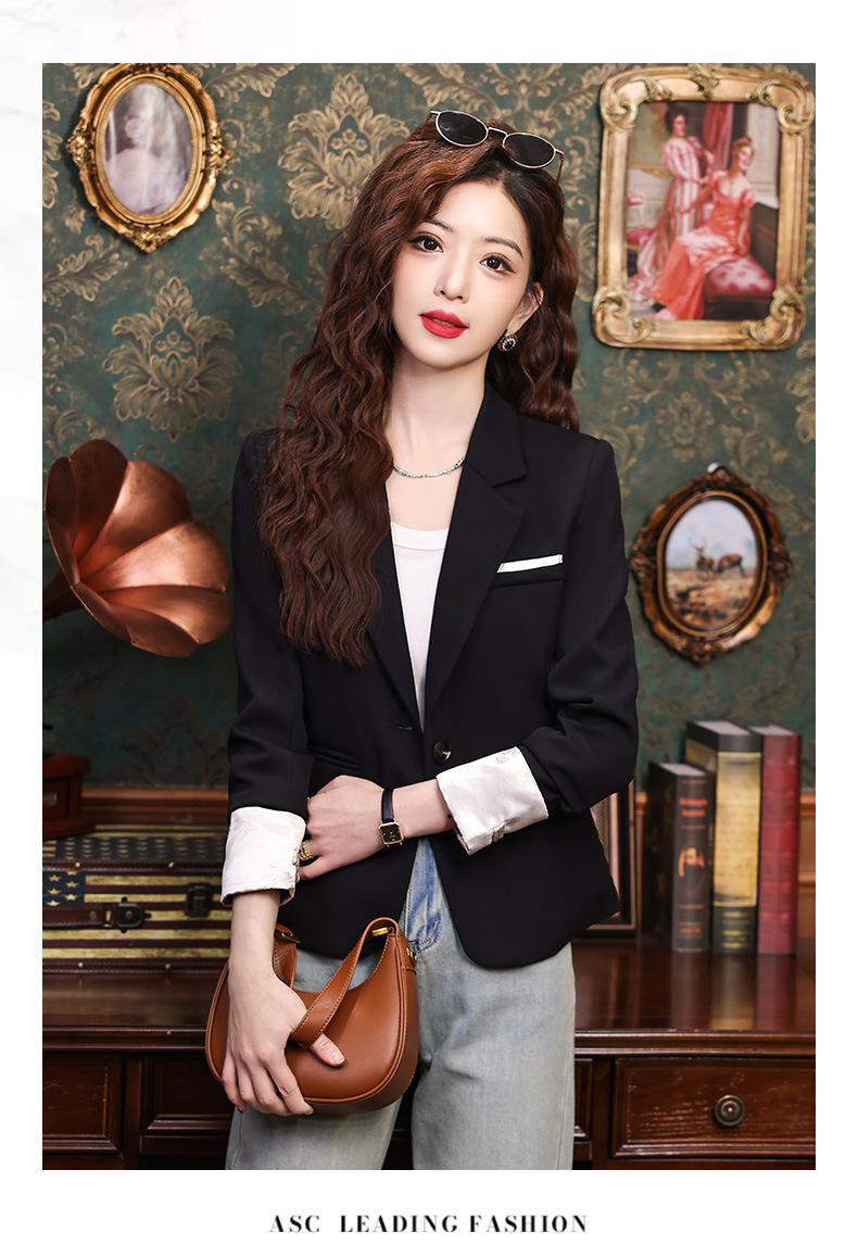 Primavera y otoño 2024 Nueva chaqueta de traje informal de manga larga con cuello pequeño y color albaricoque para mujer, elegante y a la moda para todo tipo de combinaciones.