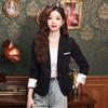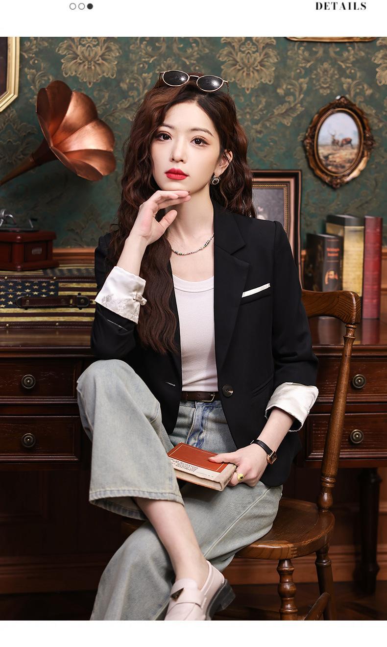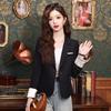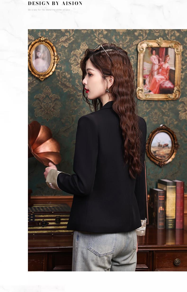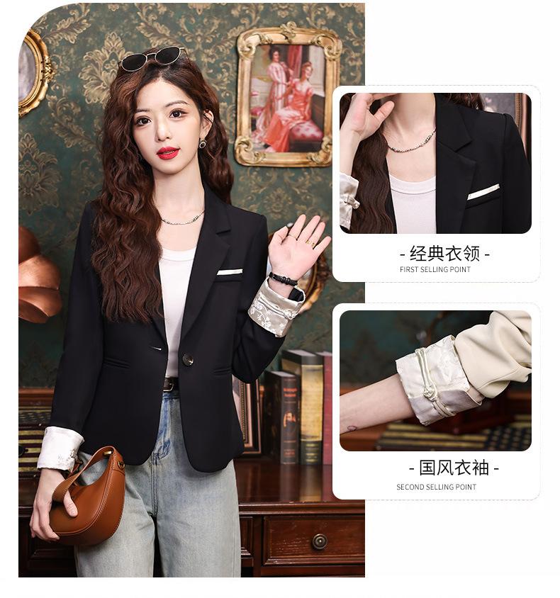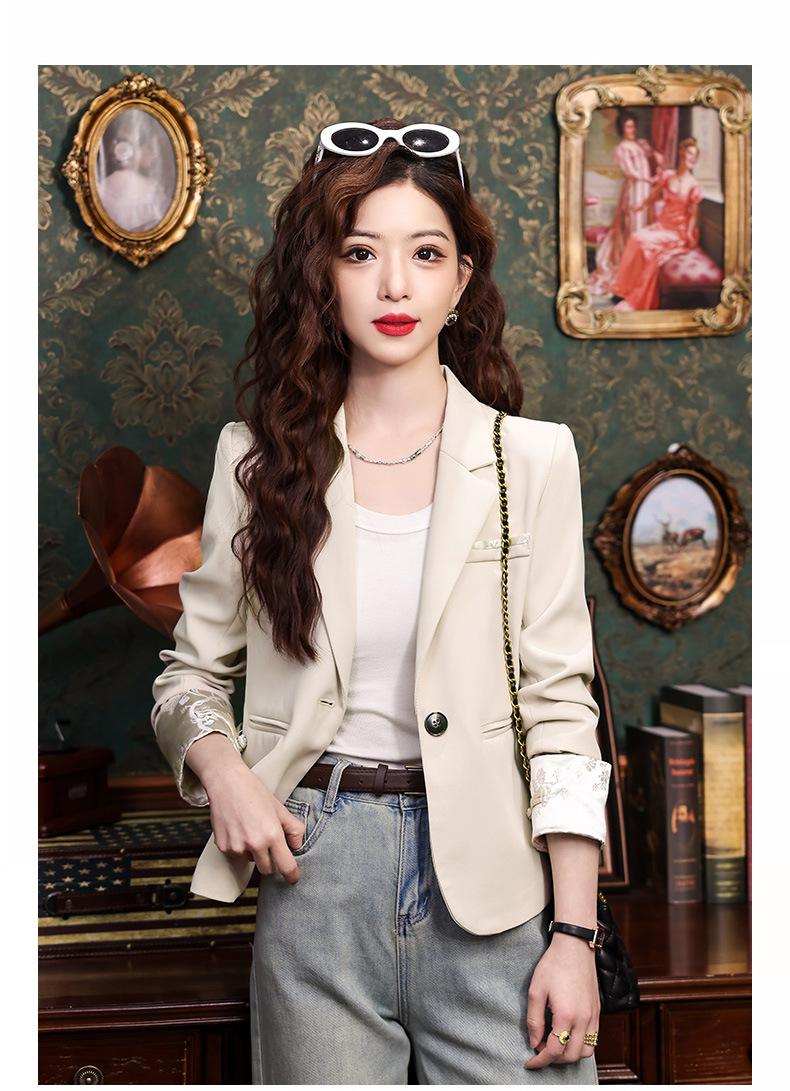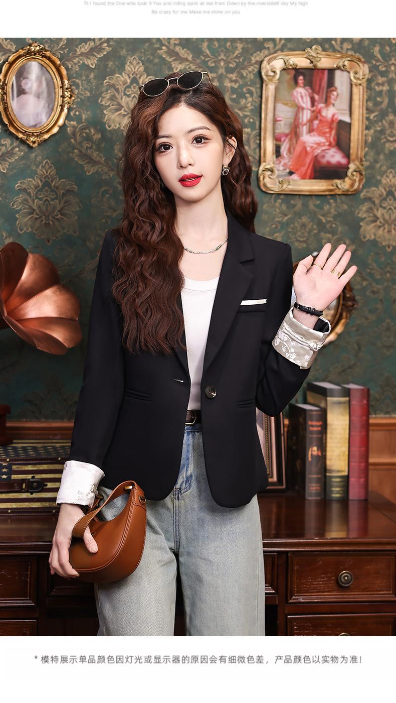 Primavera y otoño 2024 Nueva chaqueta de traje informal de manga larga con cuello pequeño y color albaricoque para mujer, elegante y a la moda para todo tipo de combinaciones.