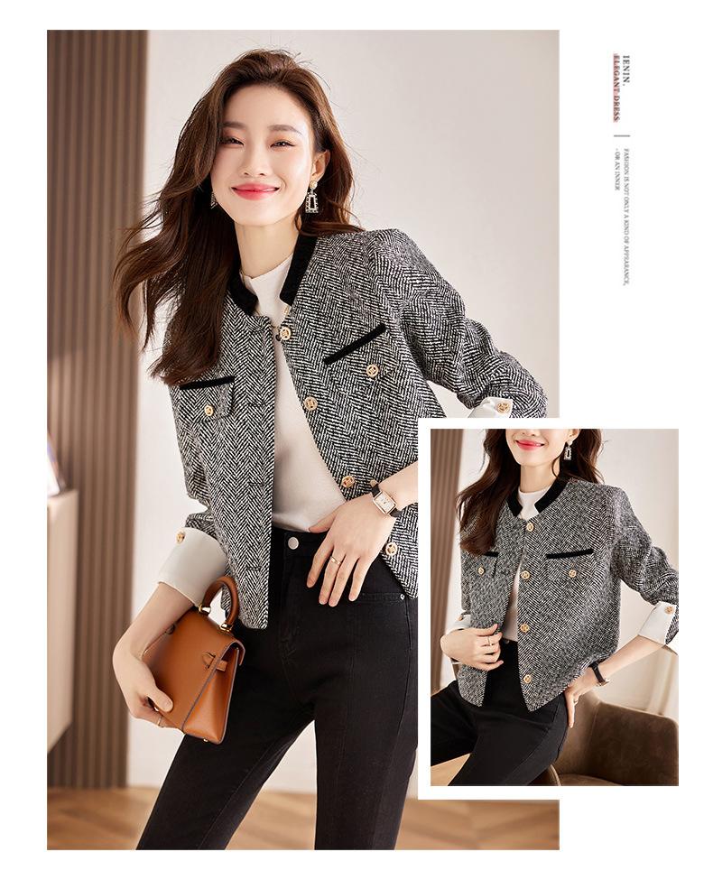 Otoño e invierno 2023 nuevo abrigo pequeño de manga larga gris temperamento de mujer excelente nombre tendencia de moda cálida pequeña combinación