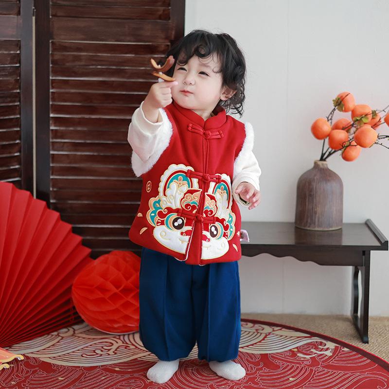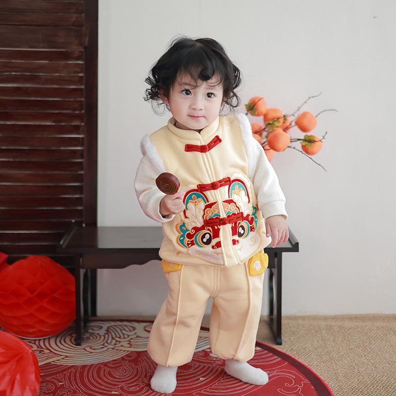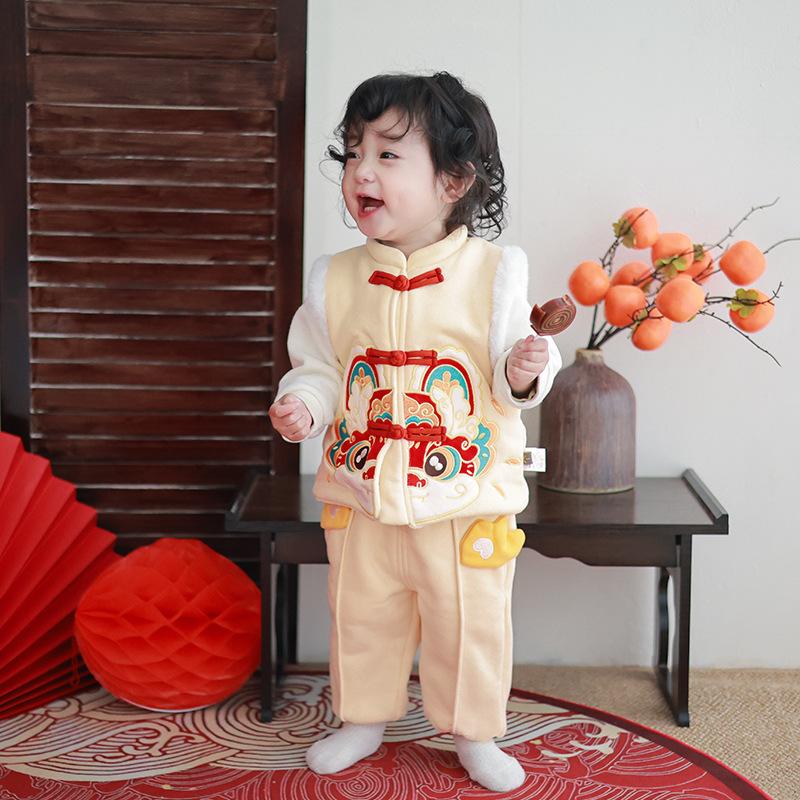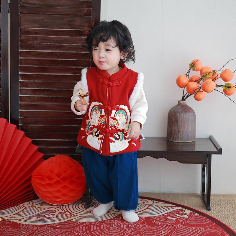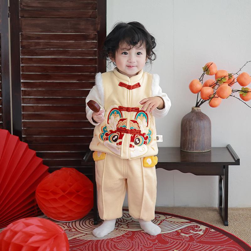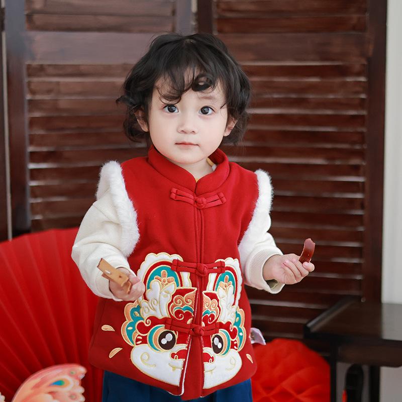 Chaleco infantil de invierno con forro polar, estilo chino, para danza del león, ropa de invierno para Año Nuevo.