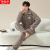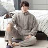 Pijama de franela de otoño e invierno para hombre, cárdigan con cremallera cálida y forro polar coral grueso, traje para el hogar