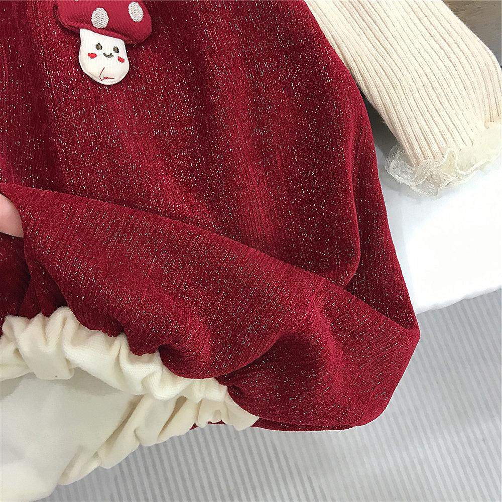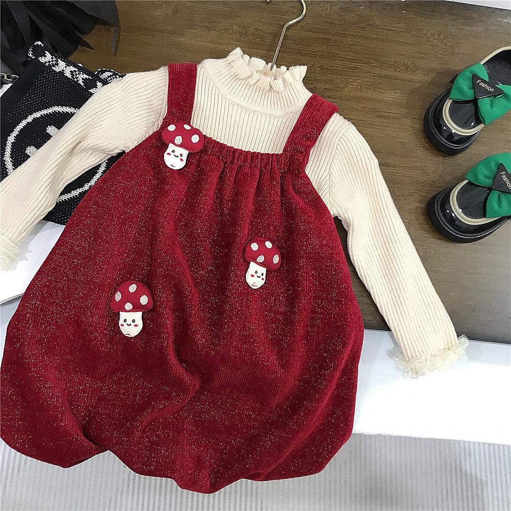 Two-piece sweater flower skirt set, Sweater mushroom skirt two-piece set