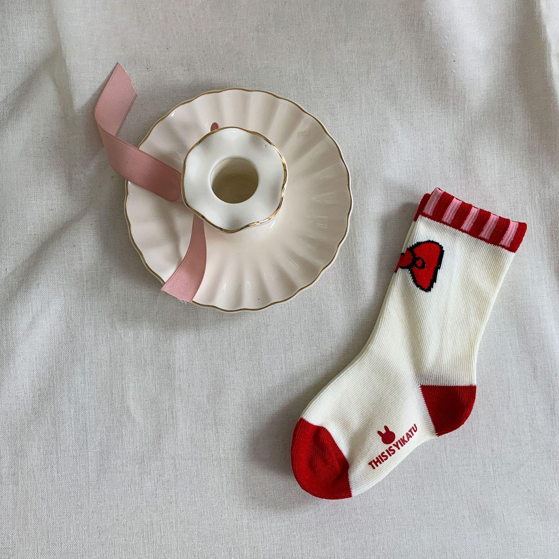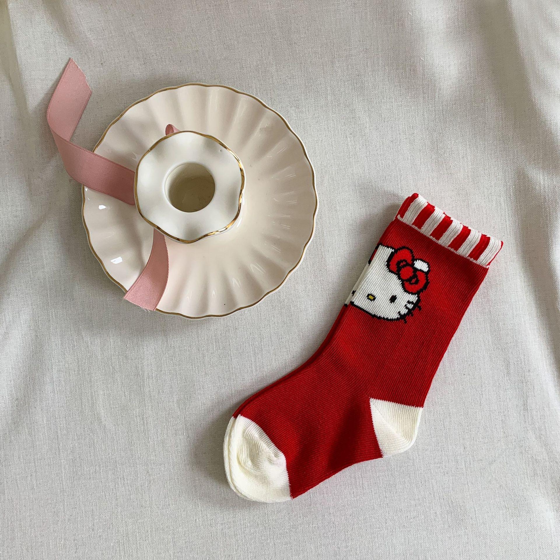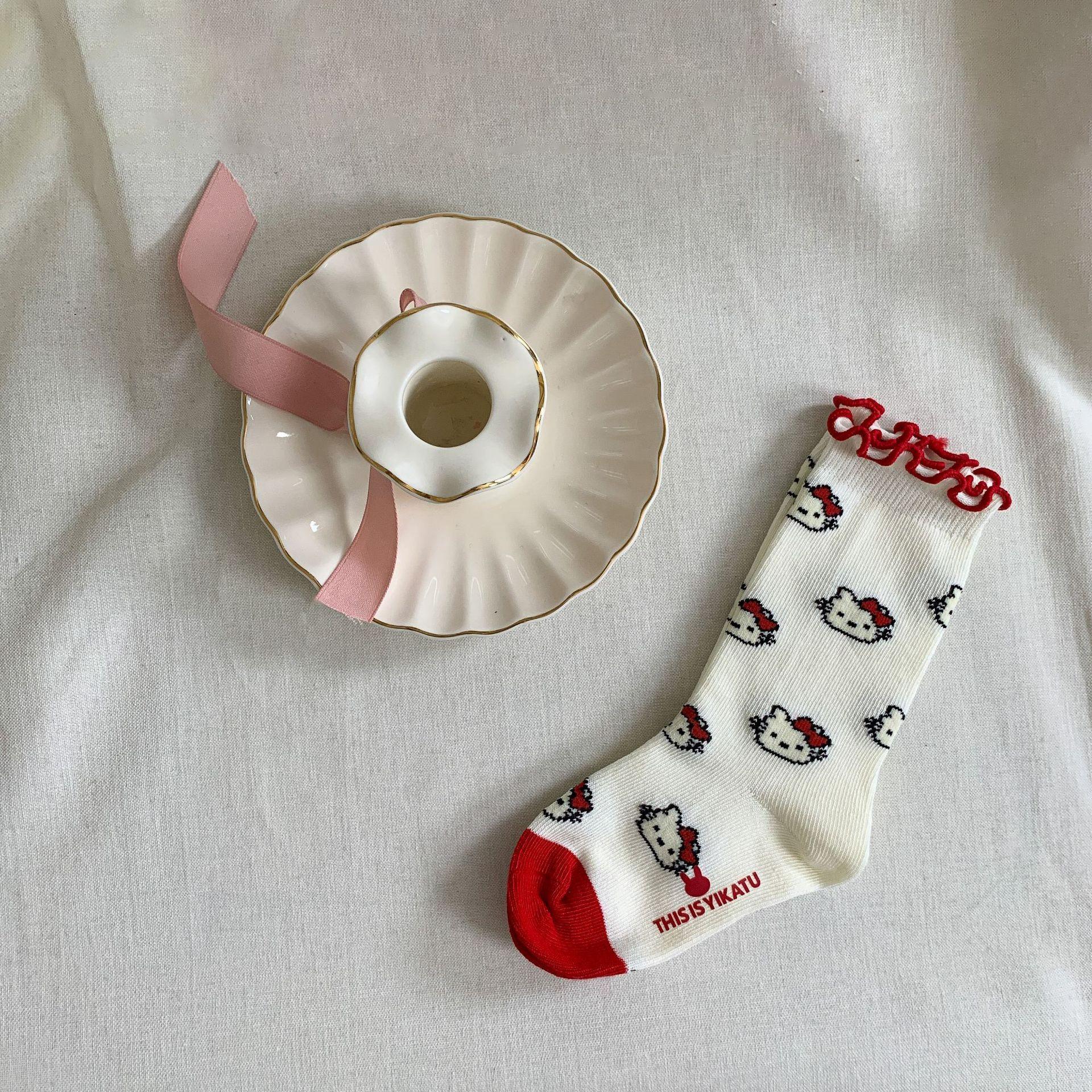 Caña de Azúcar Pera Ropa Infantil Calcetines para Niñas Otoño e Invierno 2024 Nuevos Calcetines de Tubo Medio de Algodón para Bebé Niña con Dibujos Animados de Estilo Occidental