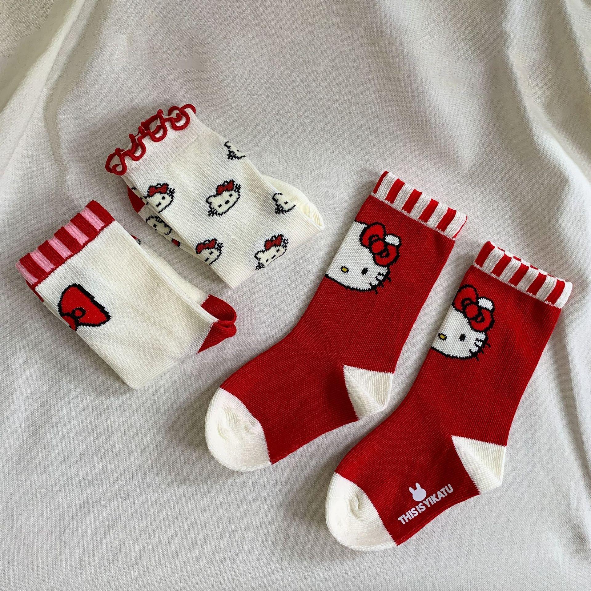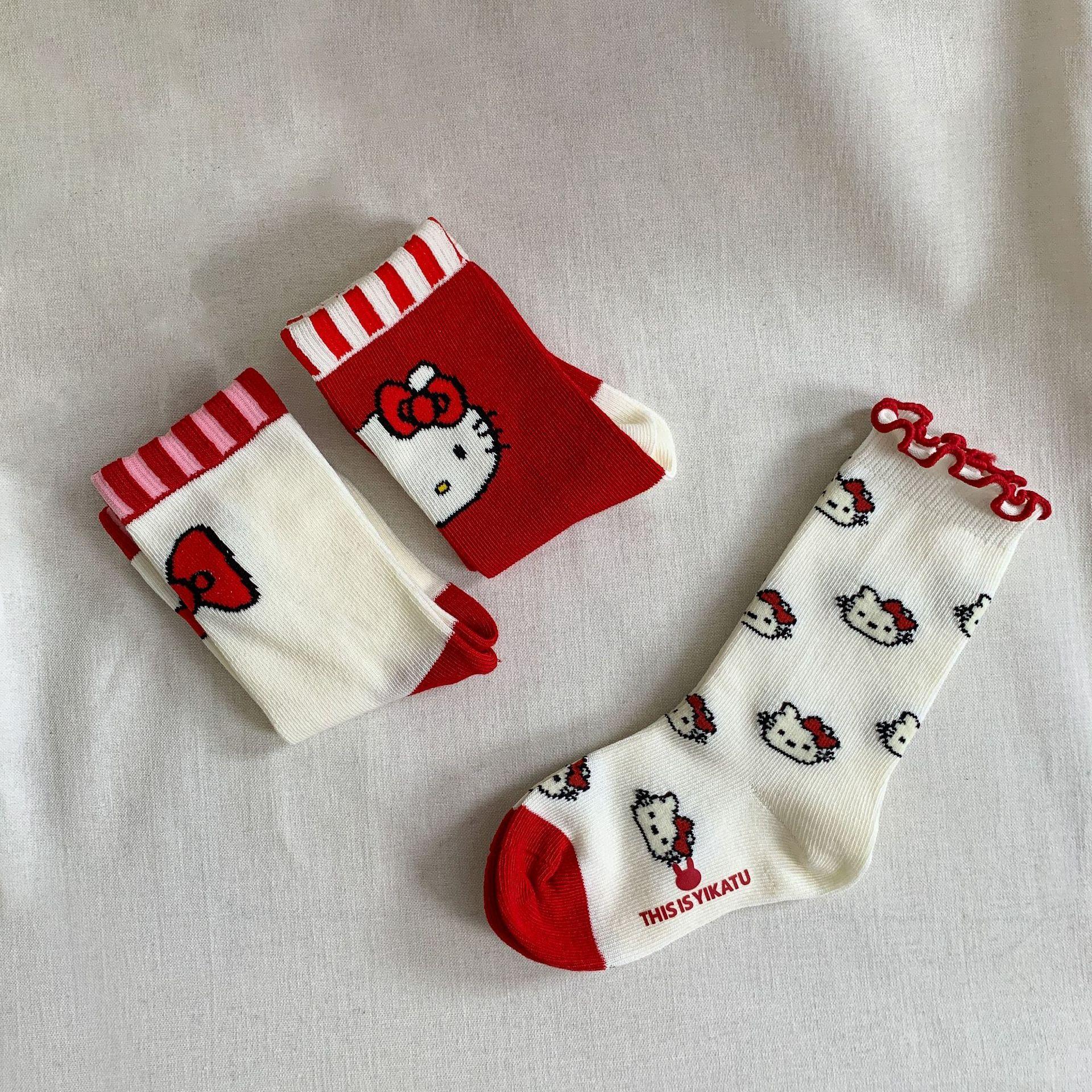 Cartoon cat socks (three pairs per pack)