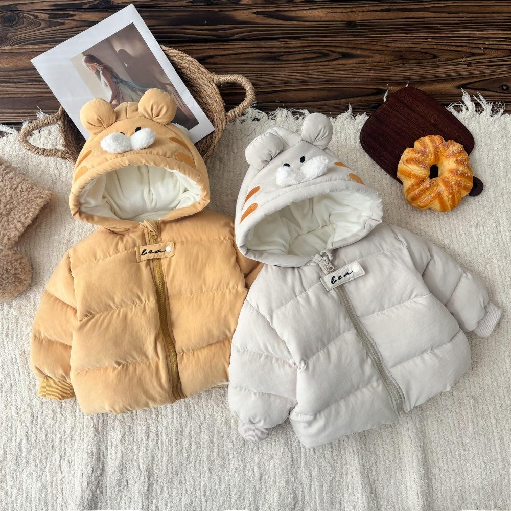 Abrigo de algodón grueso y cálido con diseño de tigre de dibujos animados para bebé, estilo occidental, para invierno, 2024