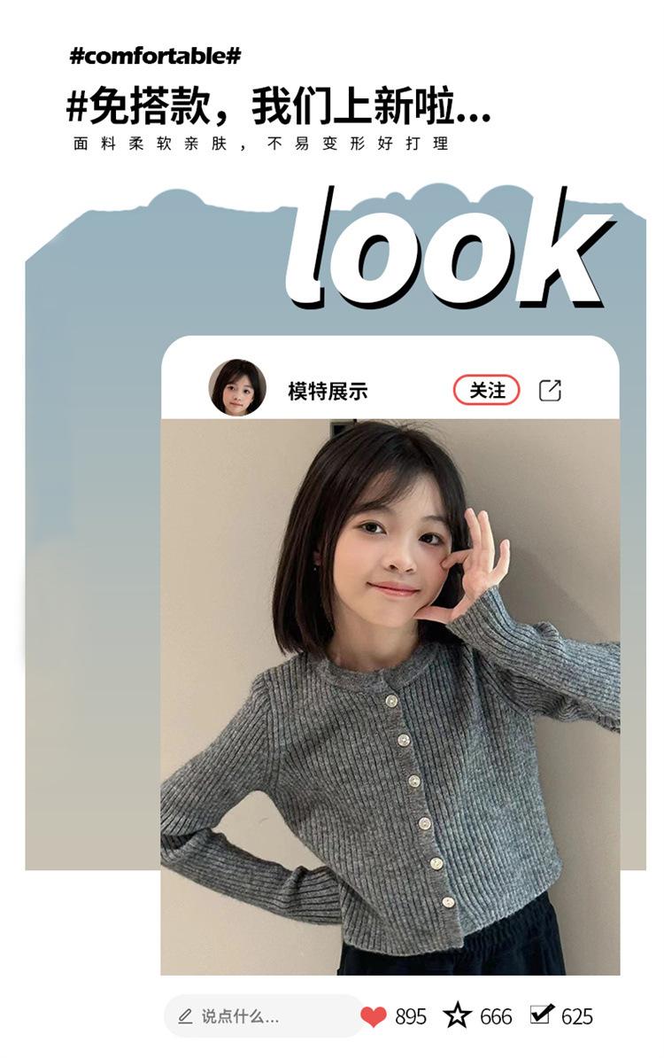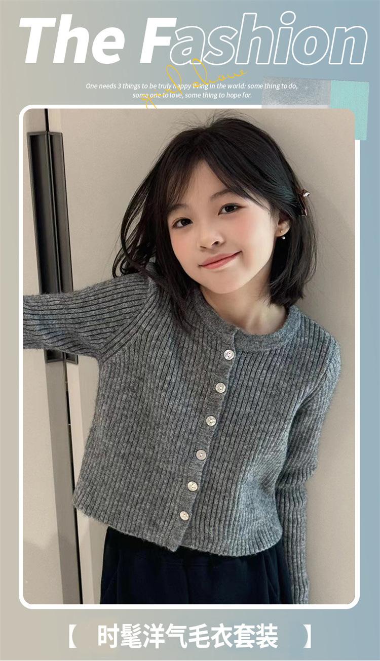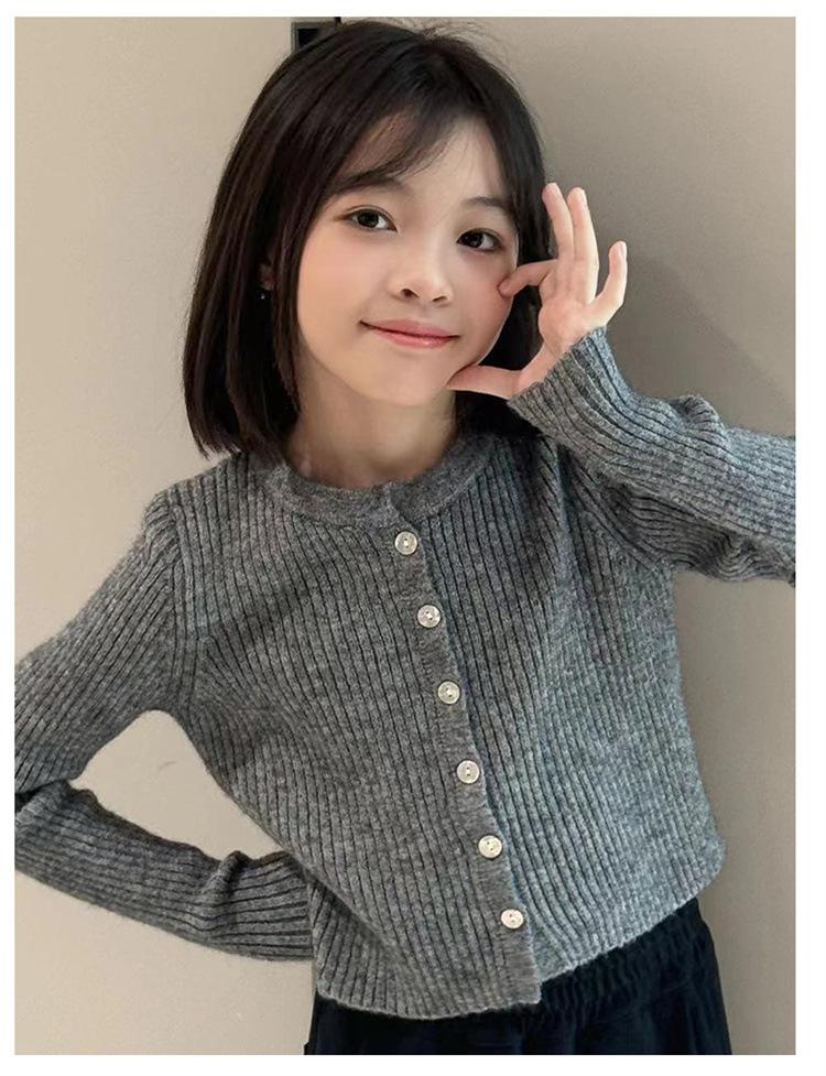Cárdigan de punto estilo coreano para niña Otoño 2024 Nuevo estilo occidental Elegante chaqueta suéter para niños de mediana edad Moderno que combina con todo