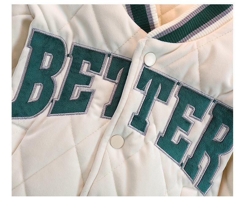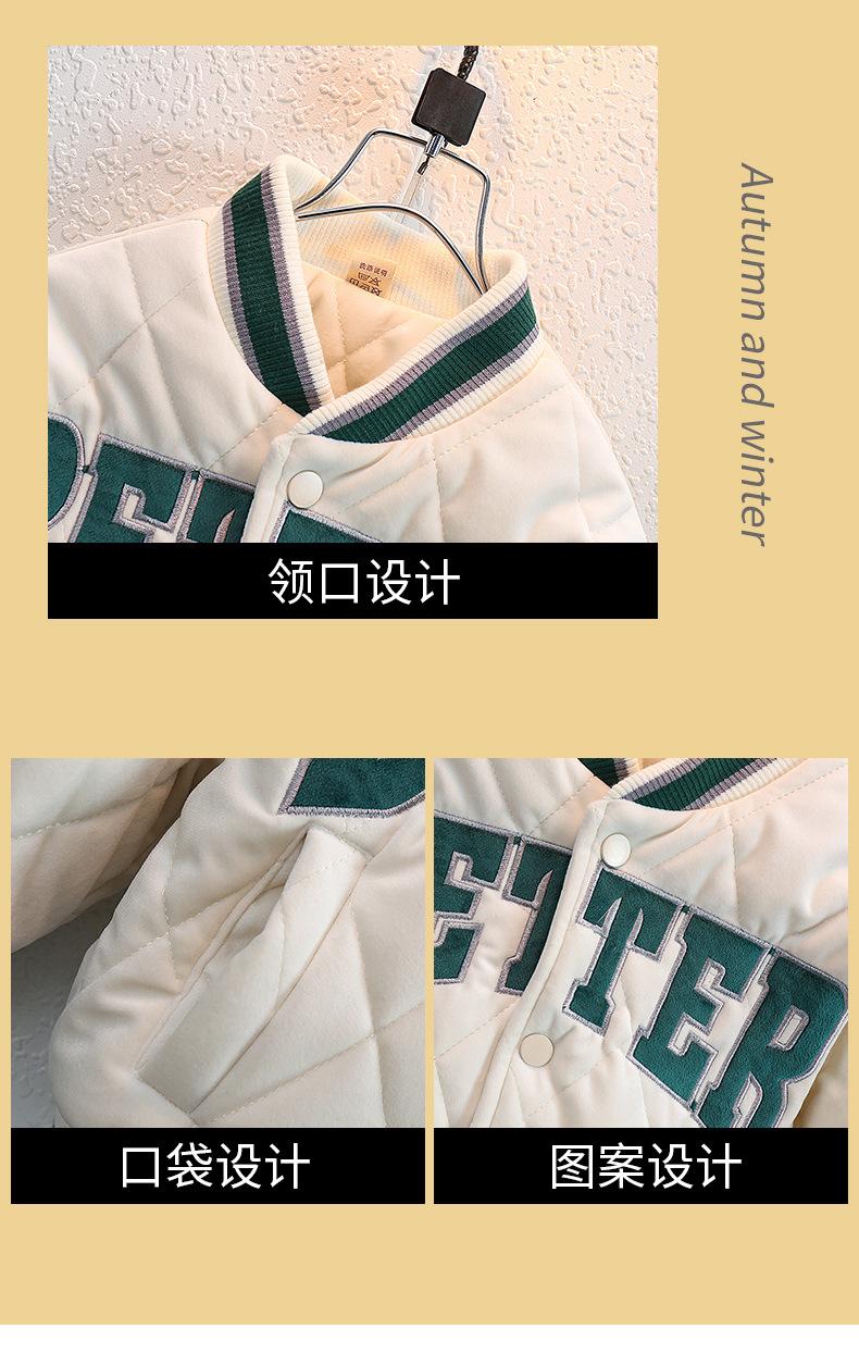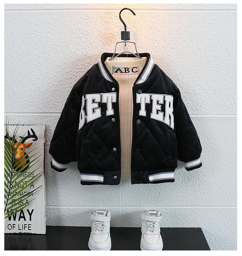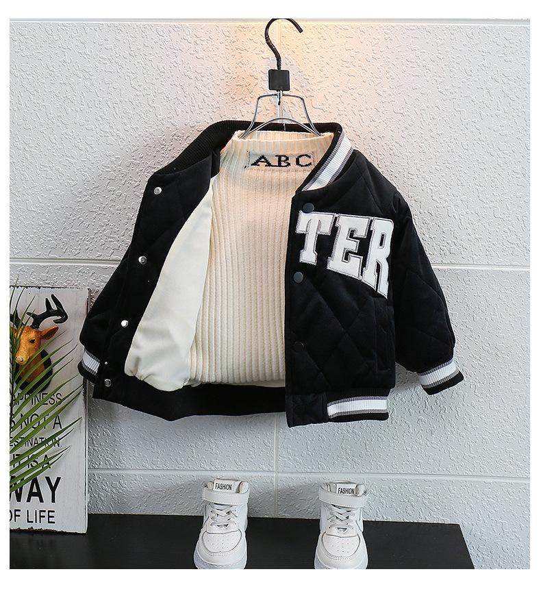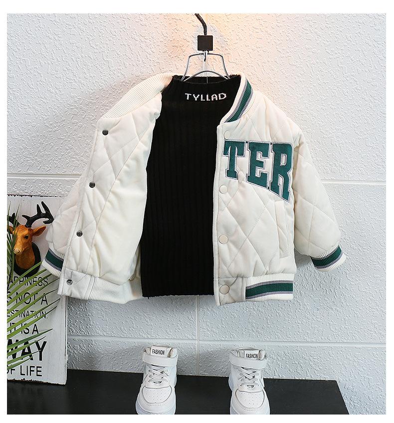 Abrigo de béisbol con forro polar para niño, abrigo de algodón grueso para niño 2024, abrigo de algodón pequeño, abrigo de invierno estilo occidental de algodón para bebé