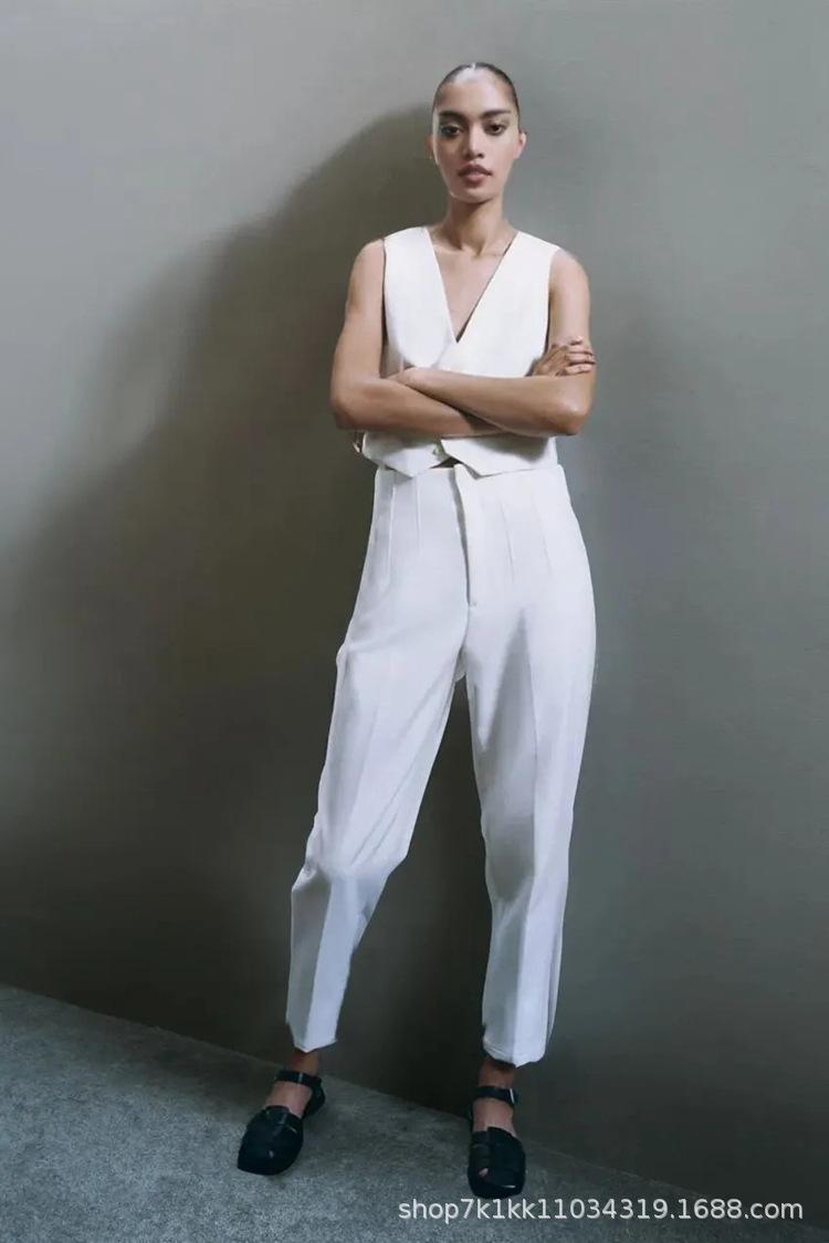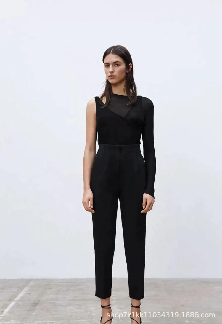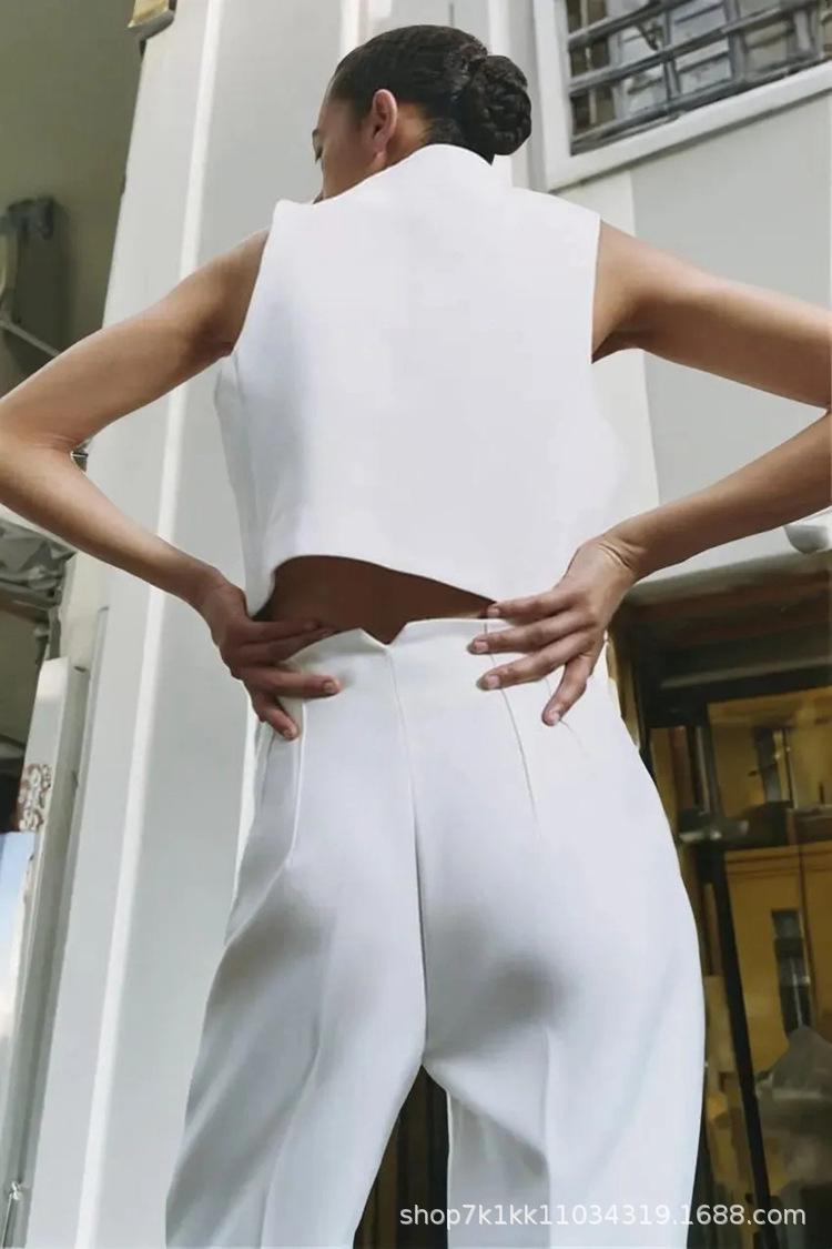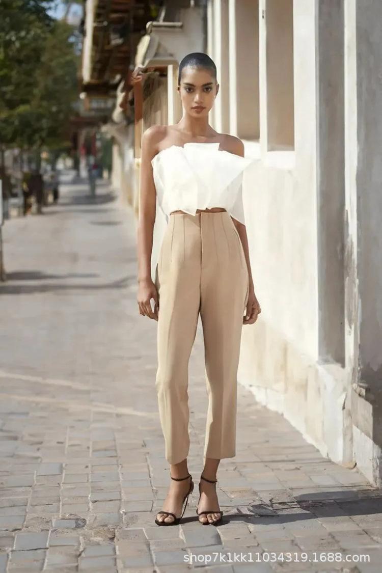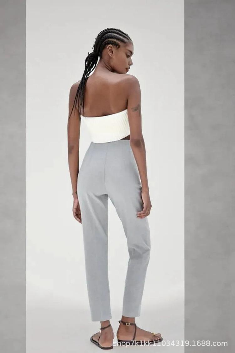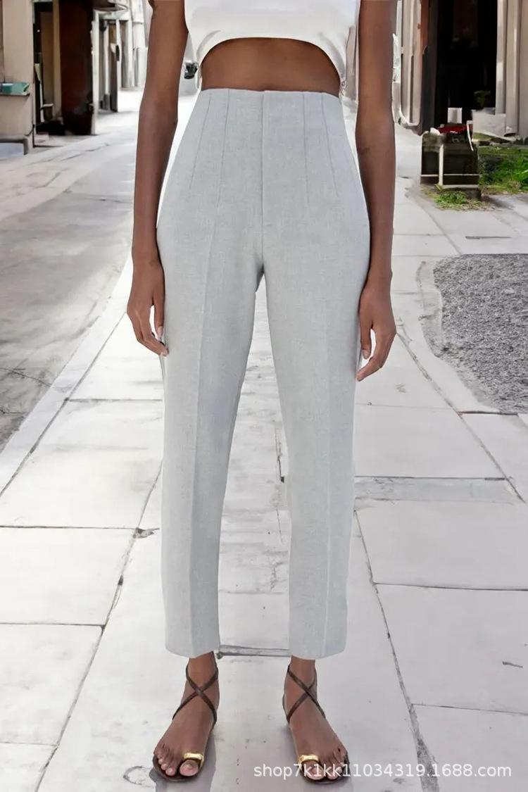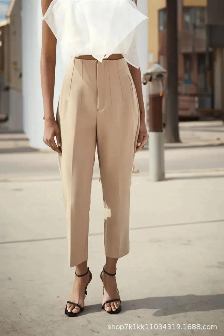 Pantalones de Traje de Cintura Alta para Mujer Nuevo Estilo Occidental Estilo Coreano Pantalones Tubo de Humo Nicho Francés Cubre Vientre Cintura Pantalones Rábano Pequeño