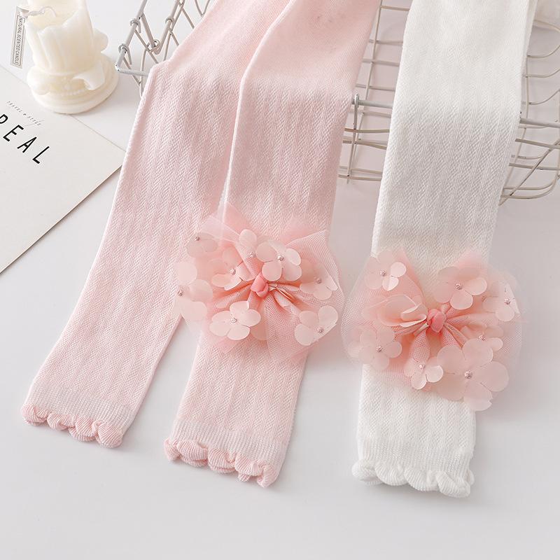 Leggings Nuevos de Primavera y Verano para Bebé Niña, Delgados, Pantalones Capri Infantiles para Niños, Pantalones de Malla, Verano, Patrón Floral Grande Rosa