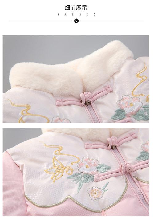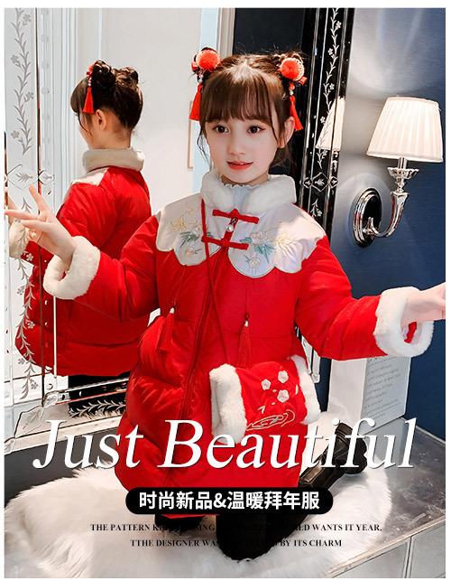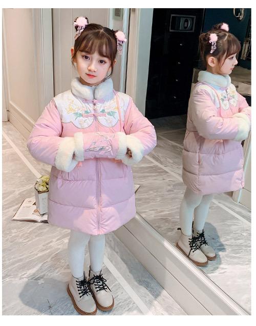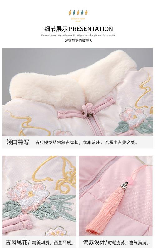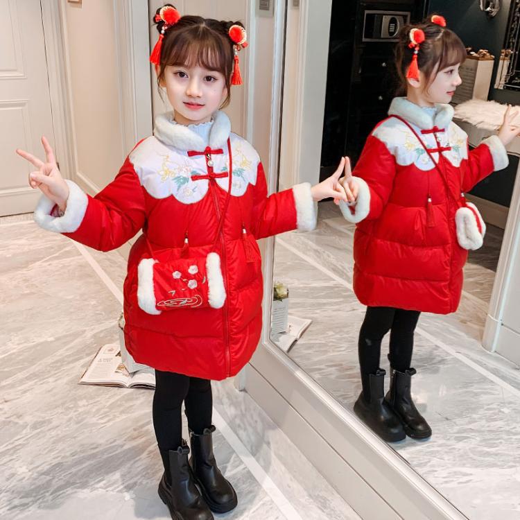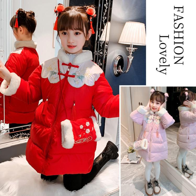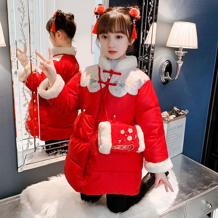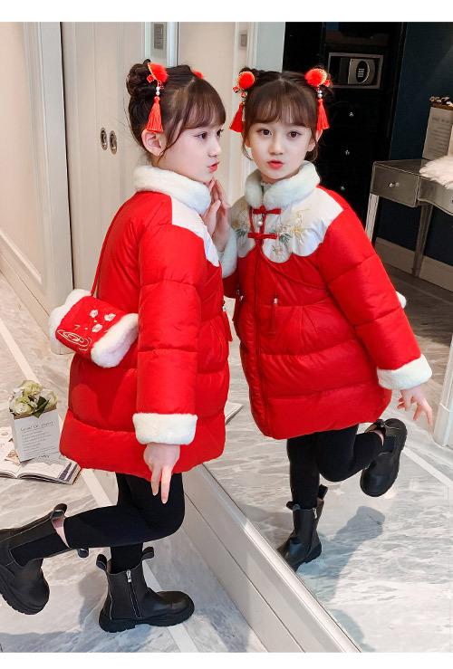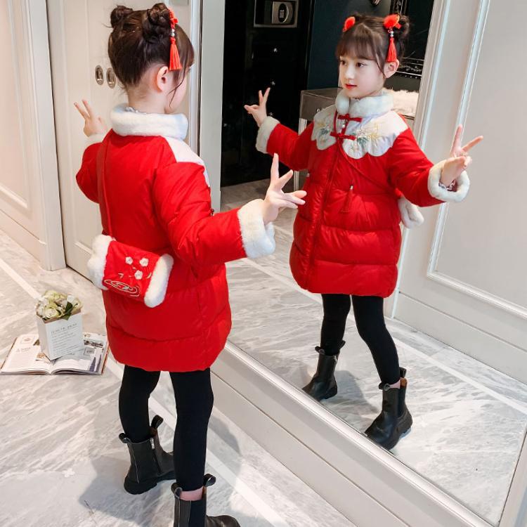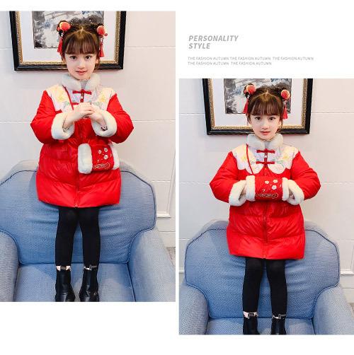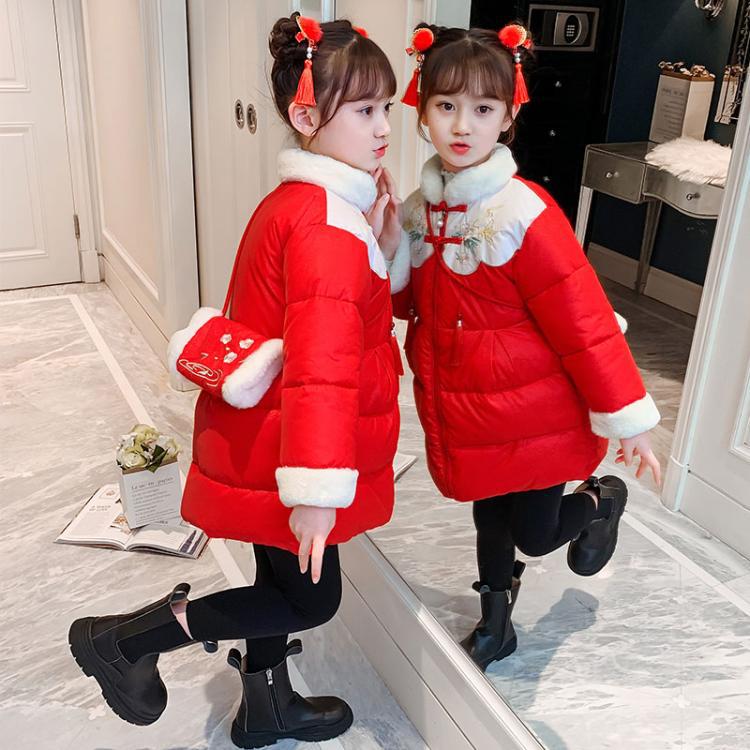 Abrigo acolchado de algodón de invierno para niñas 2021 nuevo abrigo acolchado de algodón de estilo occidental estilo chino para niñas, ropa de felicitación de Año Nuevo engrosada con forro polar para niñas