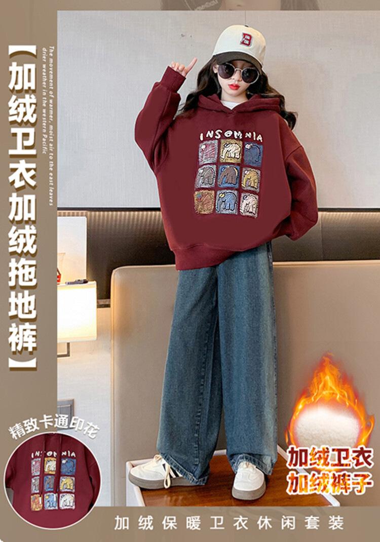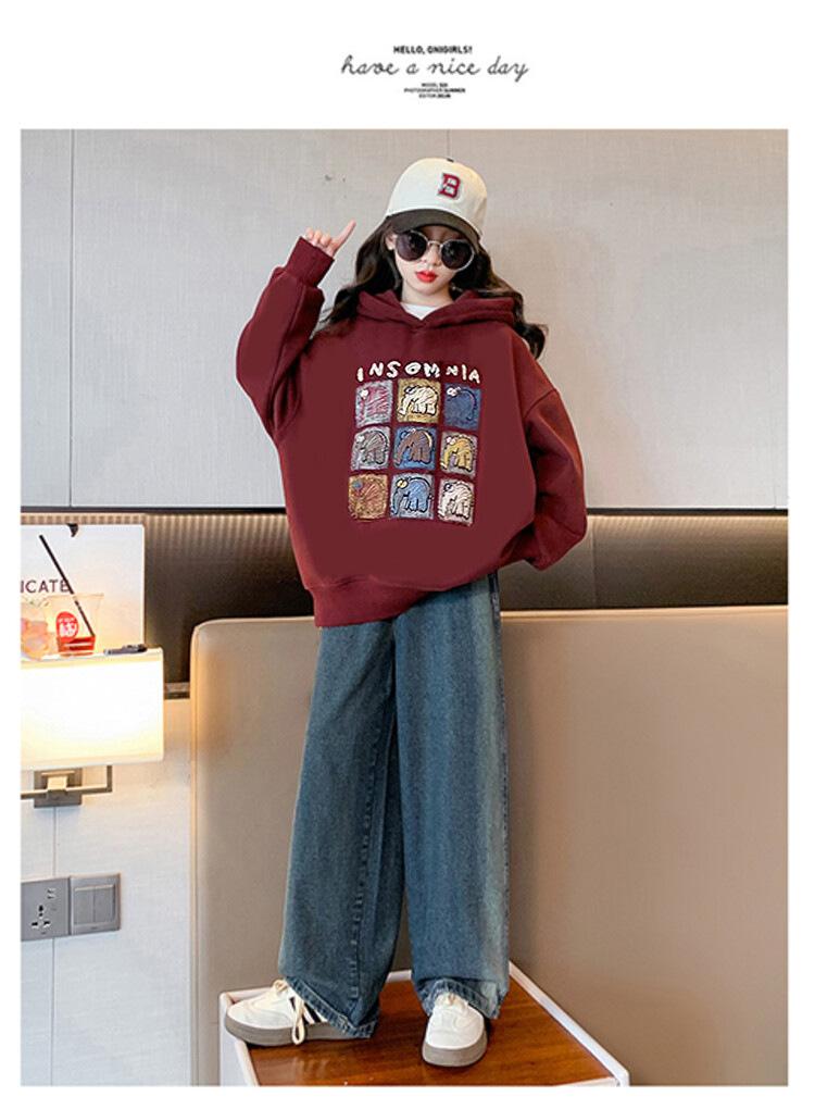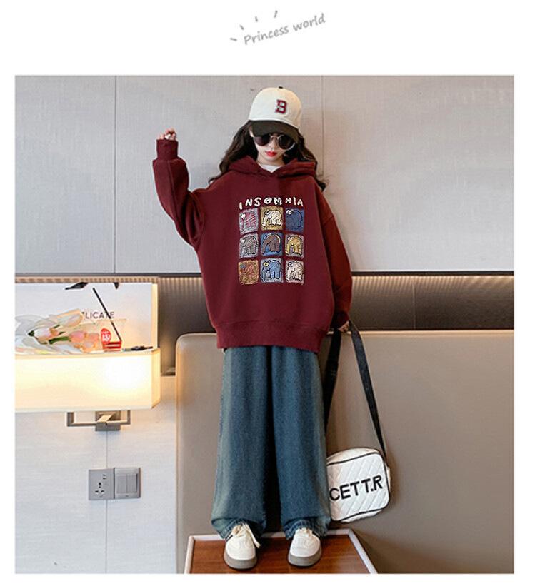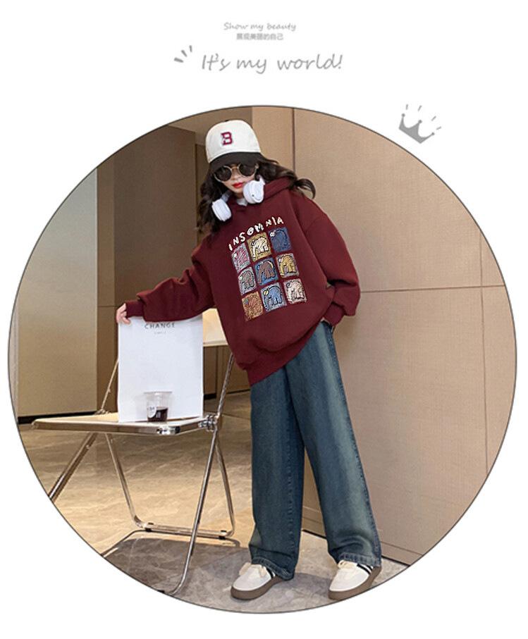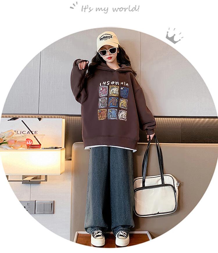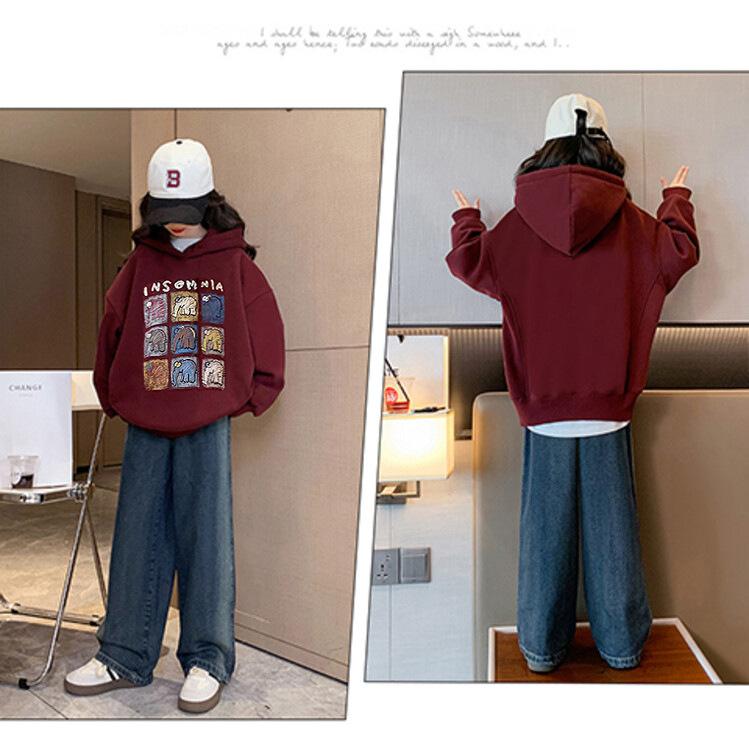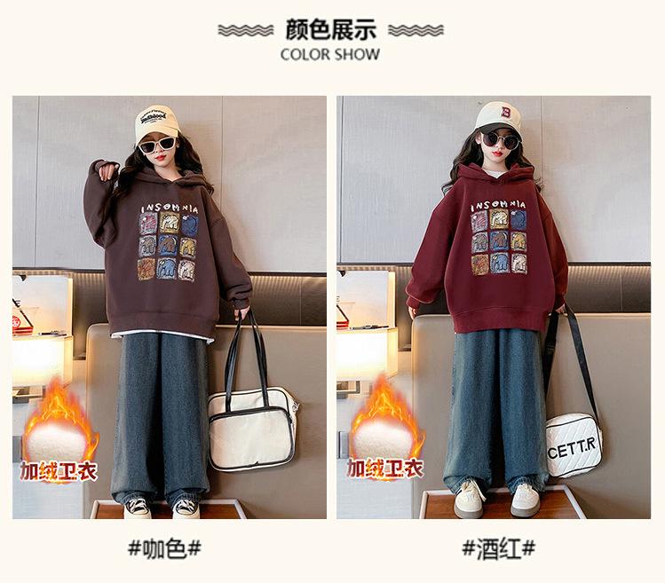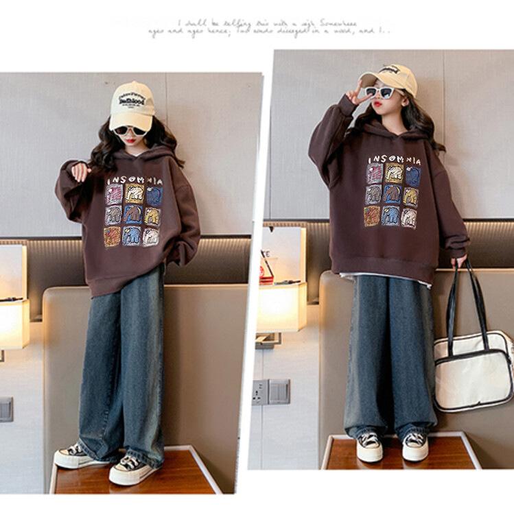 Sudadera Polar para Niñas 2025 Otoño e Invierno Moderna Gruesa Top Infantil Holgada con Capucha