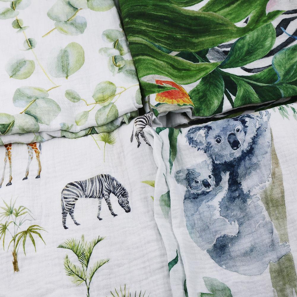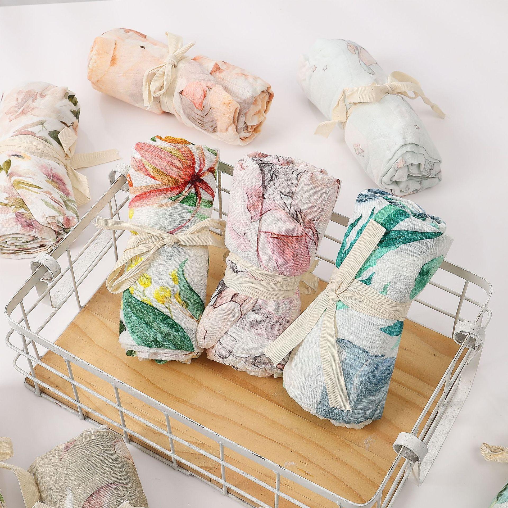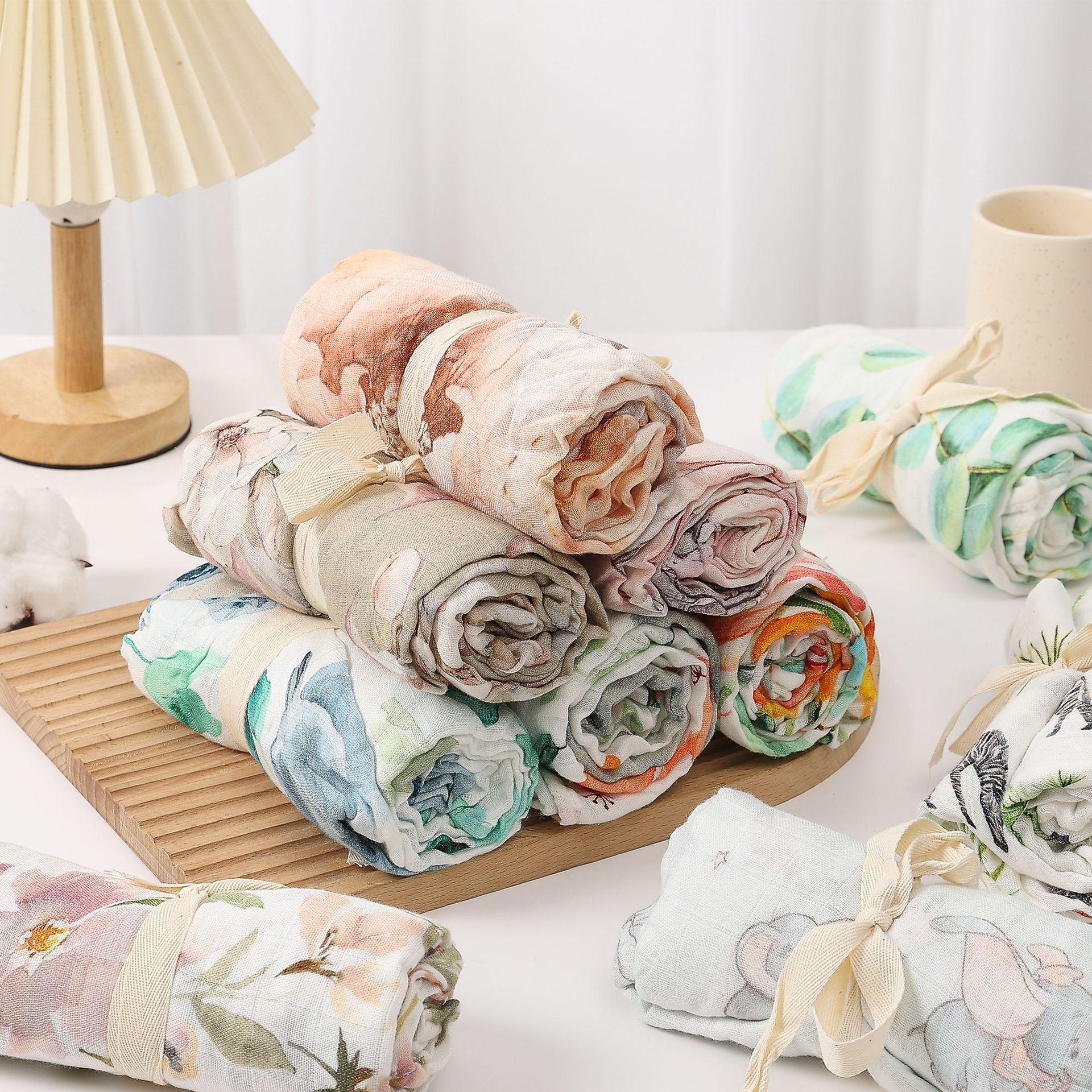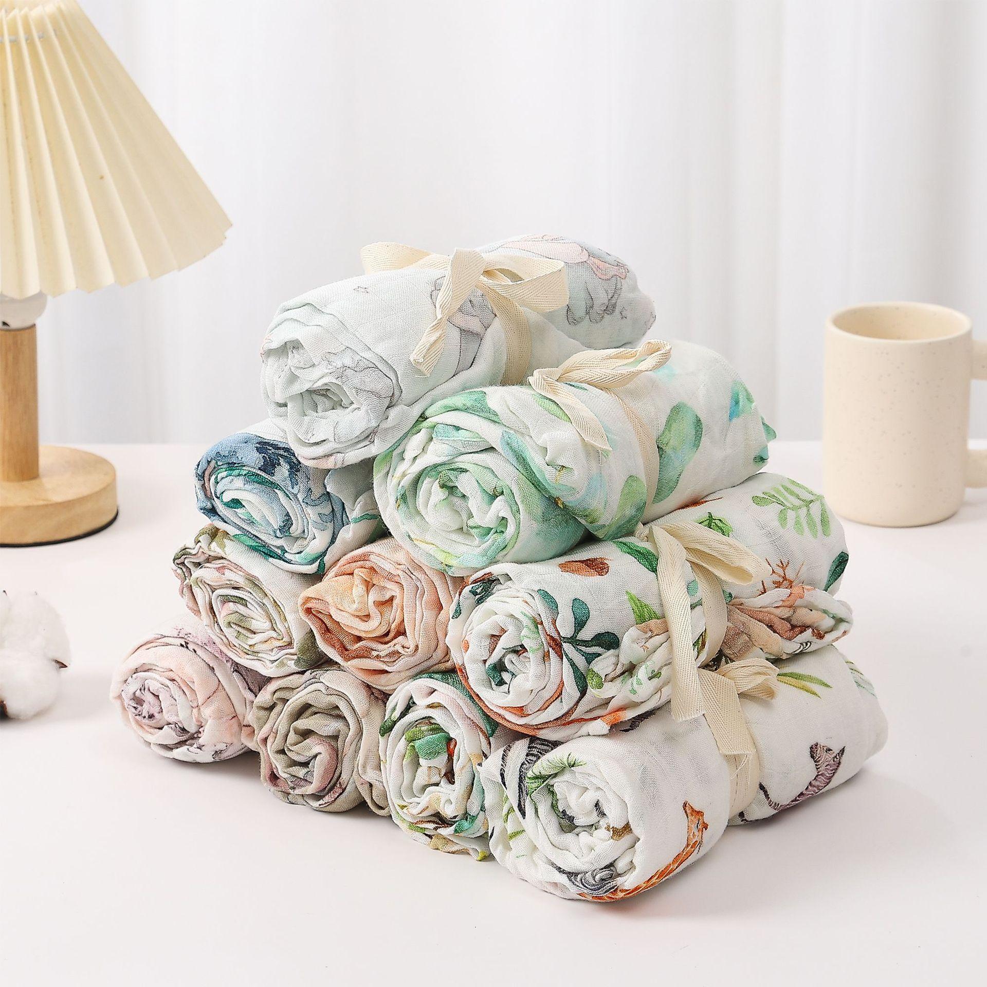 Bolsa de gasa estampada con dibujos animados para bebé recién nacido, toalla para envolver, toalla de baño de algodón de bambú para niños, envoltura para bebé, productos de comercio exterior