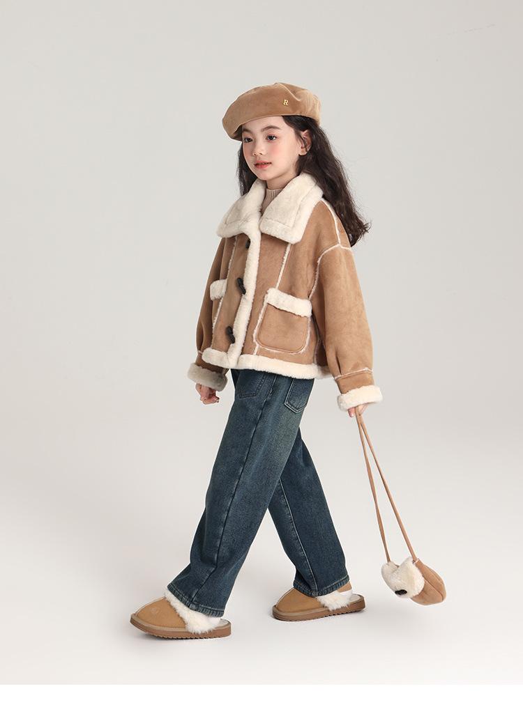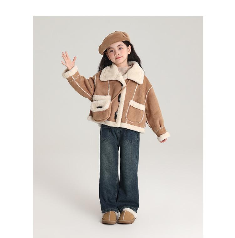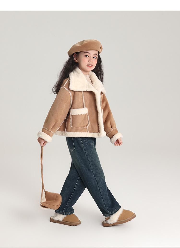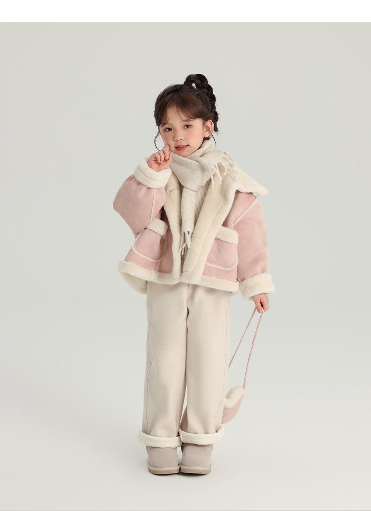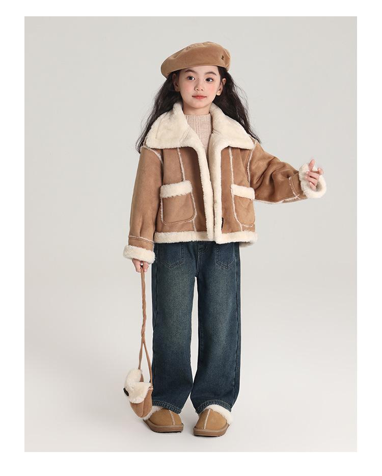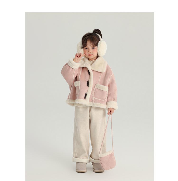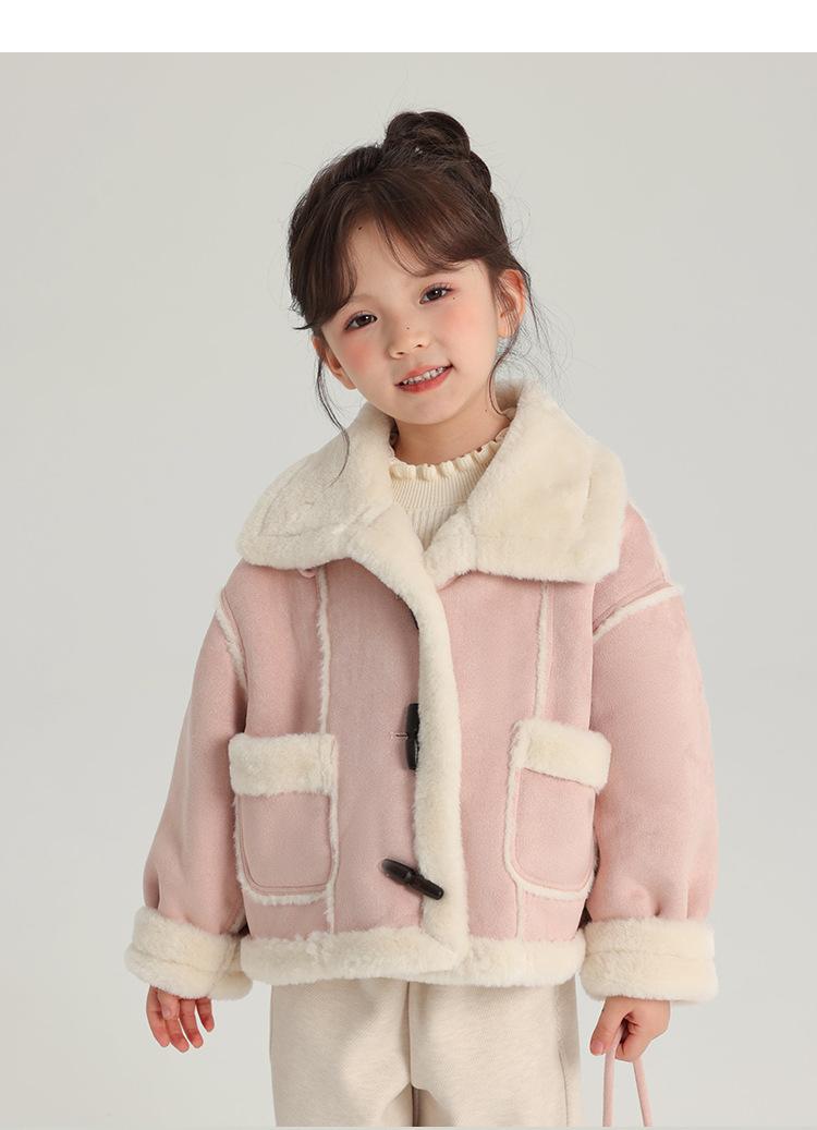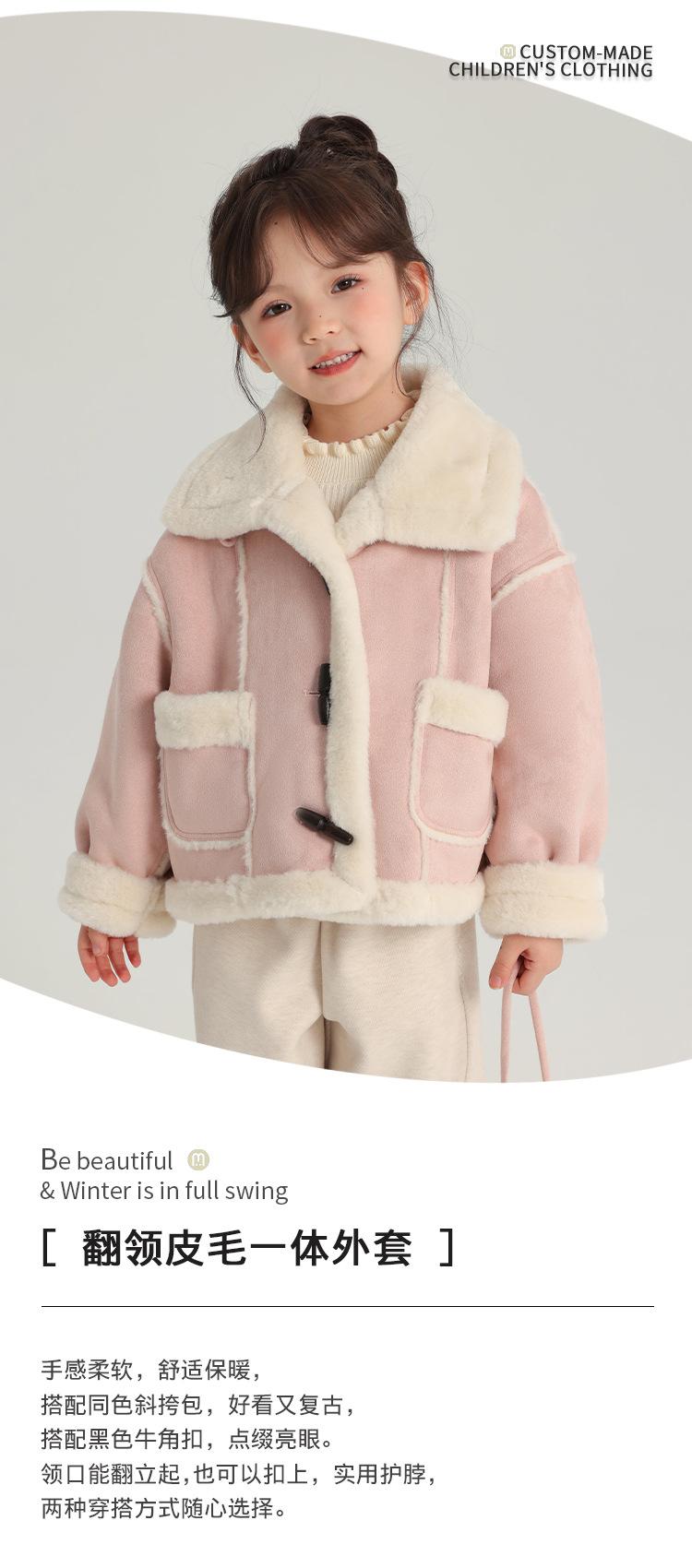 Abrigo corto para niña Momo, invierno 2024, nuevo abrigo de piel con solapa de estilo coreano para niños.