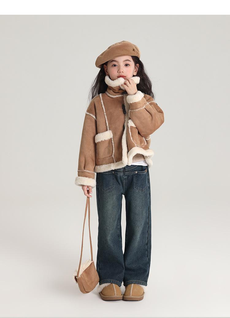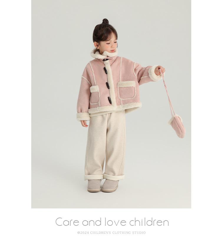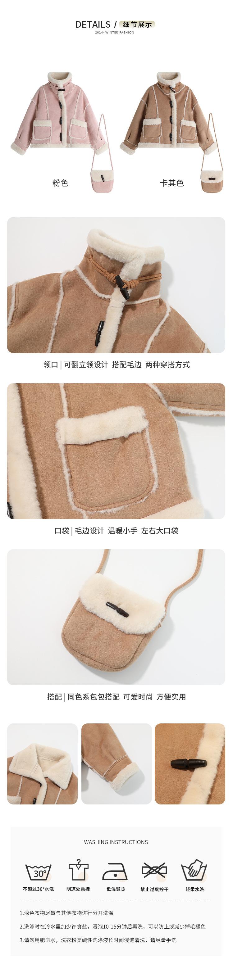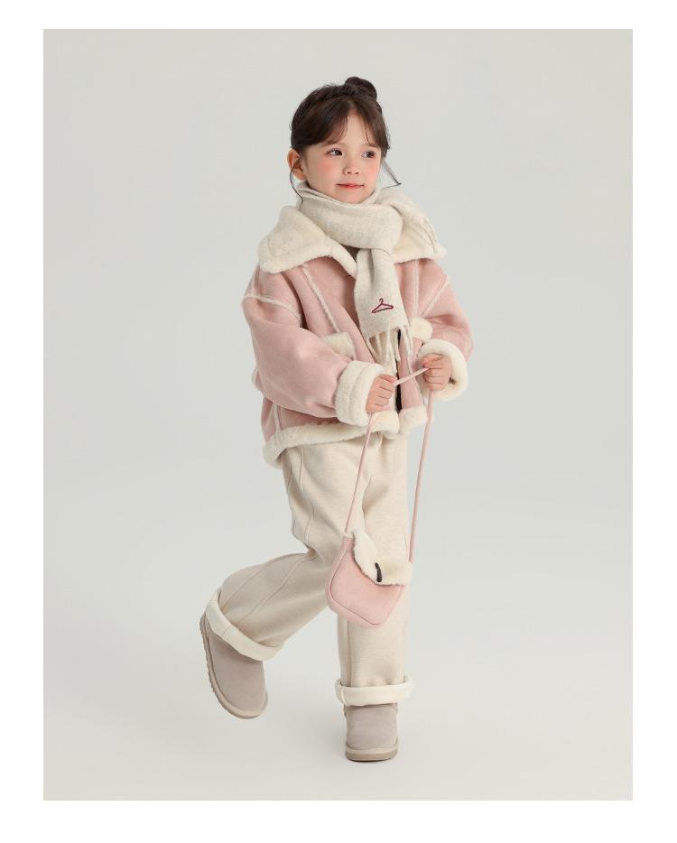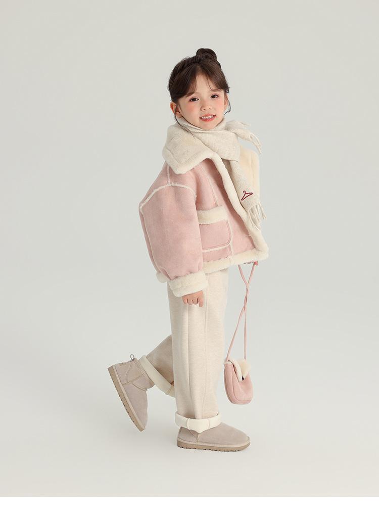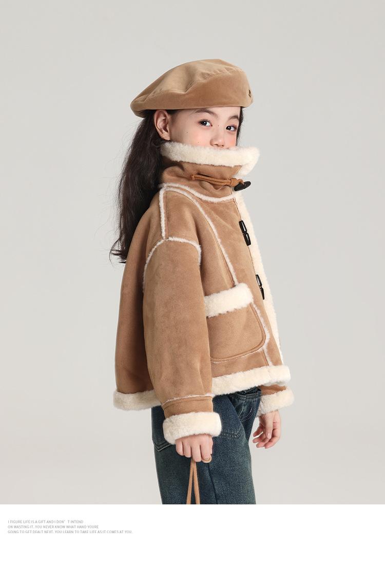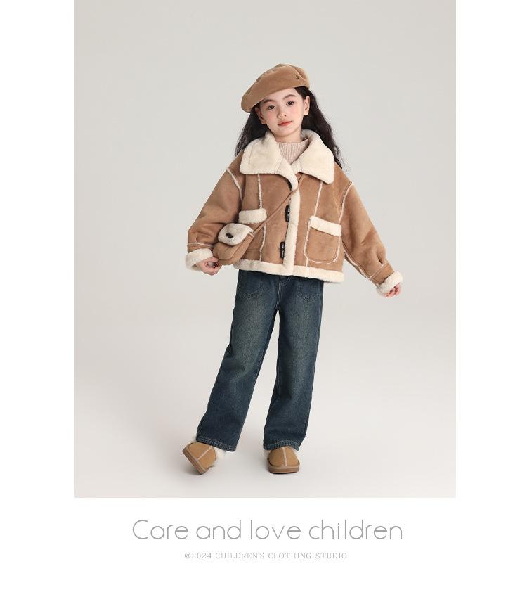 Abrigo corto para niña Momo, invierno 2024, nuevo abrigo de piel con solapa de estilo coreano para niños.