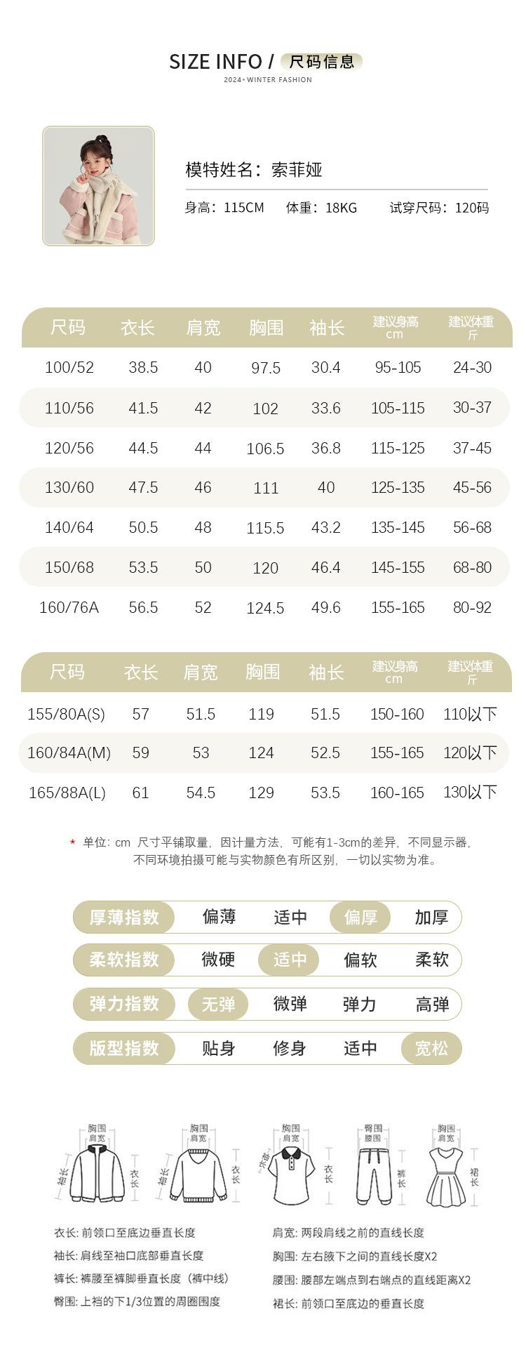 Size 100 is about 100cm tall, Size 110 is about 110cm tall, Size 120 is about 120cm tall, Size 130 is about 13...