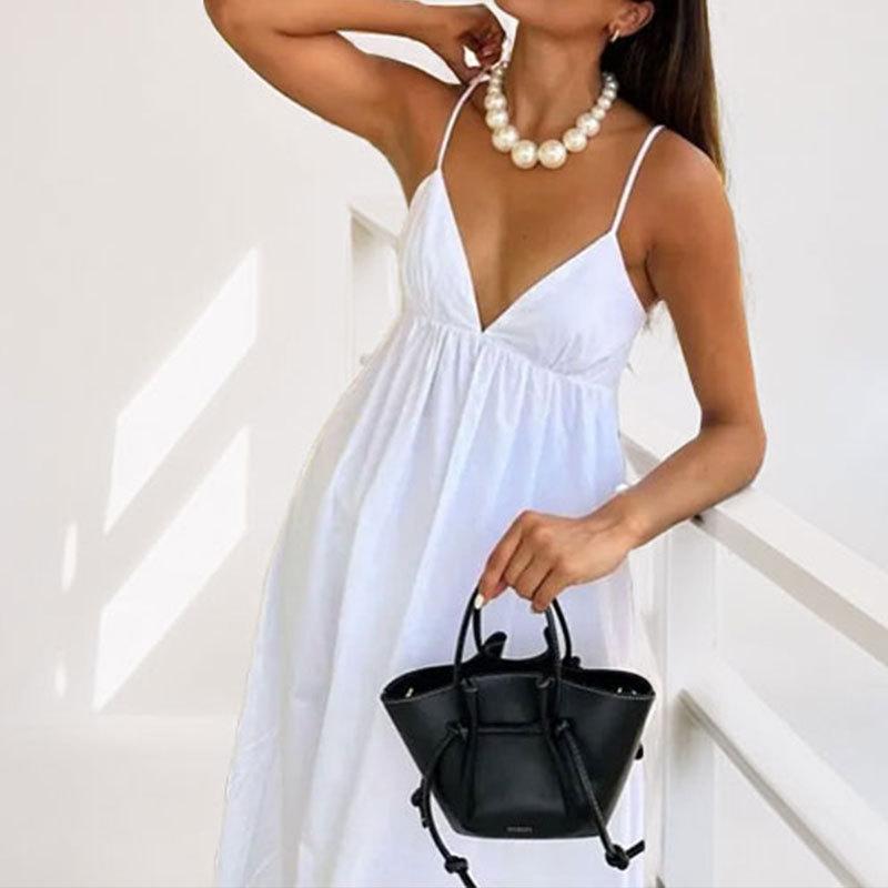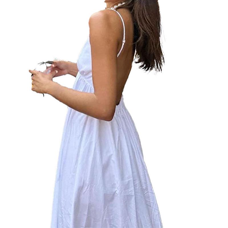 Europeo y Americano 2025 Primavera Nuevo Estilo para Mujer Sexy Cuello en V Sin Espalda Vestido de Tirantes de Dobladillo Grande Vestido Tubo Top