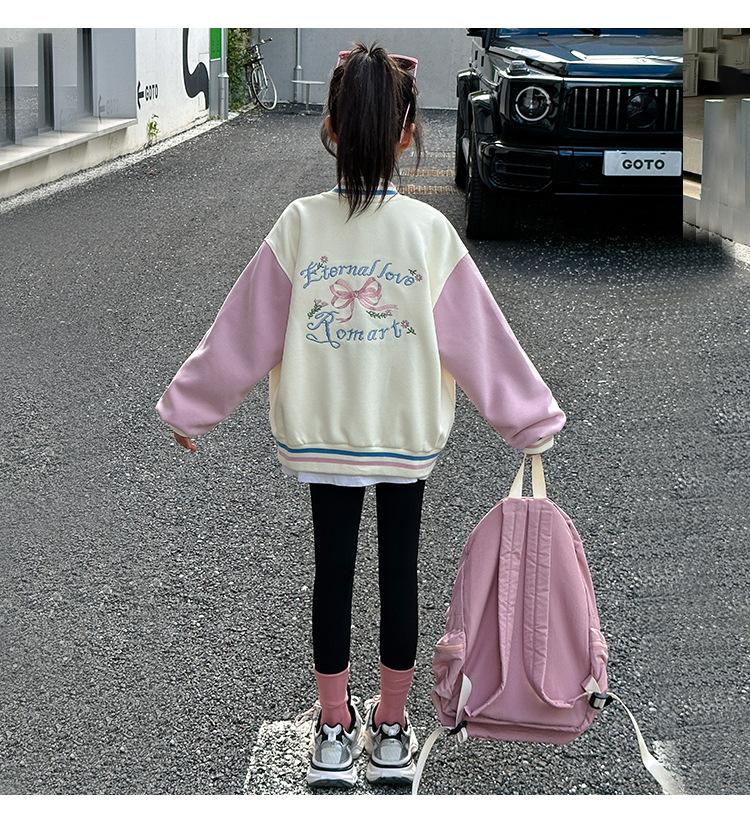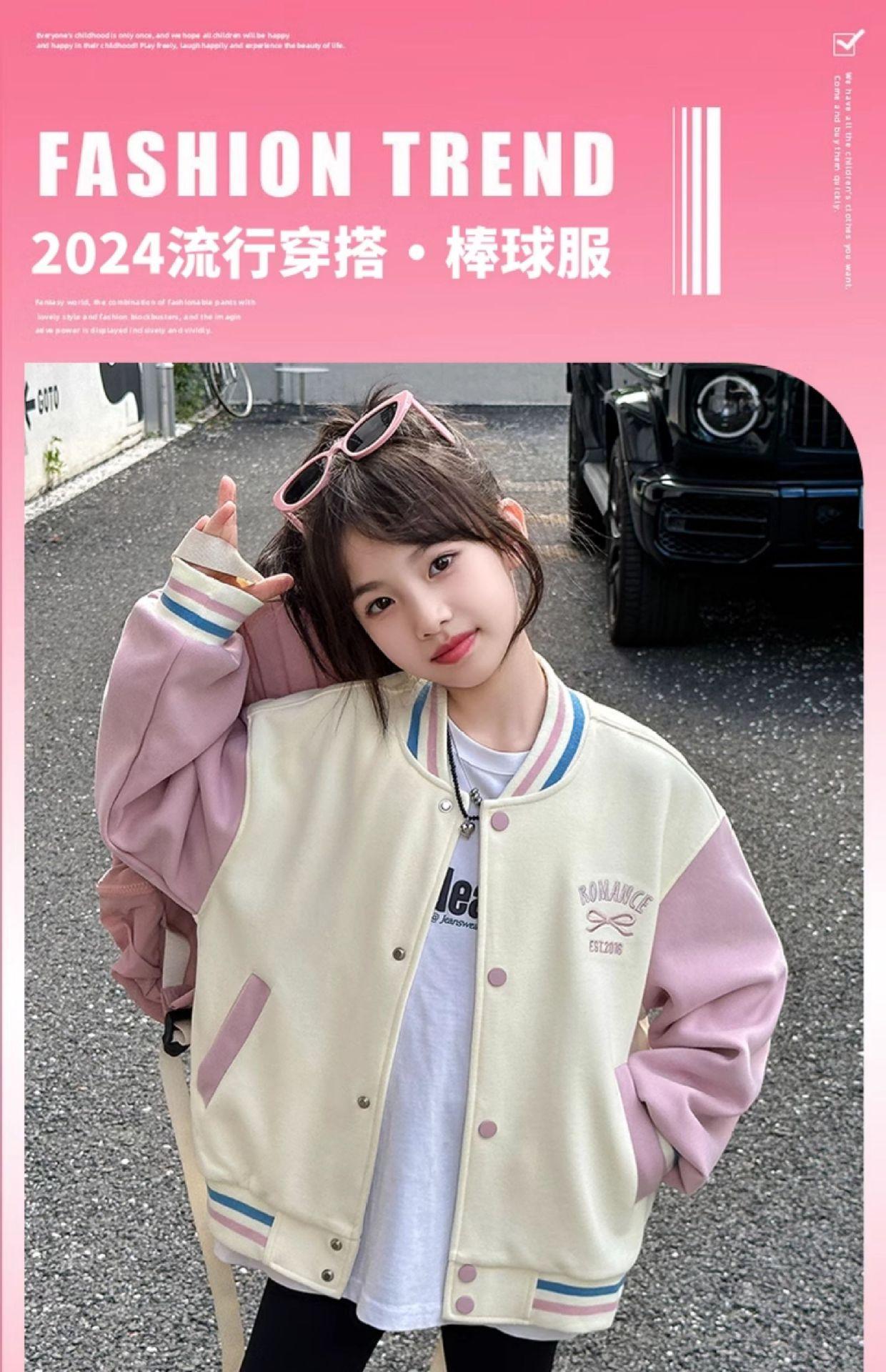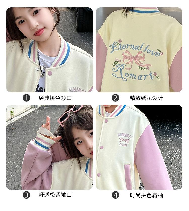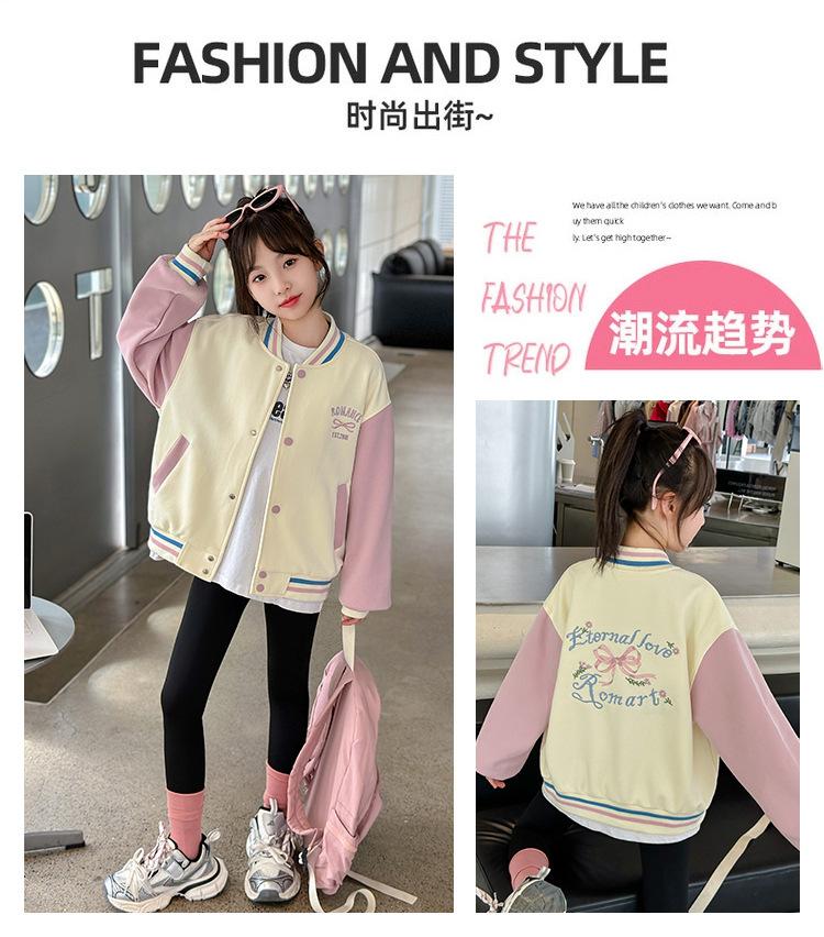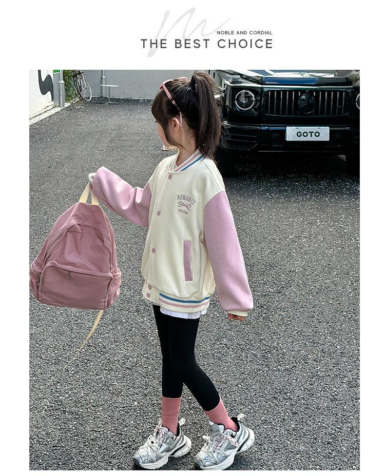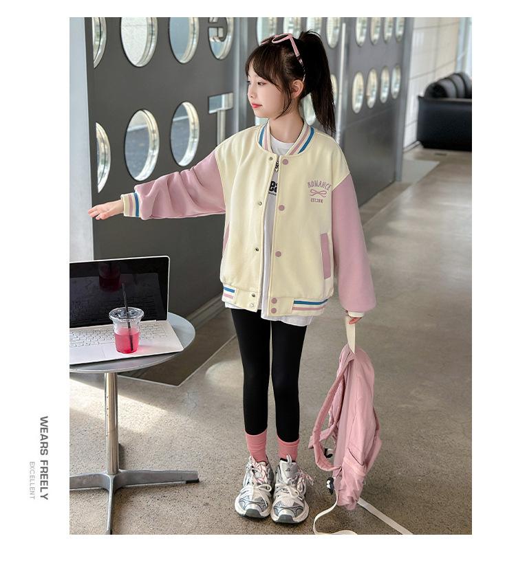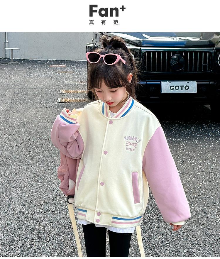 Abrigo para niñas Otoño e Invierno 2024 Nuevo estilo occidental Ropa infantil Traje de béisbol de otoño para niñas Chaqueta superior con forro polar para niñas