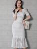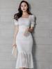 Compra Conjunto de dos piezas para mujer, elegante conjunto de verano 2022 de estilo socialité, ajustado, con encaje y parte superior de cola de pez a la cadera al por mayor en Joom.pro