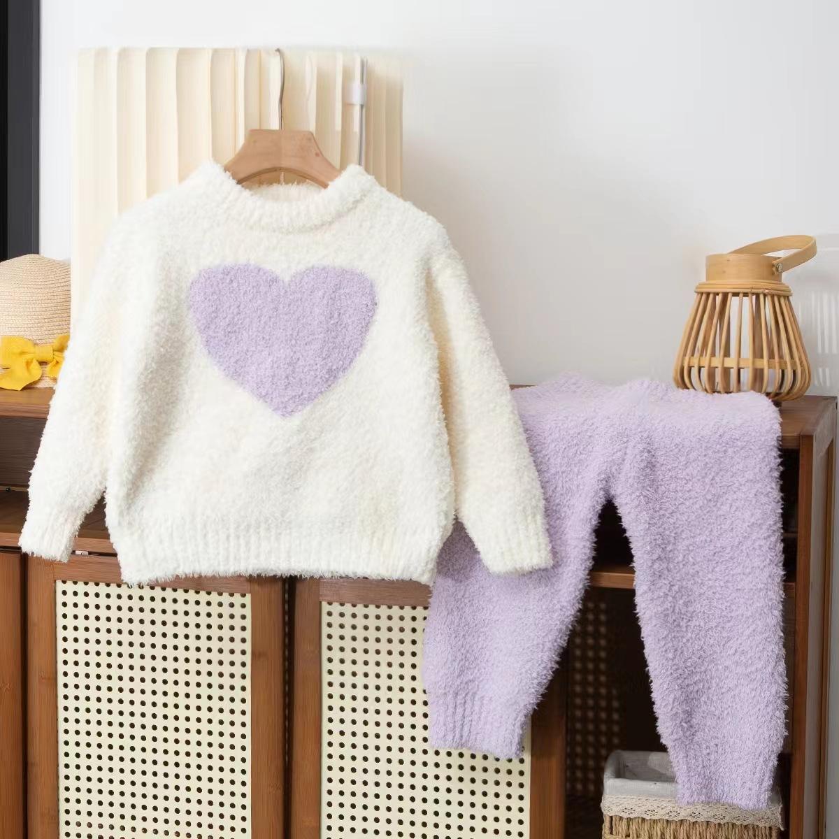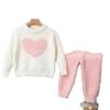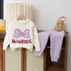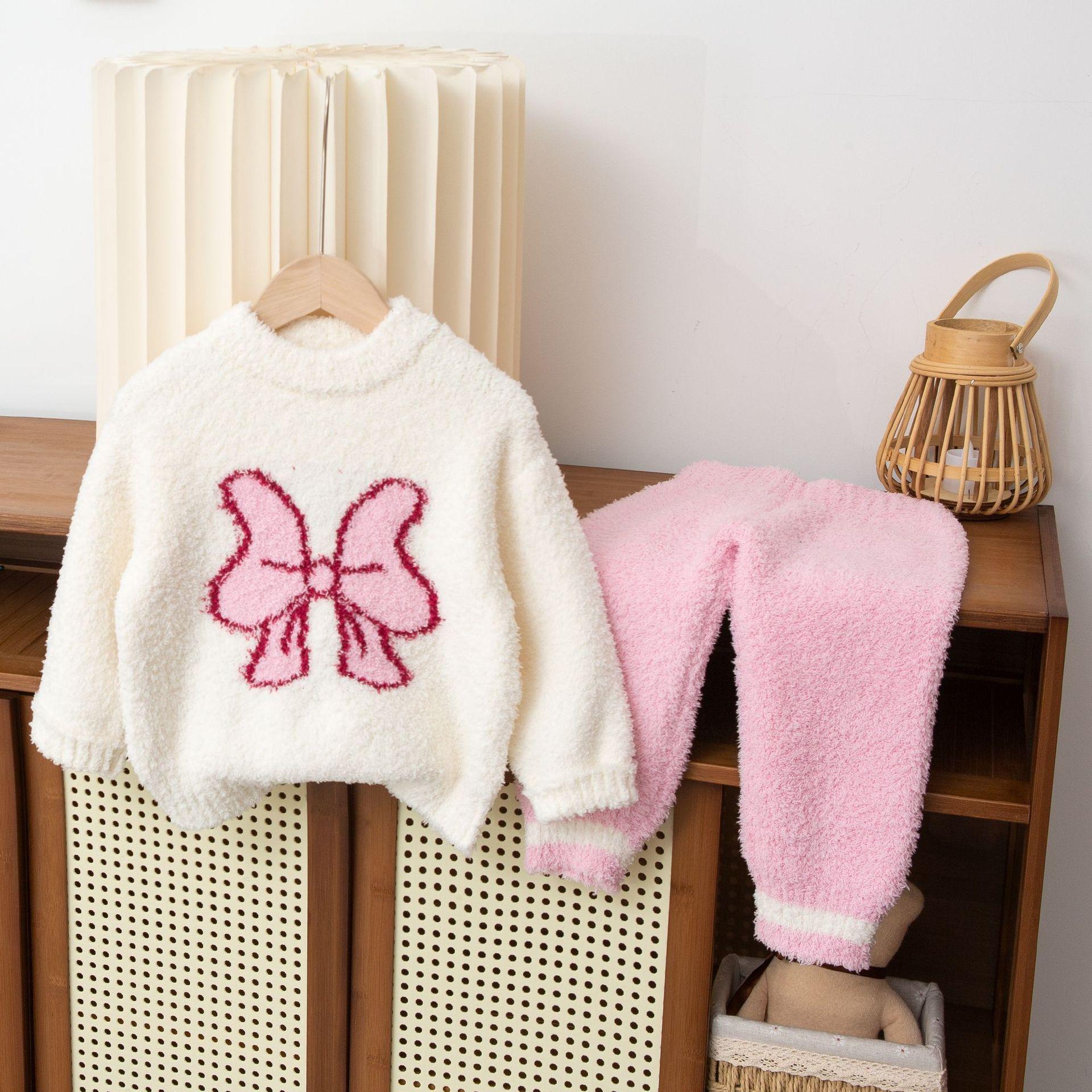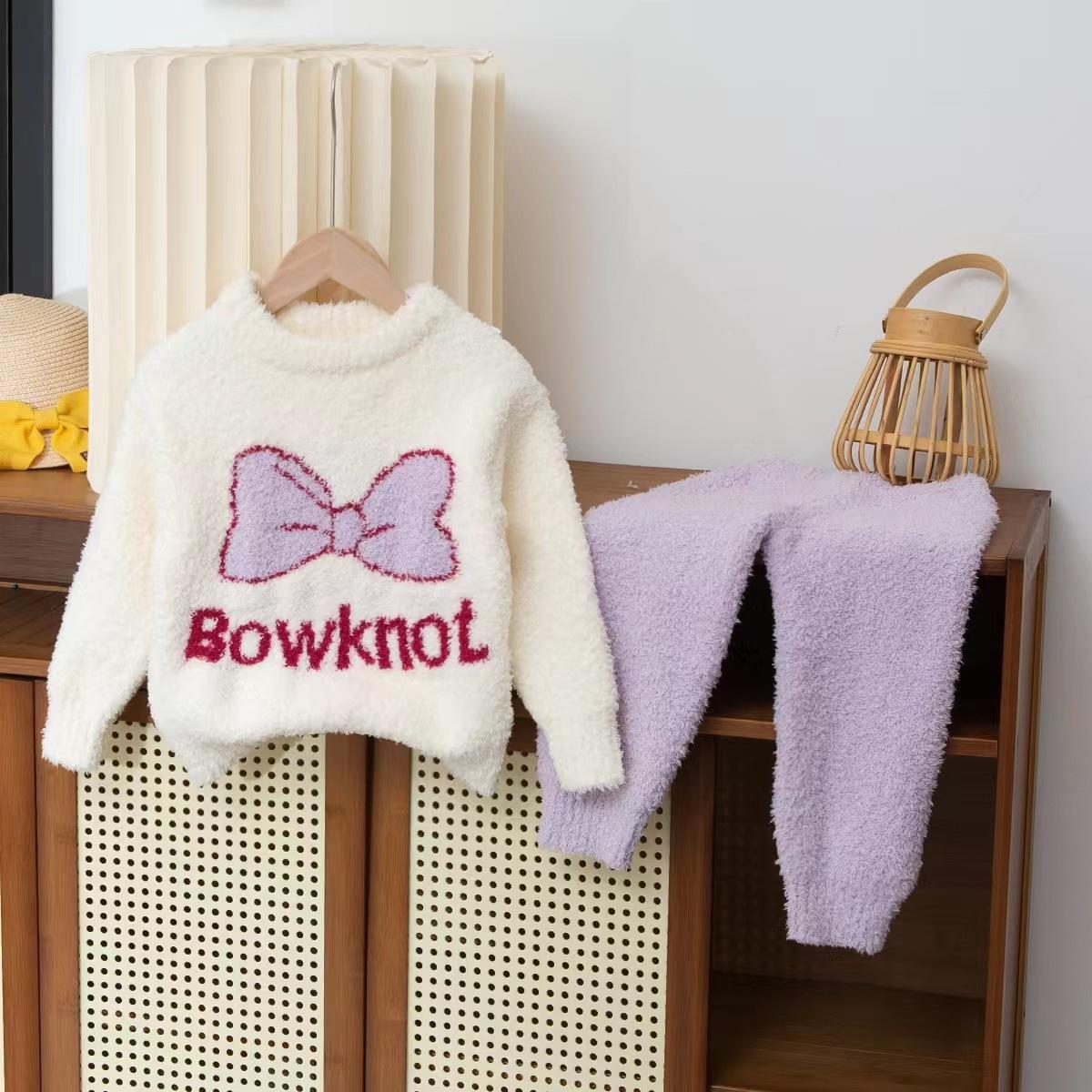 Ropa de hogar para niños, pijamas de invierno y otoño con lazo para niños, pijamas de terciopelo medio suave para niños para mantener el calor