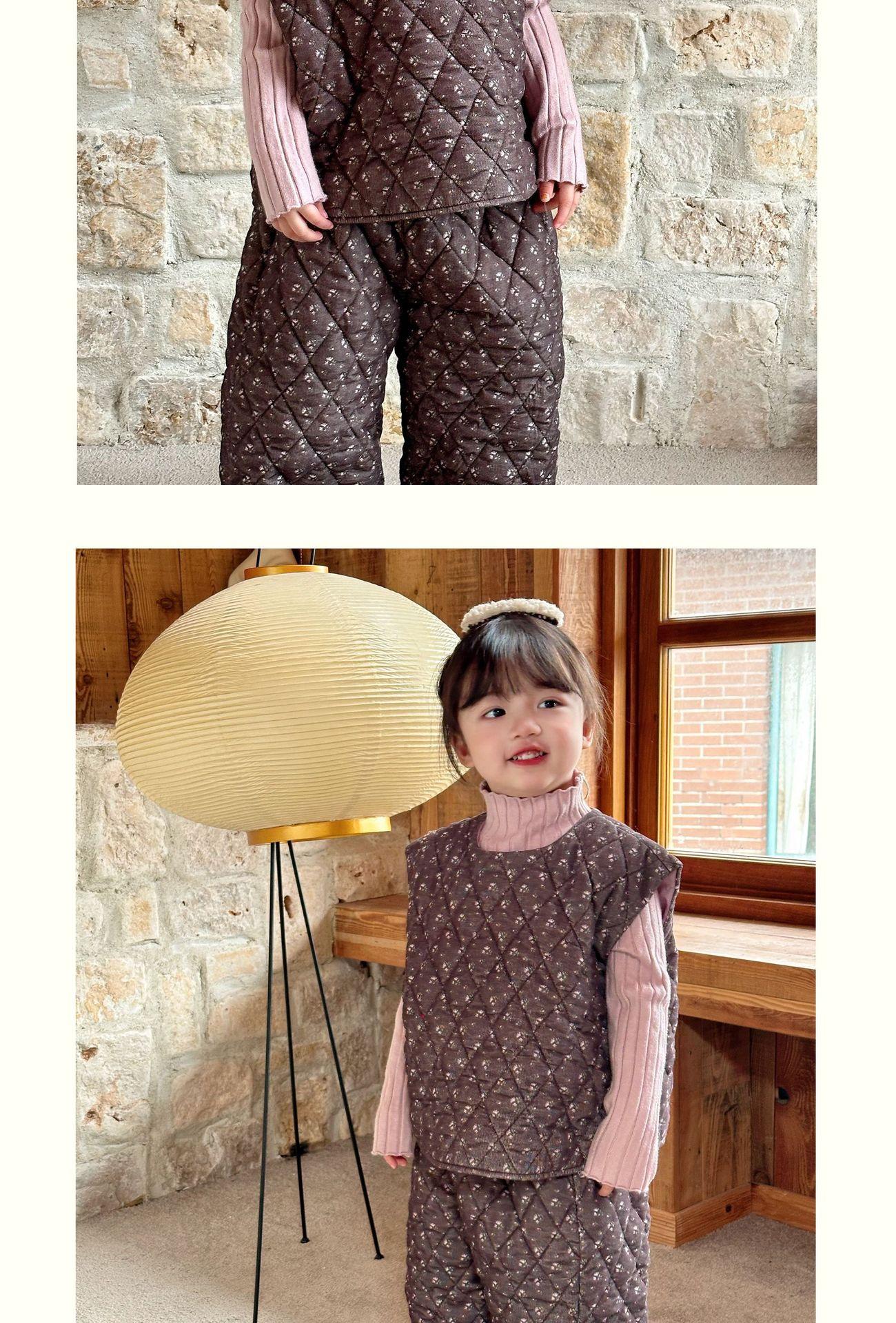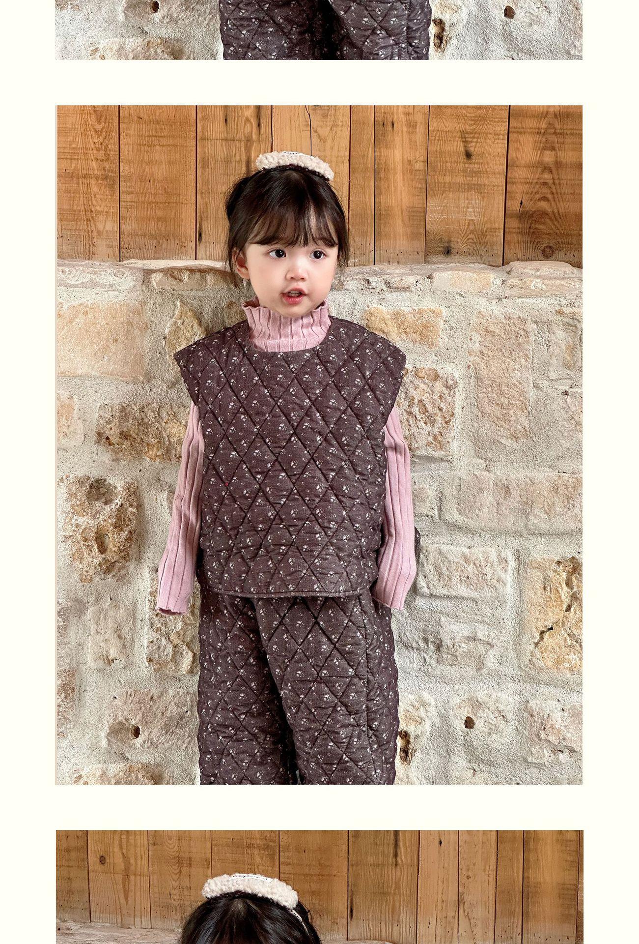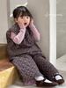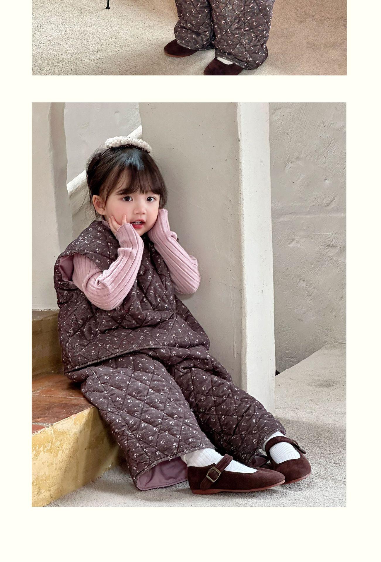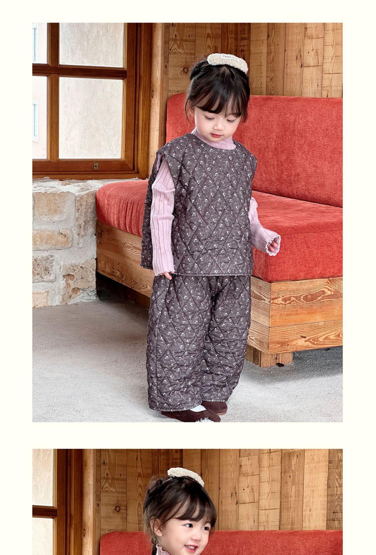 Conjunto de chaqueta acolchada de algodón para niñas 2024 invierno niños nuevo chaleco vintage floral chaleco suelto recto cálido pantalones de algodón