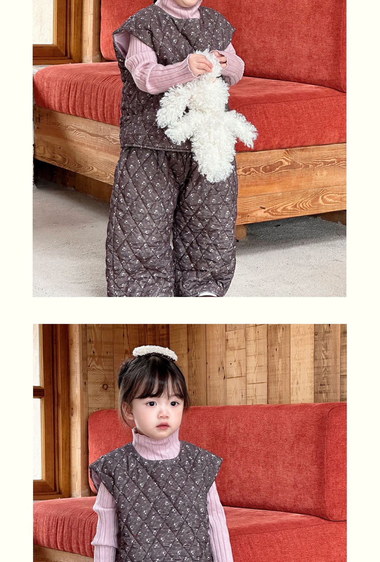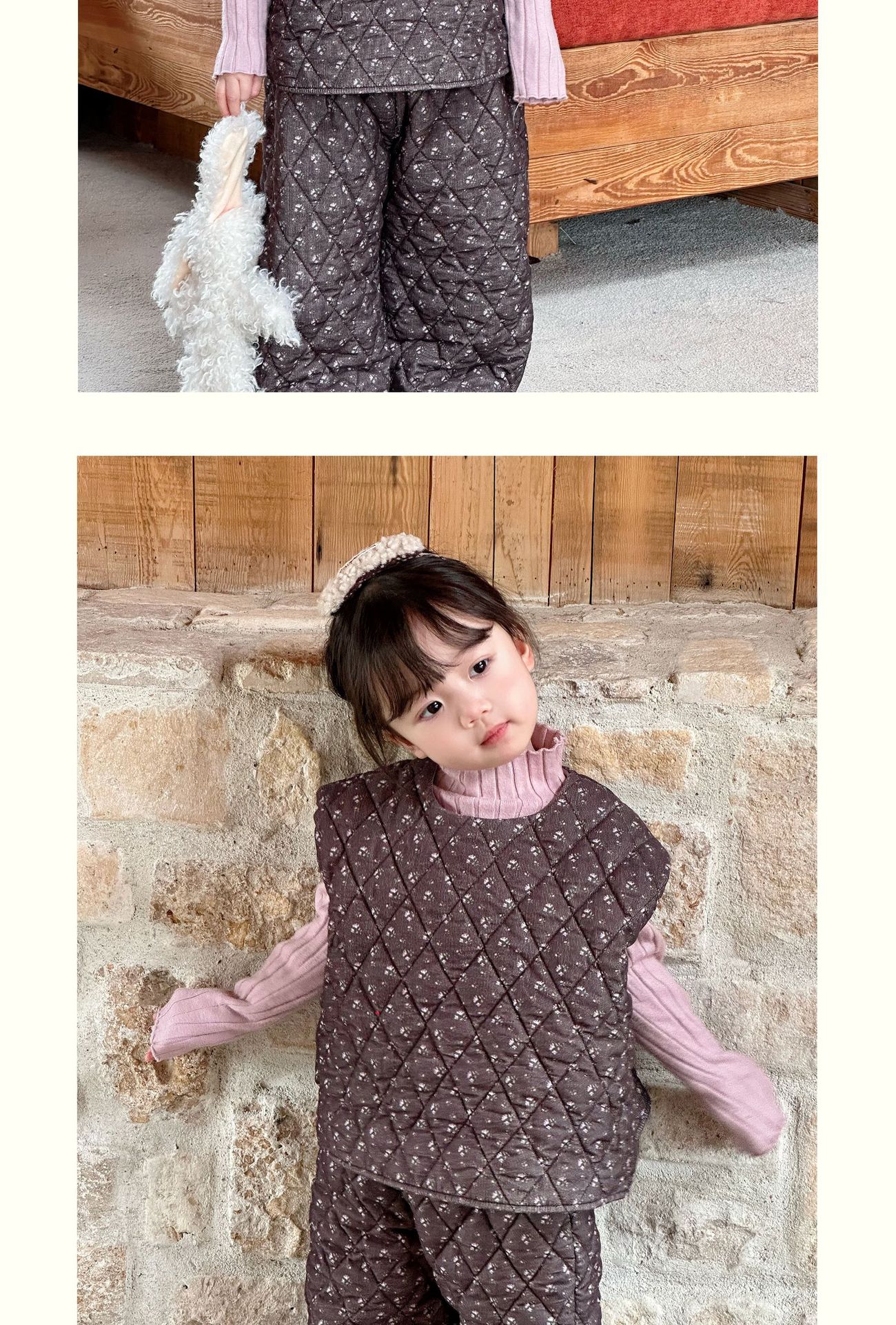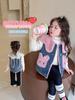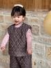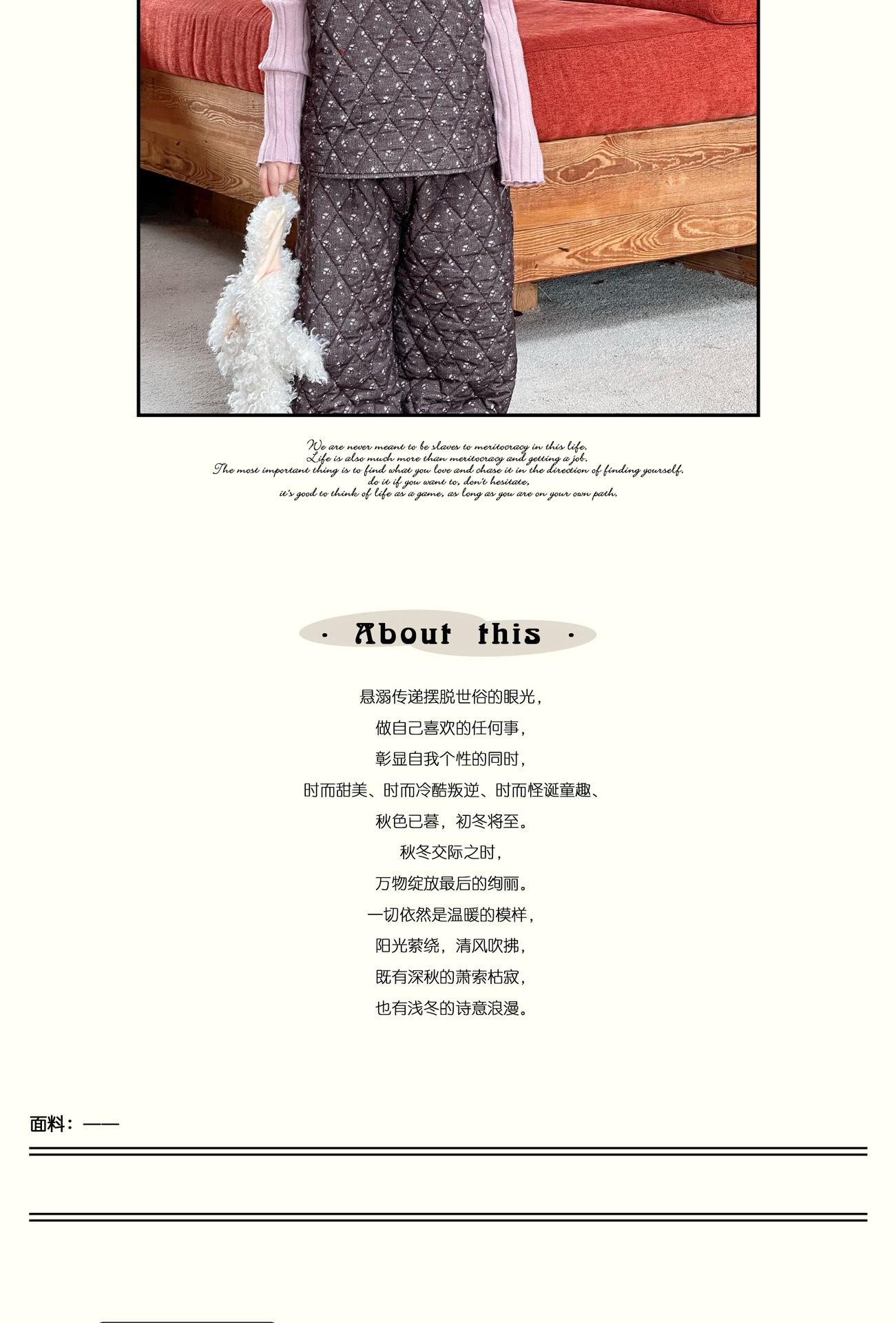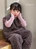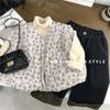 Conjunto de chaqueta acolchada de algodón para niñas 2024 invierno niños nuevo chaleco vintage floral chaleco suelto recto cálido pantalones de algodón