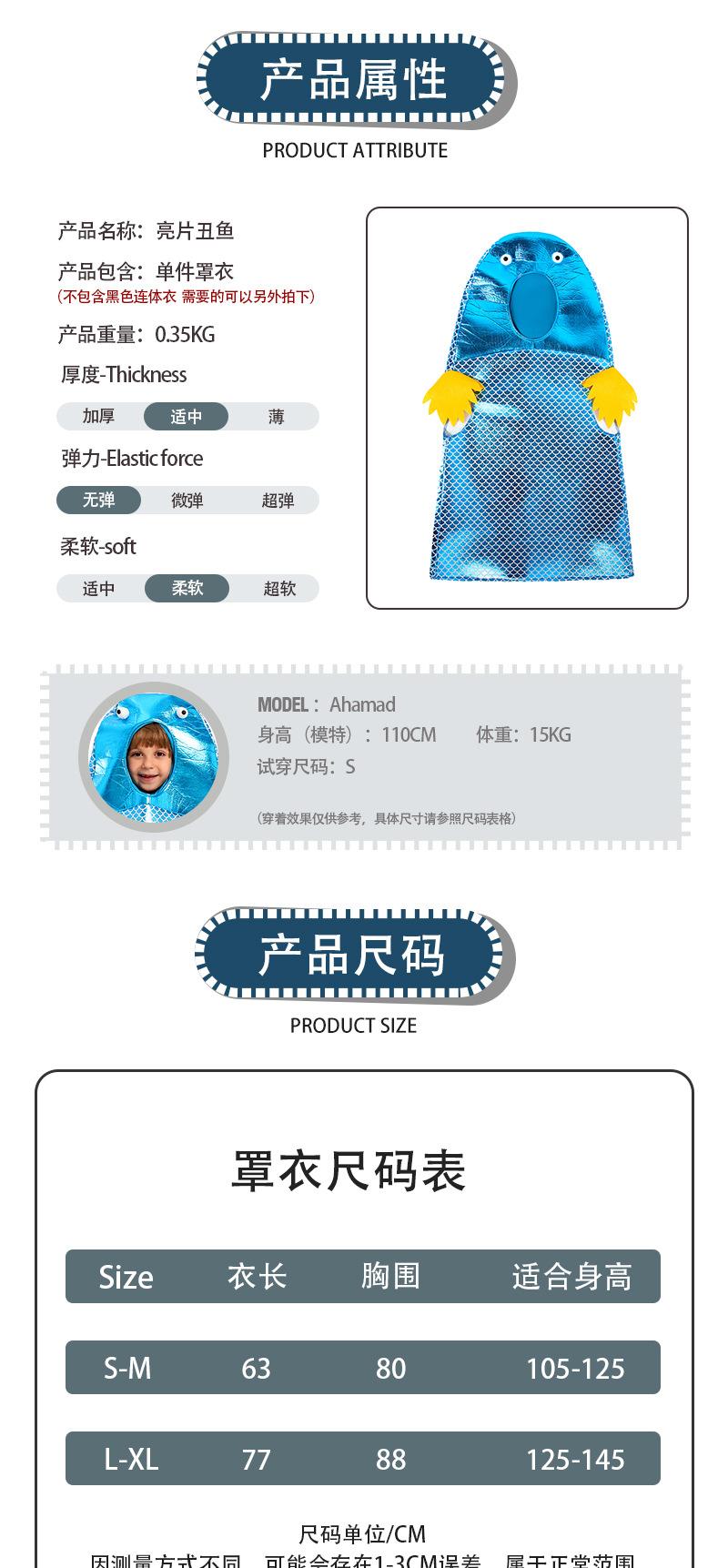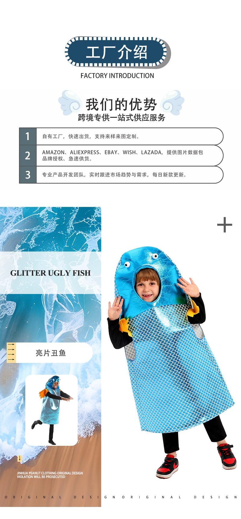 Nuevo halloween niños bata lentejuelas pez feo animal juego cos disfraz fiesta escolar espectáculo traje de actuación