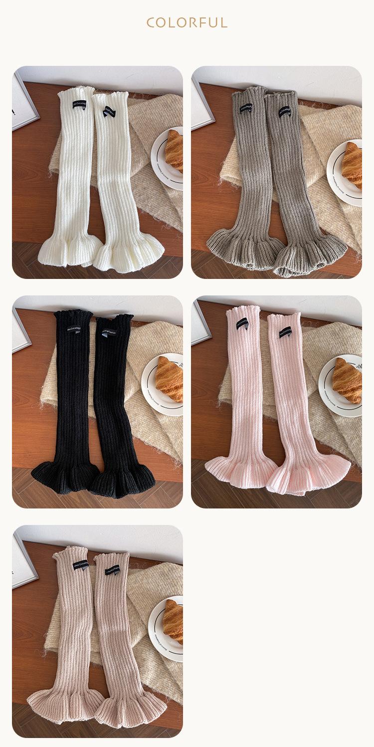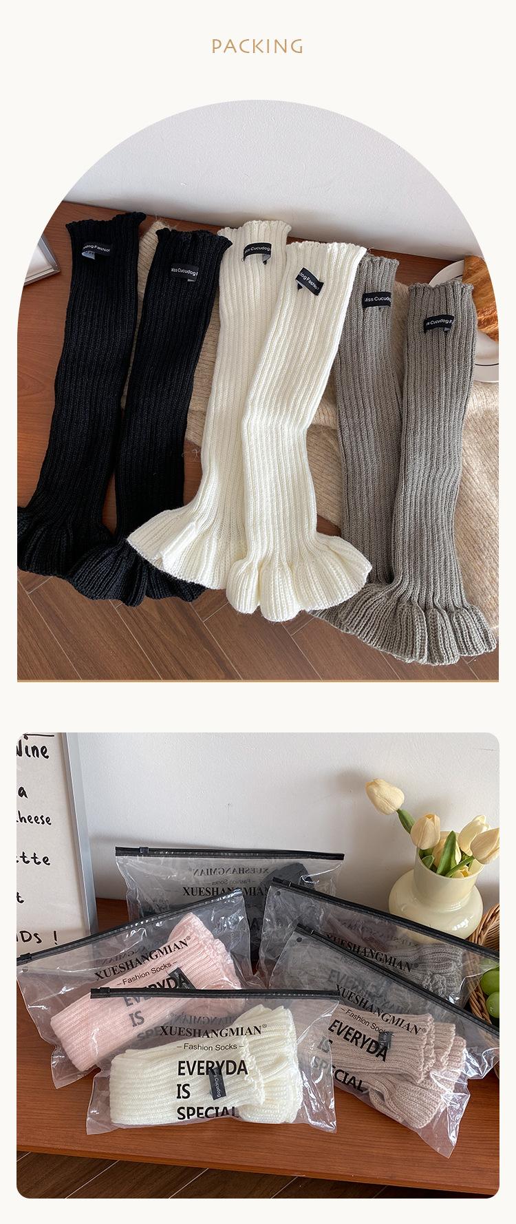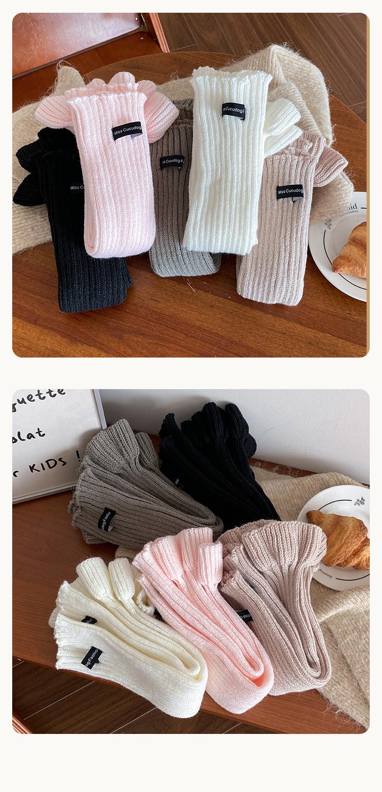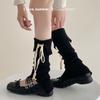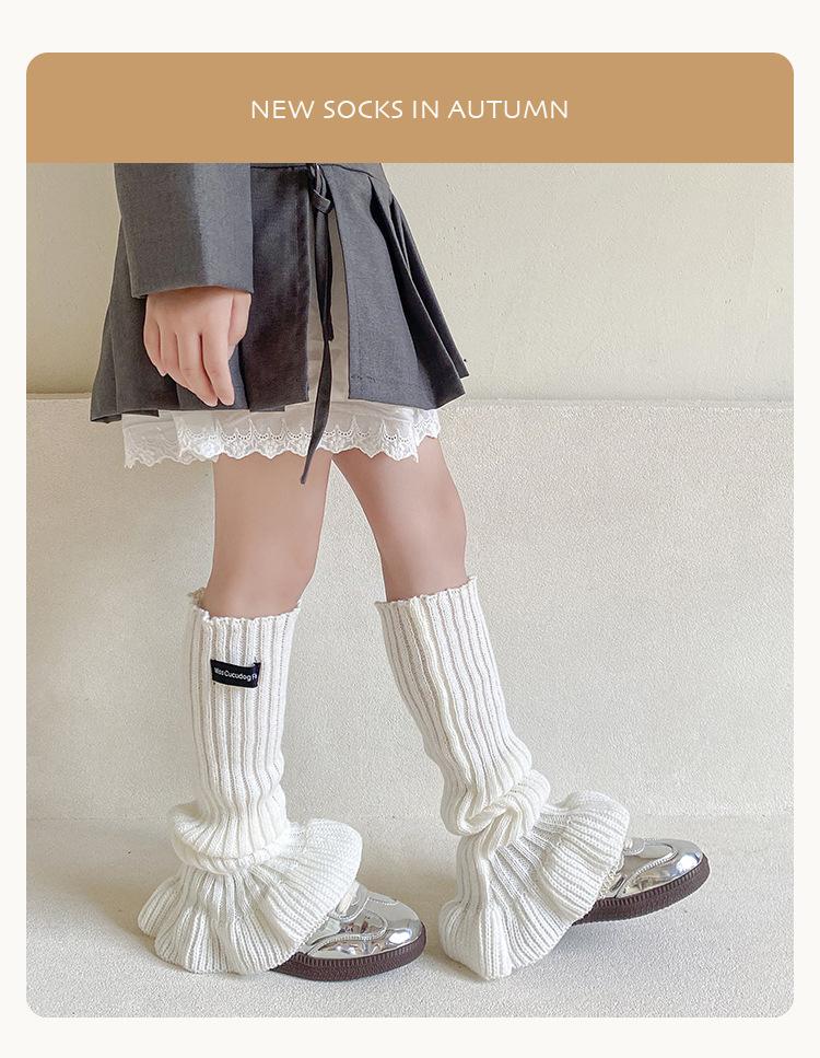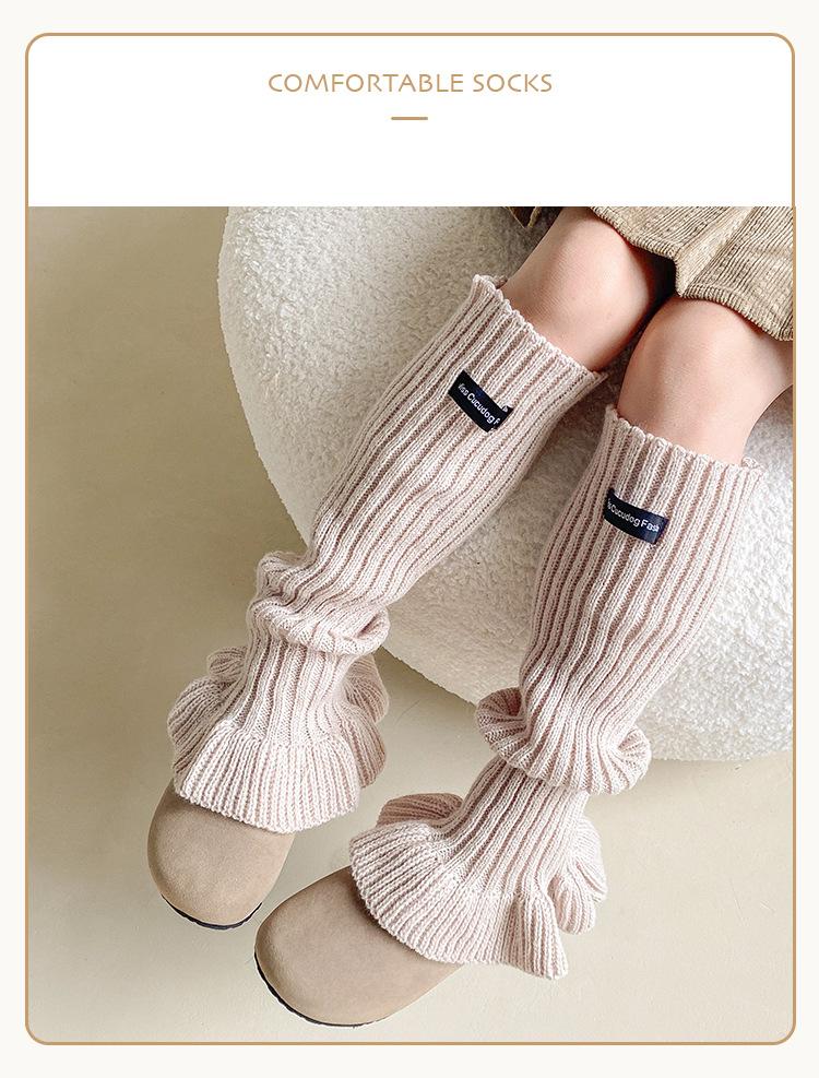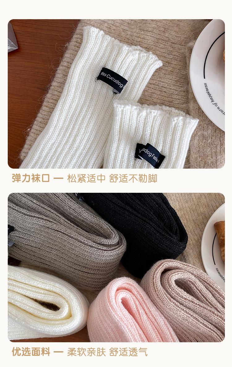 Calcetines de niña Ballet Wind Otoño e Invierno Calcetines largos apilados de barril Etiqueta de tela de punto Color sólido Cuerno Lolita Cubierta cálida de invierno