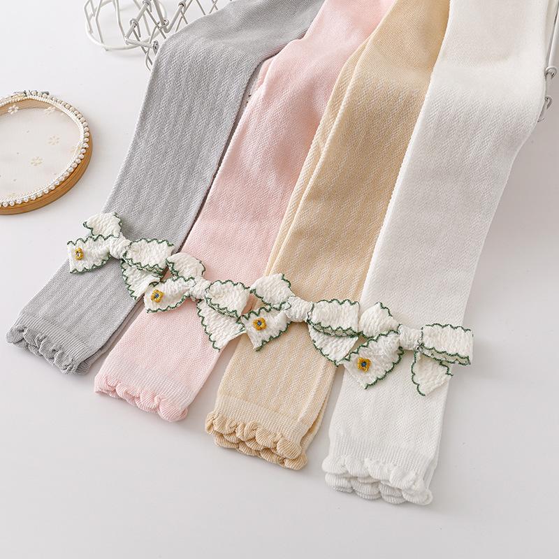 Leggings Nuevos de Primavera y Verano para Bebé Niña, Leggings Finos para Niños, Pantalones Capri, Pantalones de Malla, Verano, Florales, Onda, Nudo