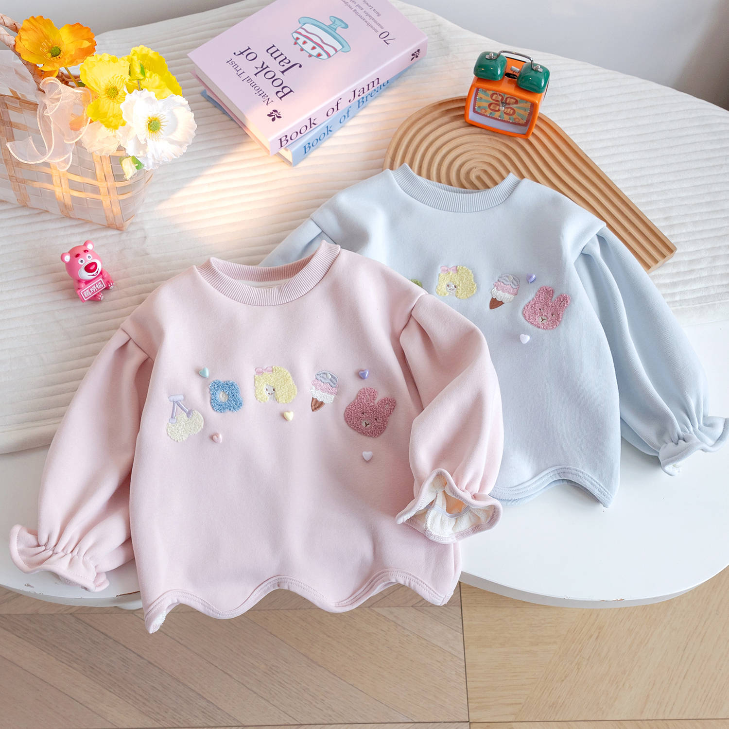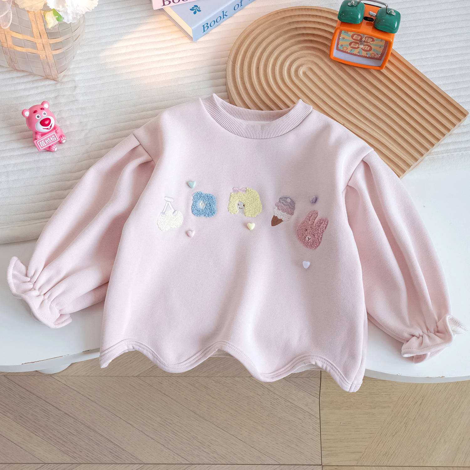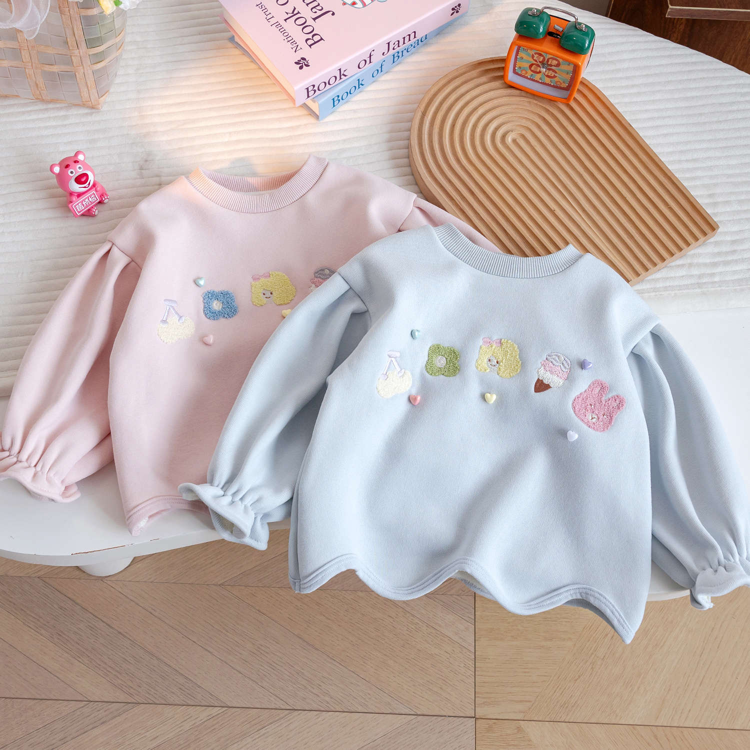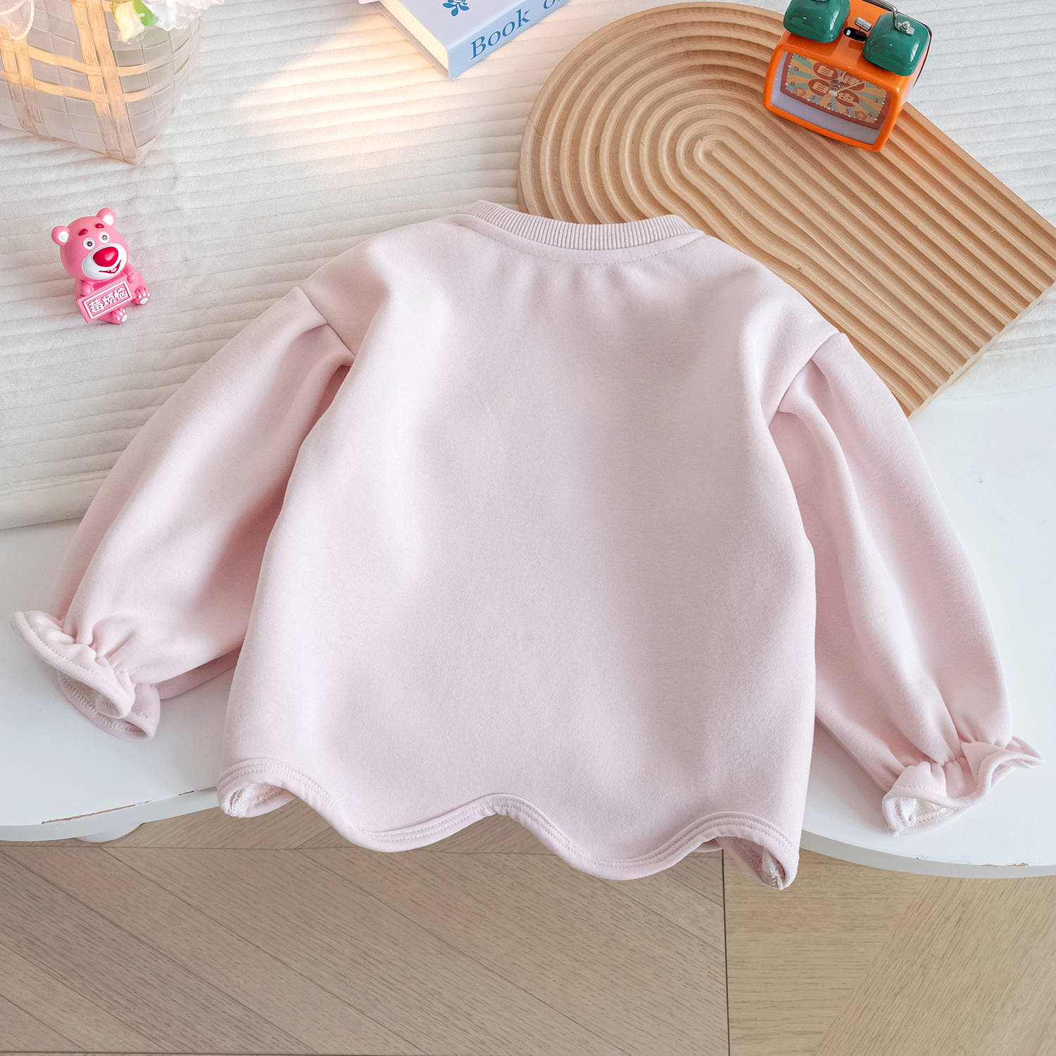 Sudadera Elegante para Niña Estilo Coreano Bordada de Dibujos Animados Linda con Estilo 24 Nueva Manga Abullonada con Forro Polar Top T Combinable