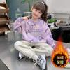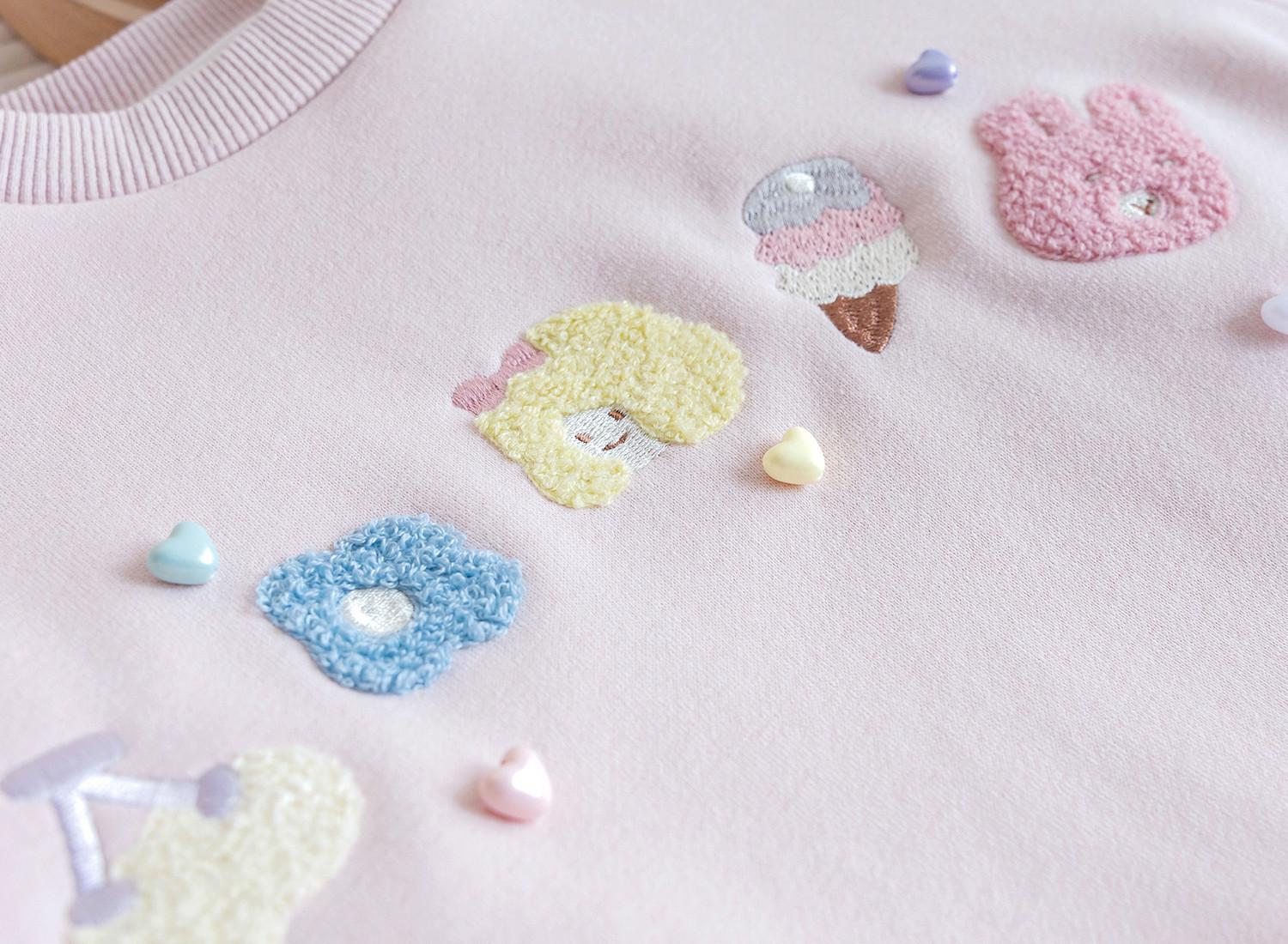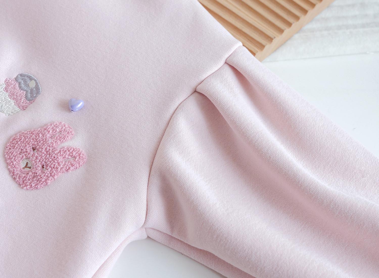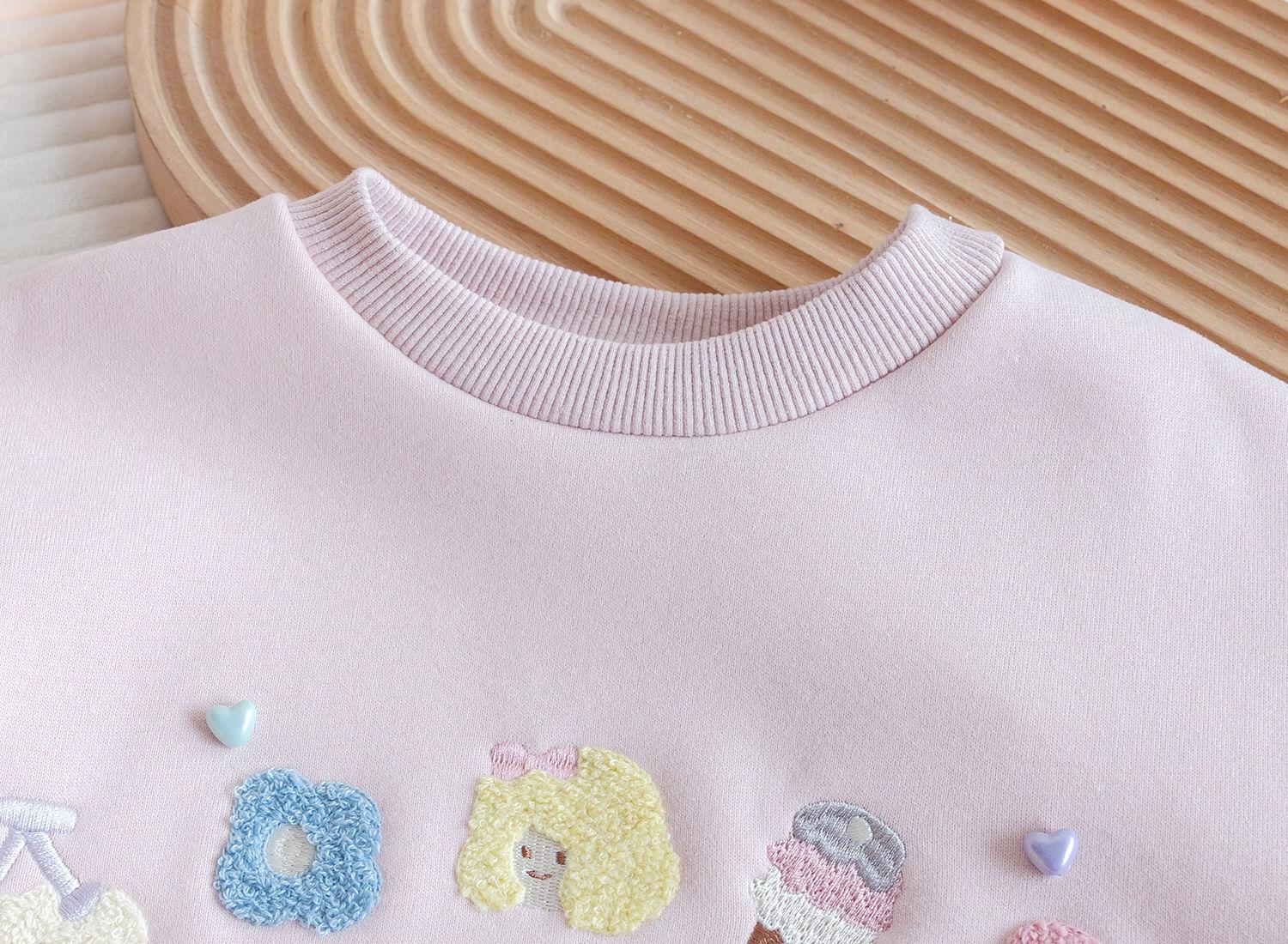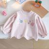Sudadera Elegante para Niña Estilo Coreano Bordada de Dibujos Animados Linda con Estilo 24 Nueva Manga Abullonada con Forro Polar Top T Combinable