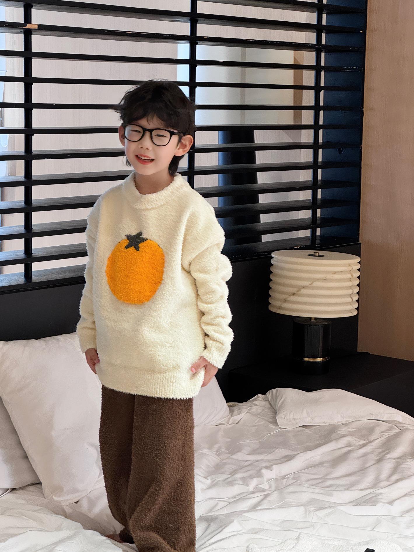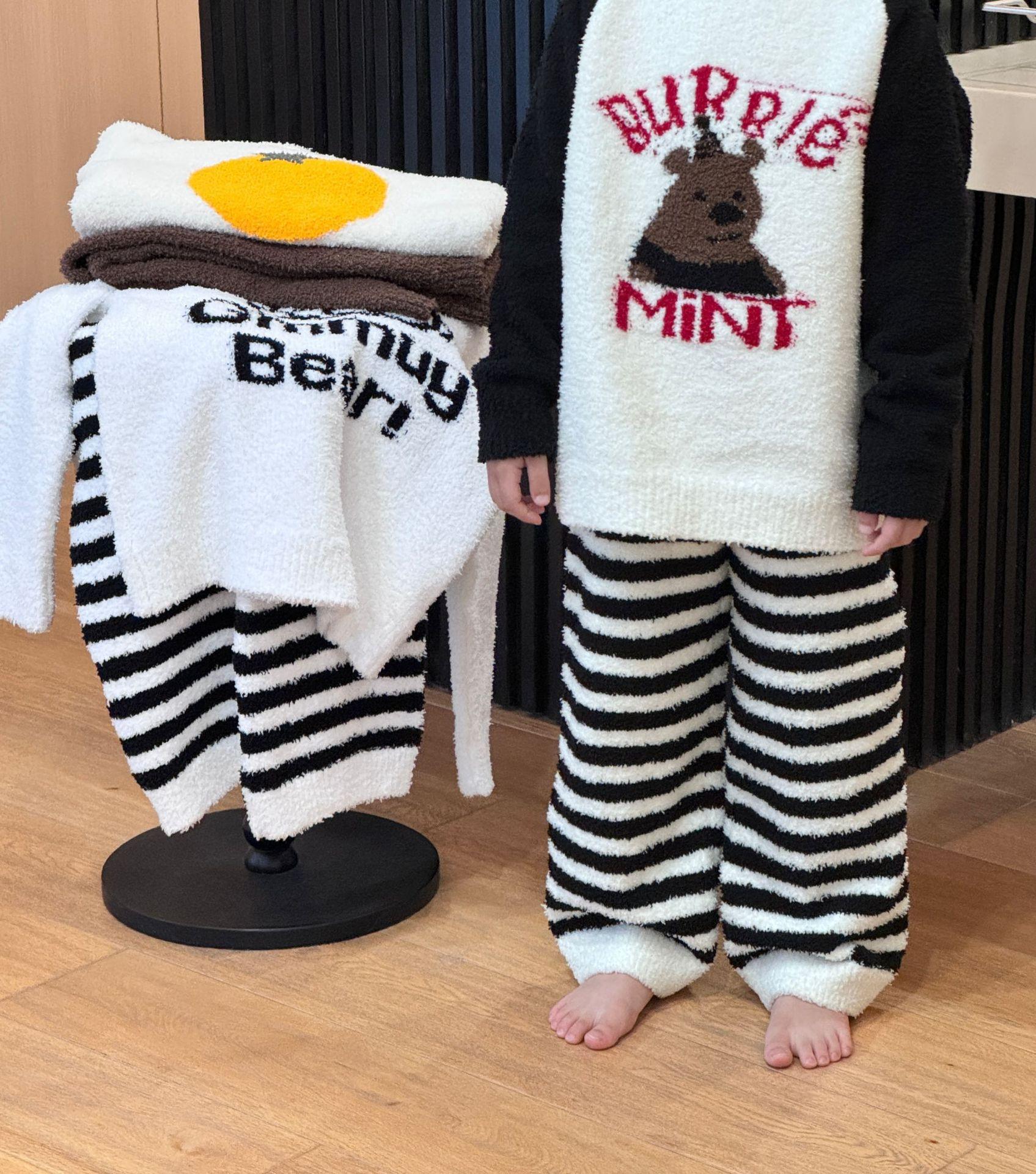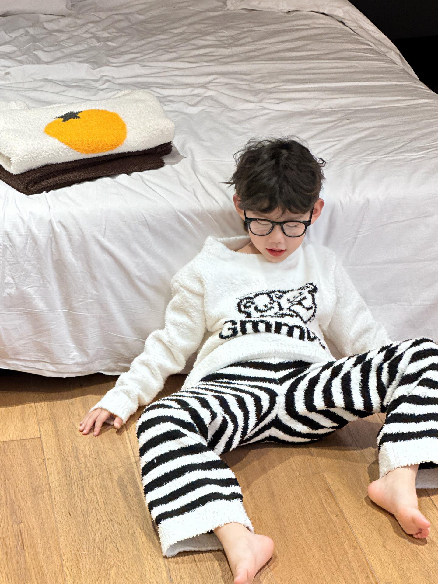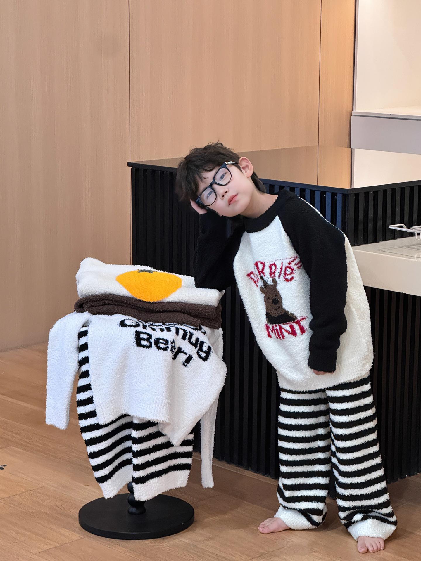 Tiru 2024 Invierno Nuevo Estilo Coreano Niños Espesado Cálido Dibujos Animados Terciopelo de Media Cara Traje Ropa de Casa Moda Infantil