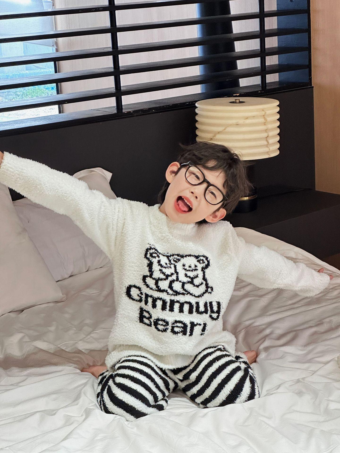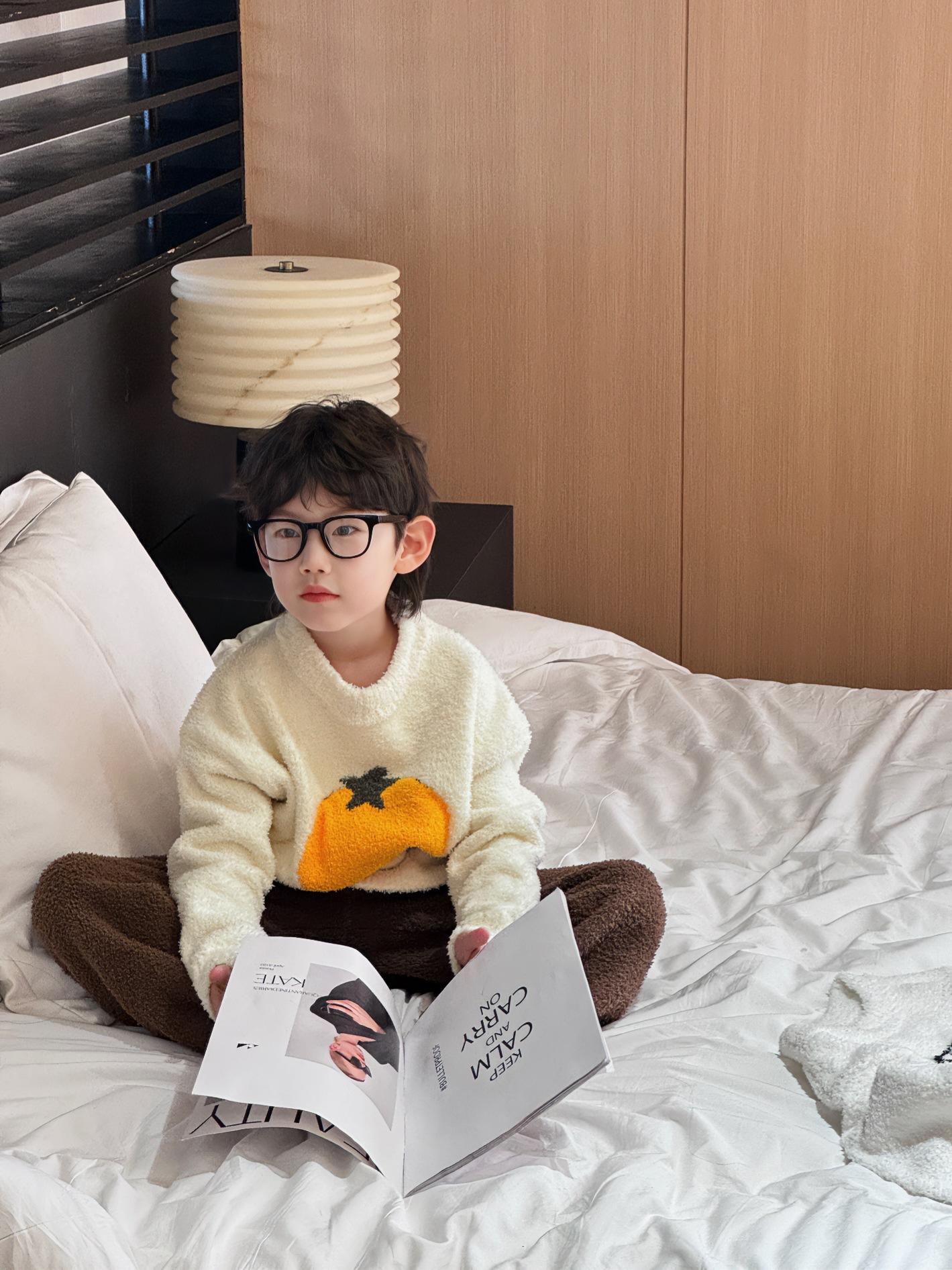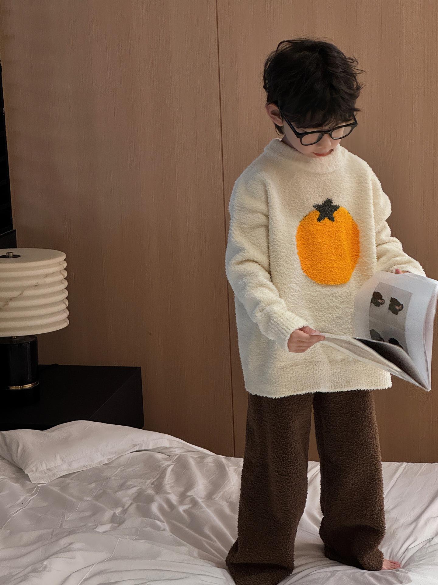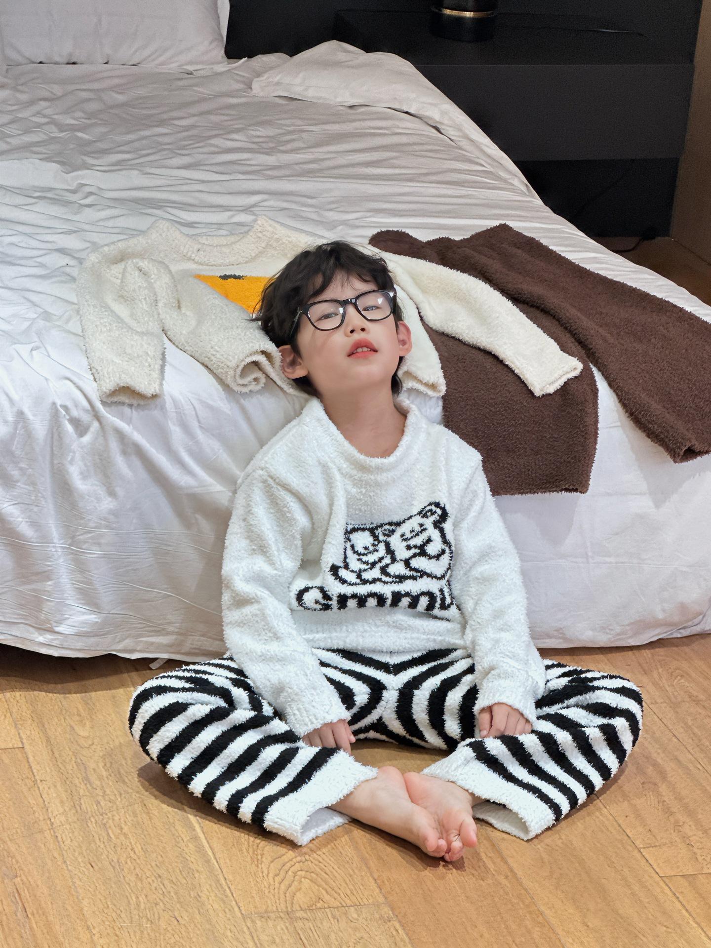 Tiru 2024 Invierno Nuevo Estilo Coreano Niños Espesado Cálido Dibujos Animados Terciopelo de Media Cara Traje Ropa de Casa Moda Infantil