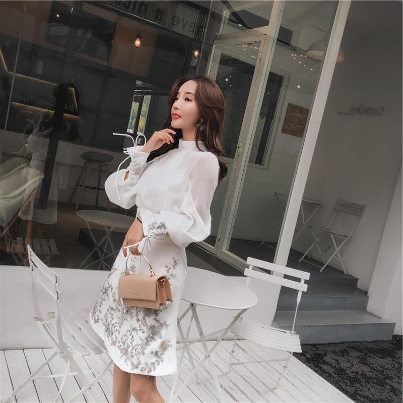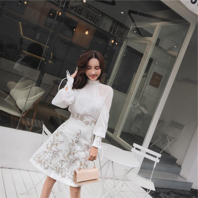 Foto Real del Traje de Moda de Primavera 2025 de Diseño Francés con Bordado Pesado para Mujer, Conjunto de Falda de Dos Piezas Vintage para Mujer 8624