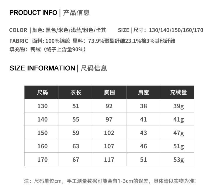 Black (90 white duck down), Beige (90 white duck down), Light blue (90 white duck down), Pink (90 white duck d...