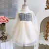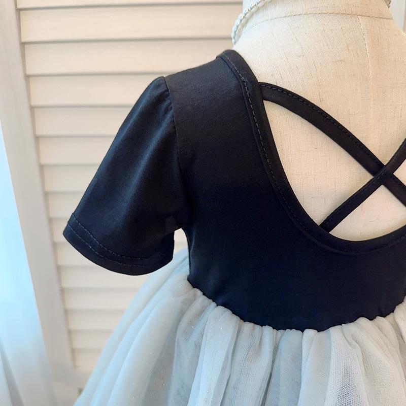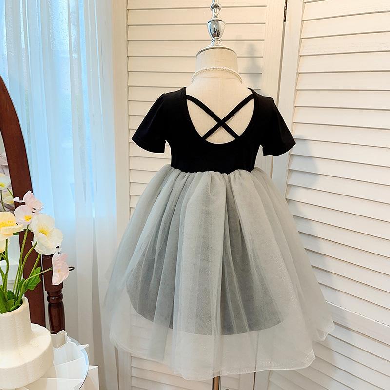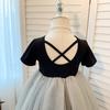 Vestido Infantil 2023 Verano Nuevo Vestido de Princesa de Malla con Manga Corta Abullonada para Niñas Pequeñas y Medianas Cabello Transfronterizo