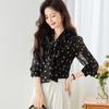 Camisa de gasa para mujer, primavera 2024, nueva, elegante, cuello súper hada, dulce, elegante, cintura ajustada, con cordones, camisa de manga larga