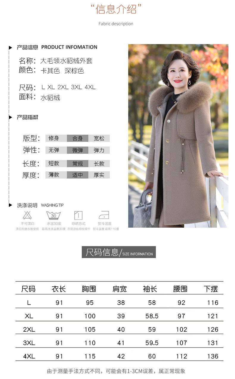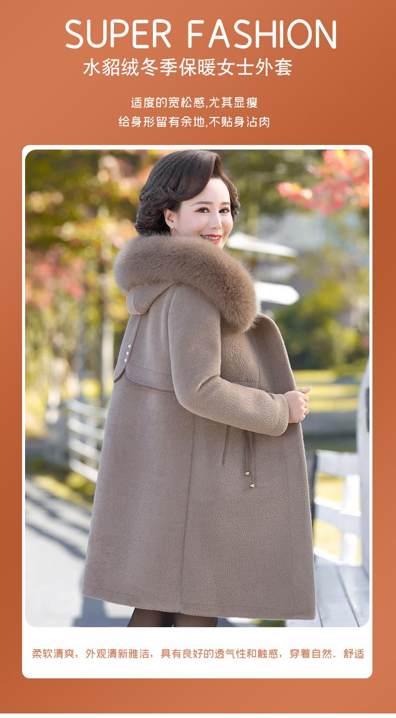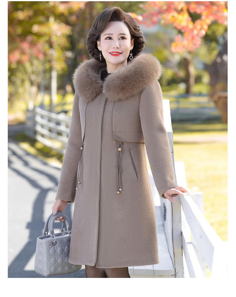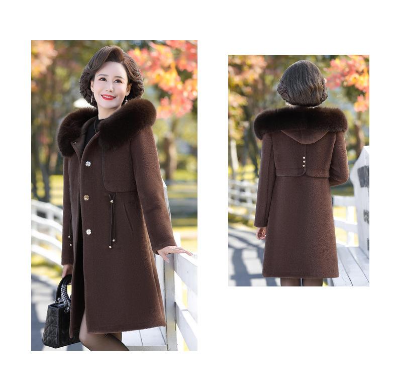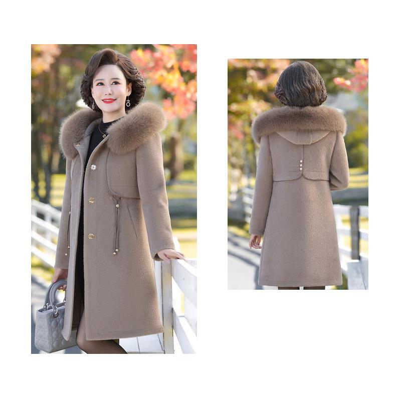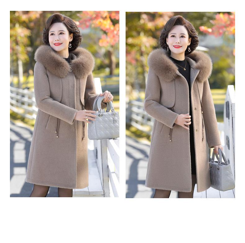Abrigo de cuello de forro polar de visón de otoño e invierno para mamá, largo, para mujeres de 40 años y 50 años, ropa de estilo occidental, abrigo de lana noble